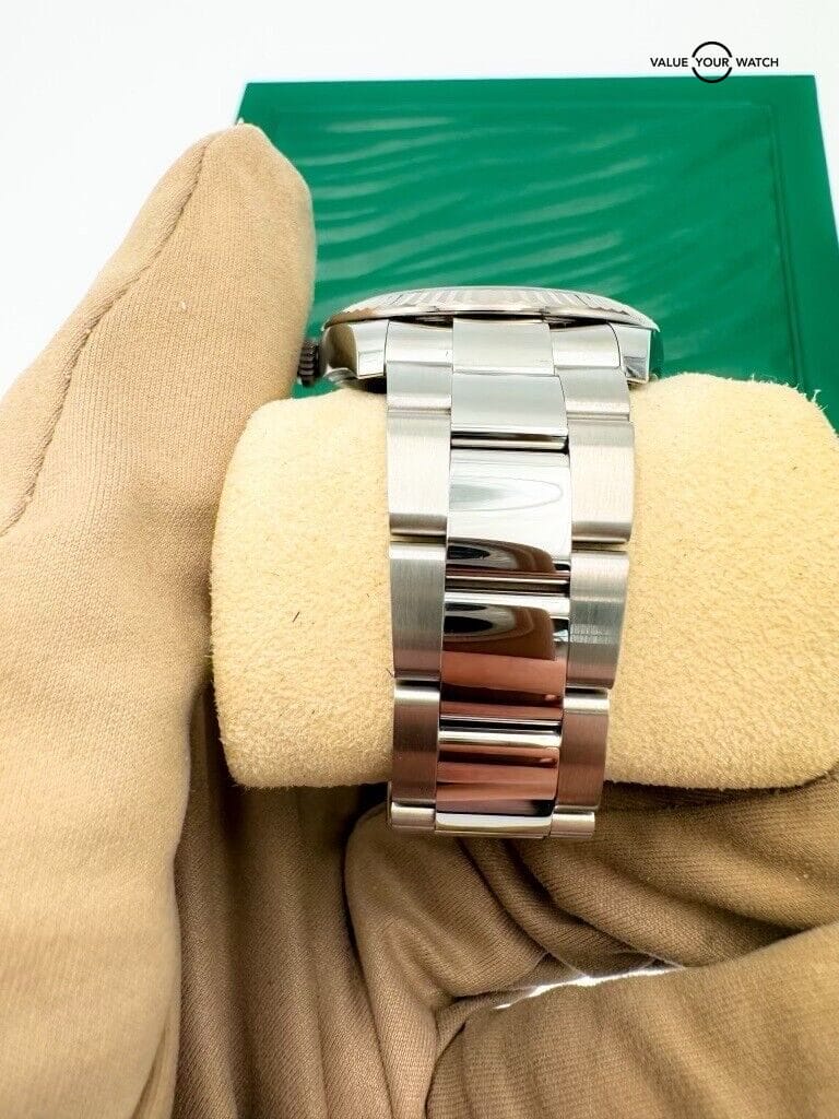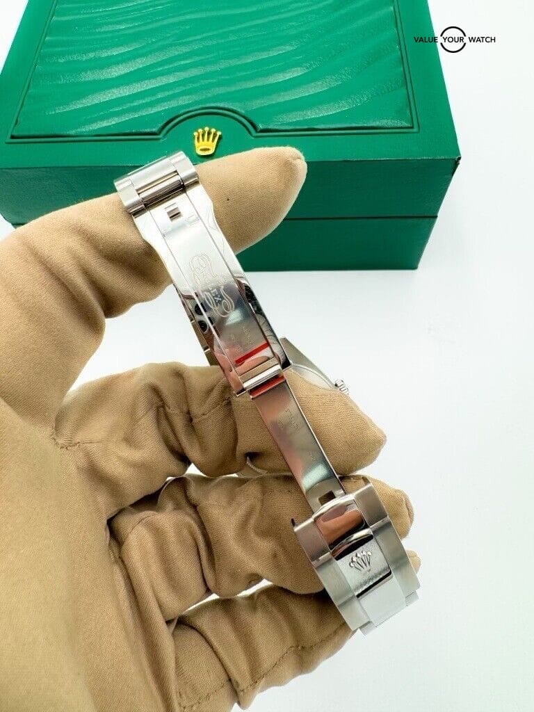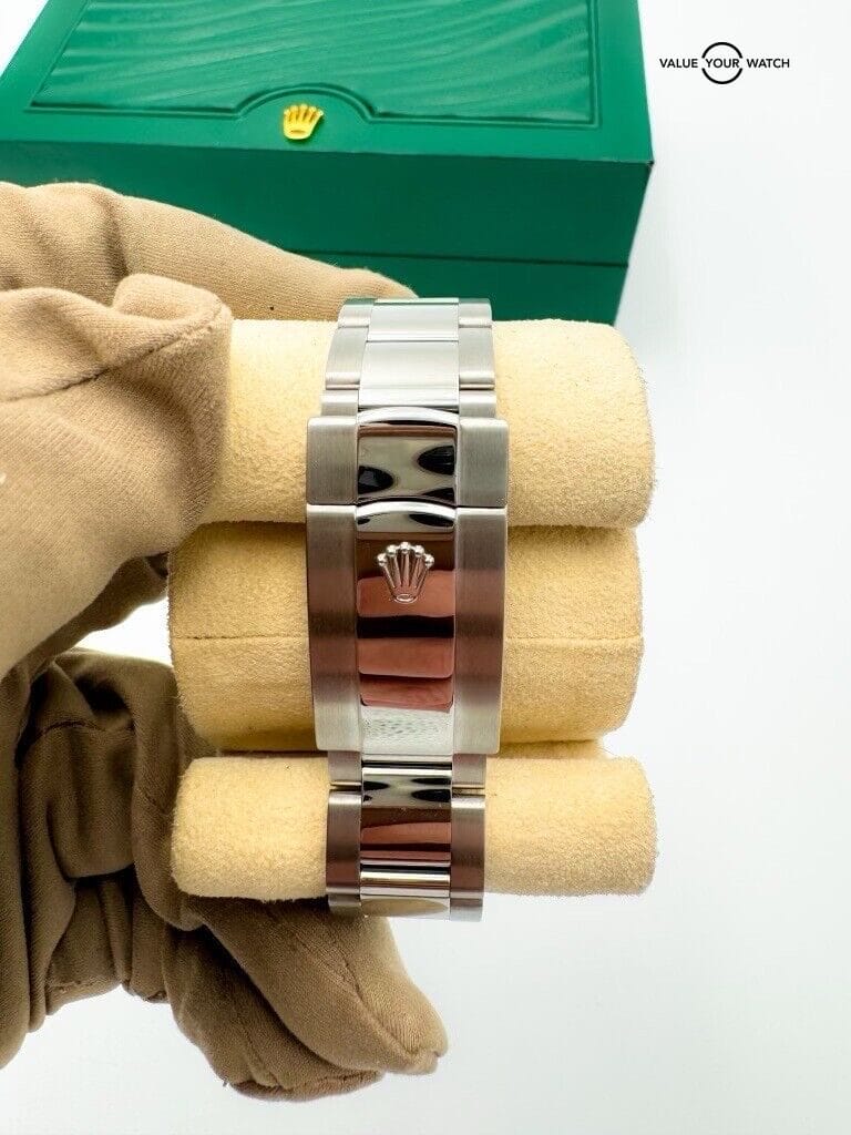 Powered by Rolex’s in-house Calibre 3235, this watch is a paragon of precision and reliability. It features a date window at the 3 o’clock position, magnified by Rolex’s Cyclops lens for easy reading. The watch is also equipped with a scratch-resistant sapphire crystal and is water-resistant, making it suitable for everyday wear.