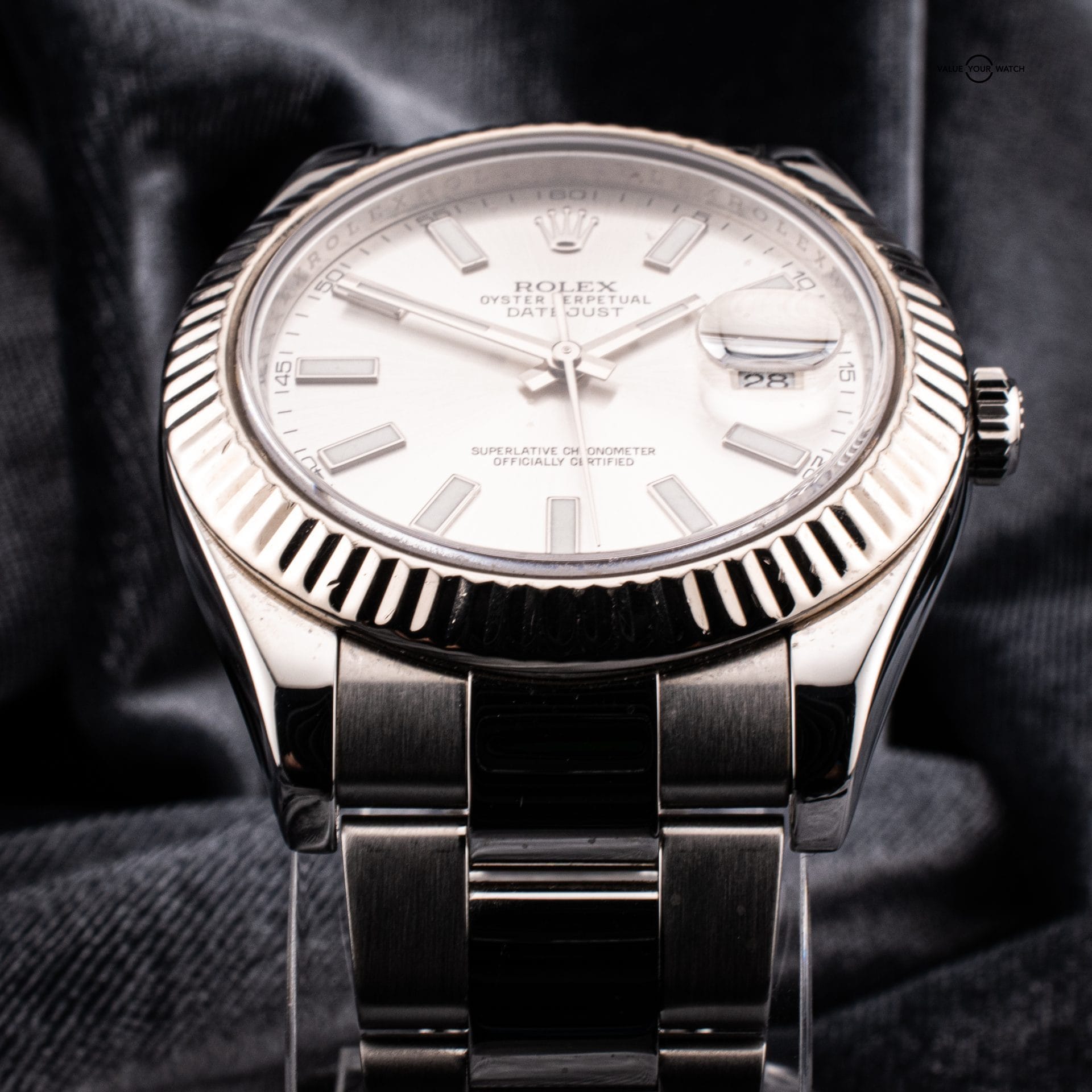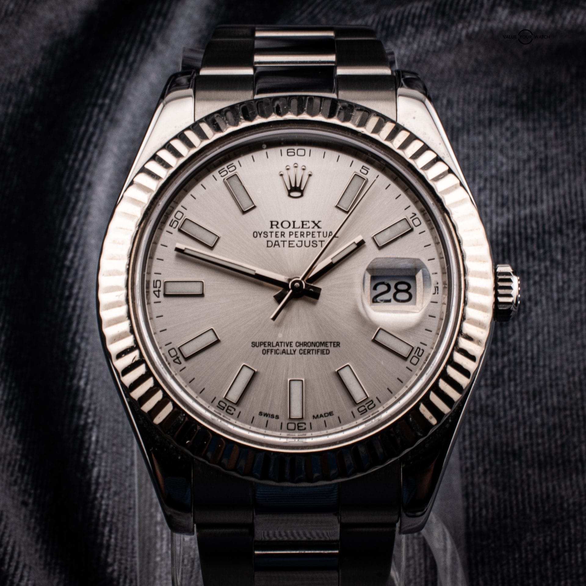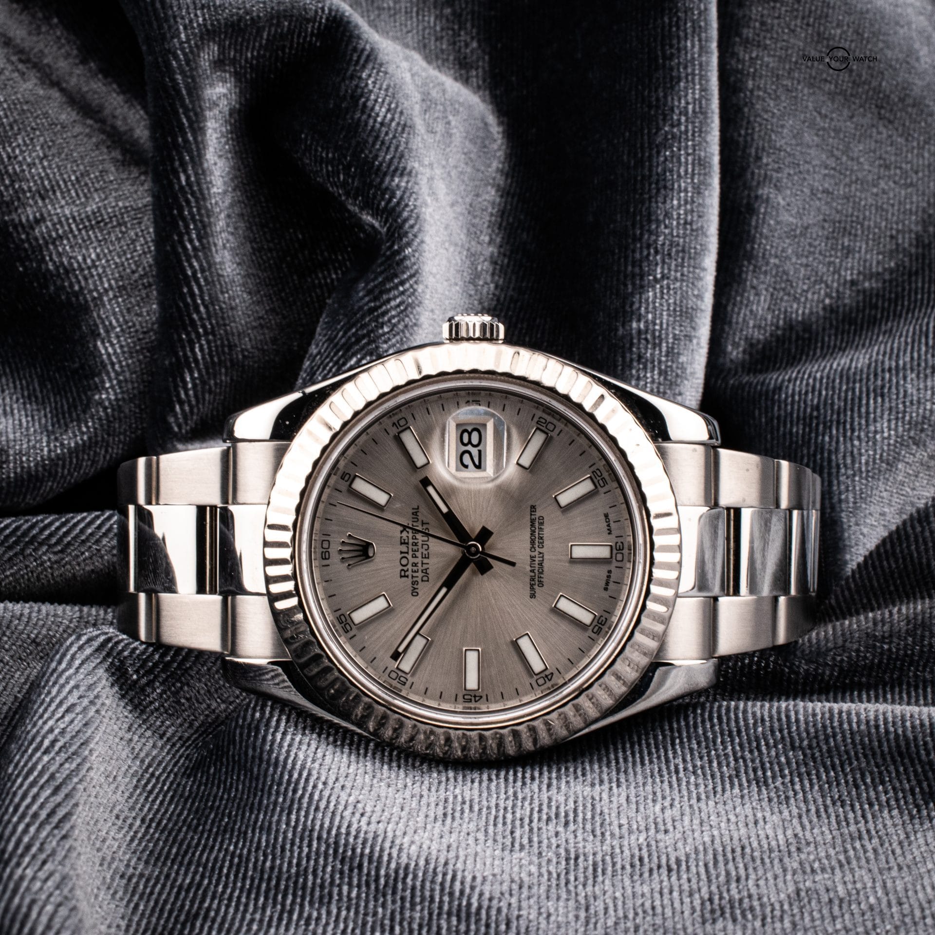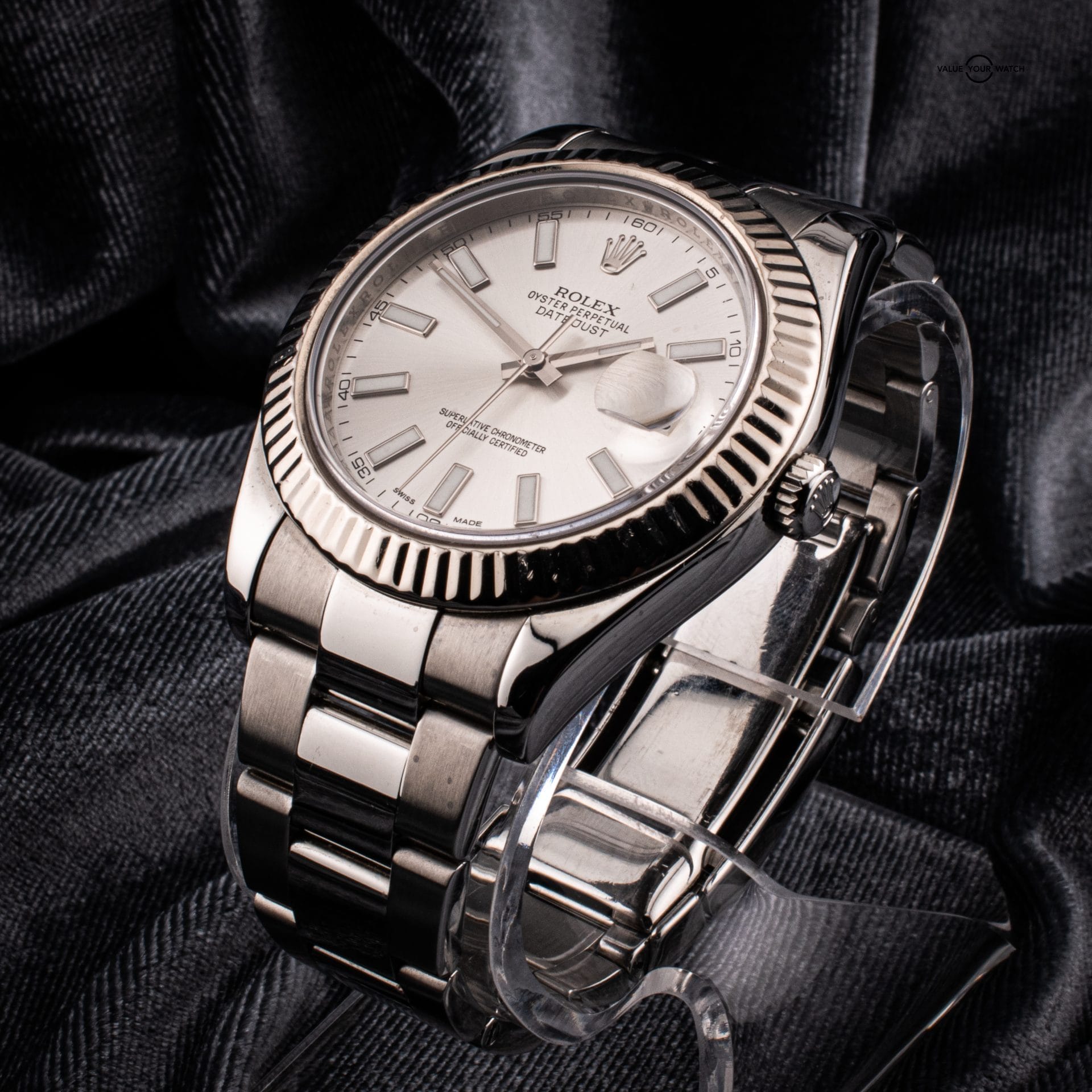The Rolex Datejust II 116334, introduced in 2009, is a distinguished member of the Rolex Datejust family, known for its blend of modern design and classic elegance. Featuring a robust 41mm stainless steel case, a striking fluted bezel crafted from 18k white gold, and a sleek silver dial with luminous hour markers, this timepiece embodies sophistication and style.