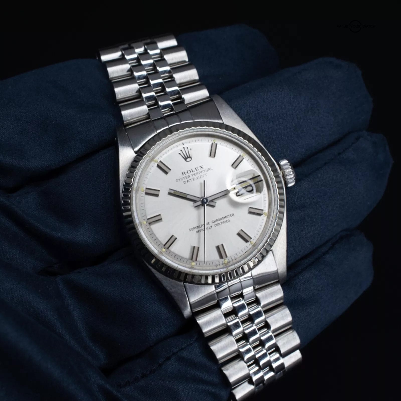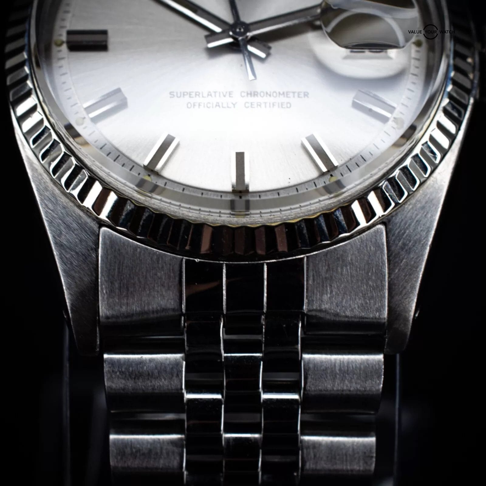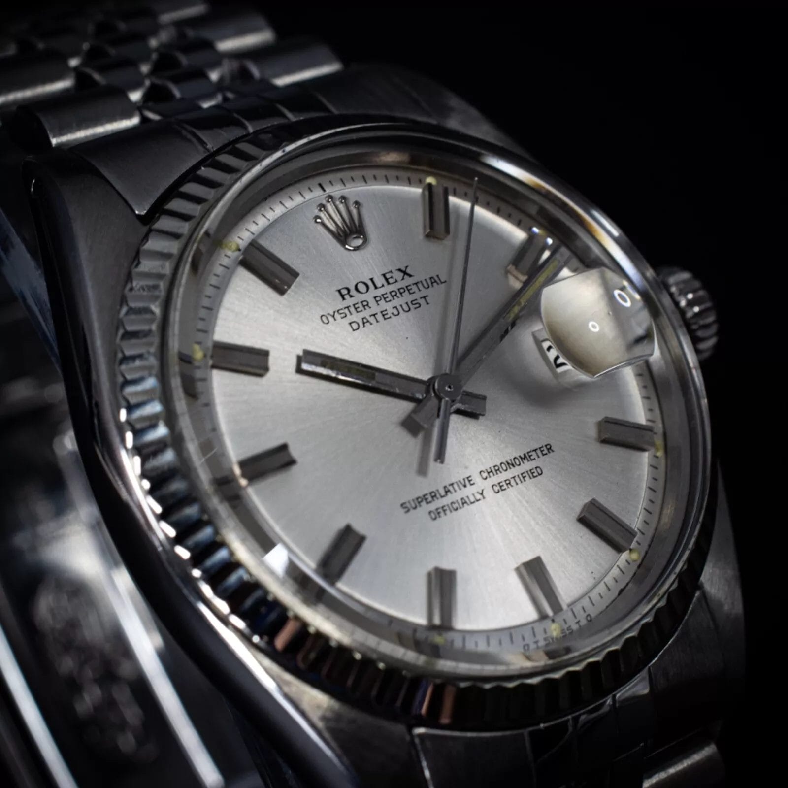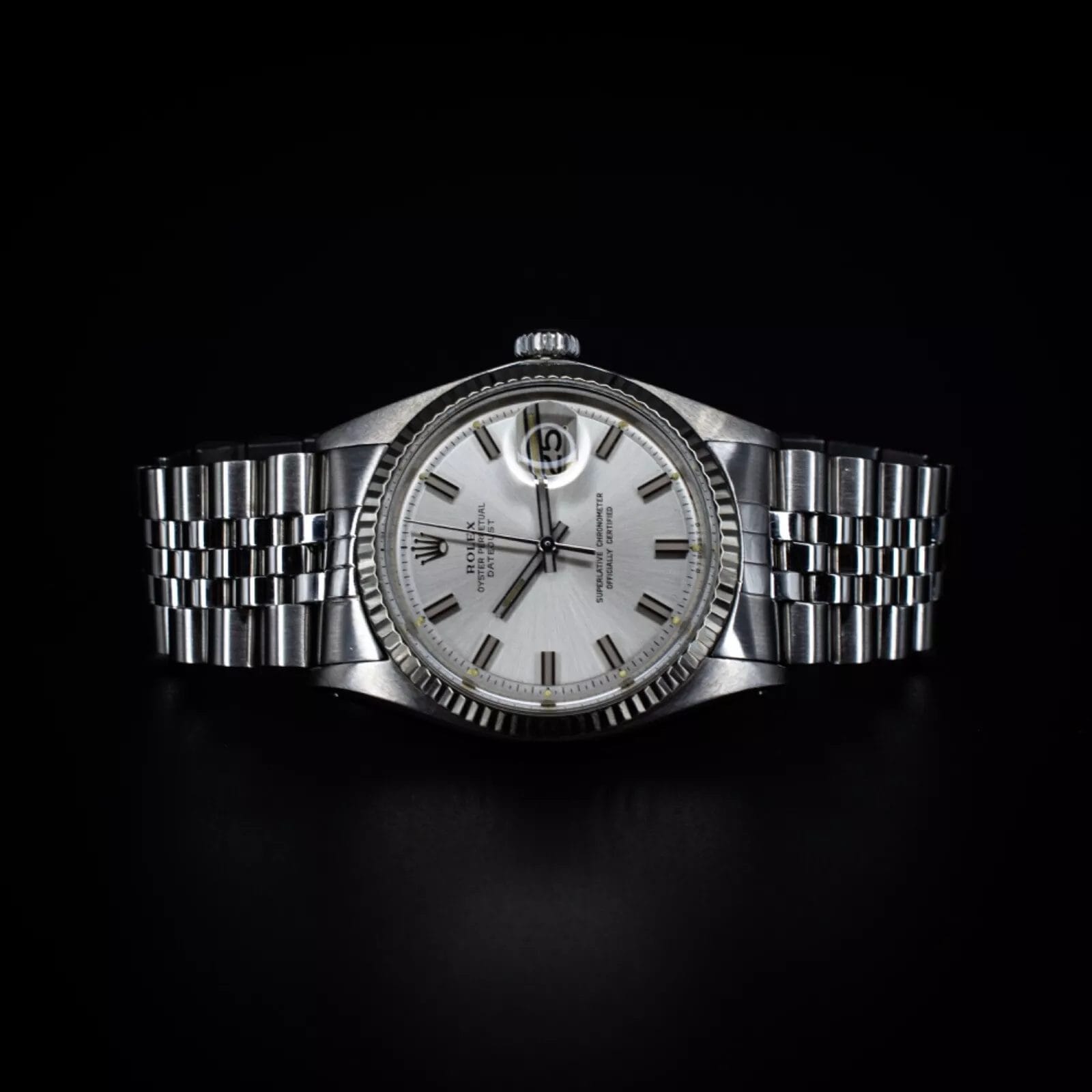 Specification: 1973 Rolex Datejust 36mm Silver Sigma Dial on Jubilee Bracelet, Ref. 1601 w/ Box