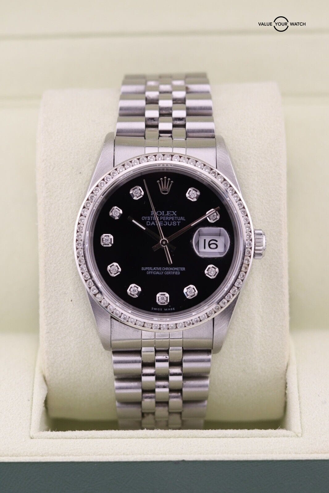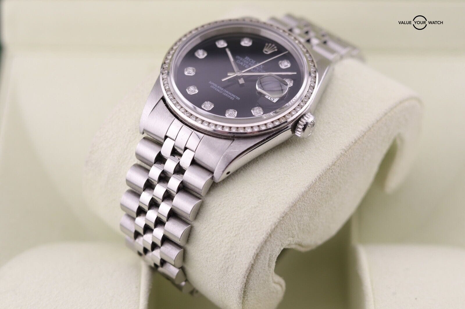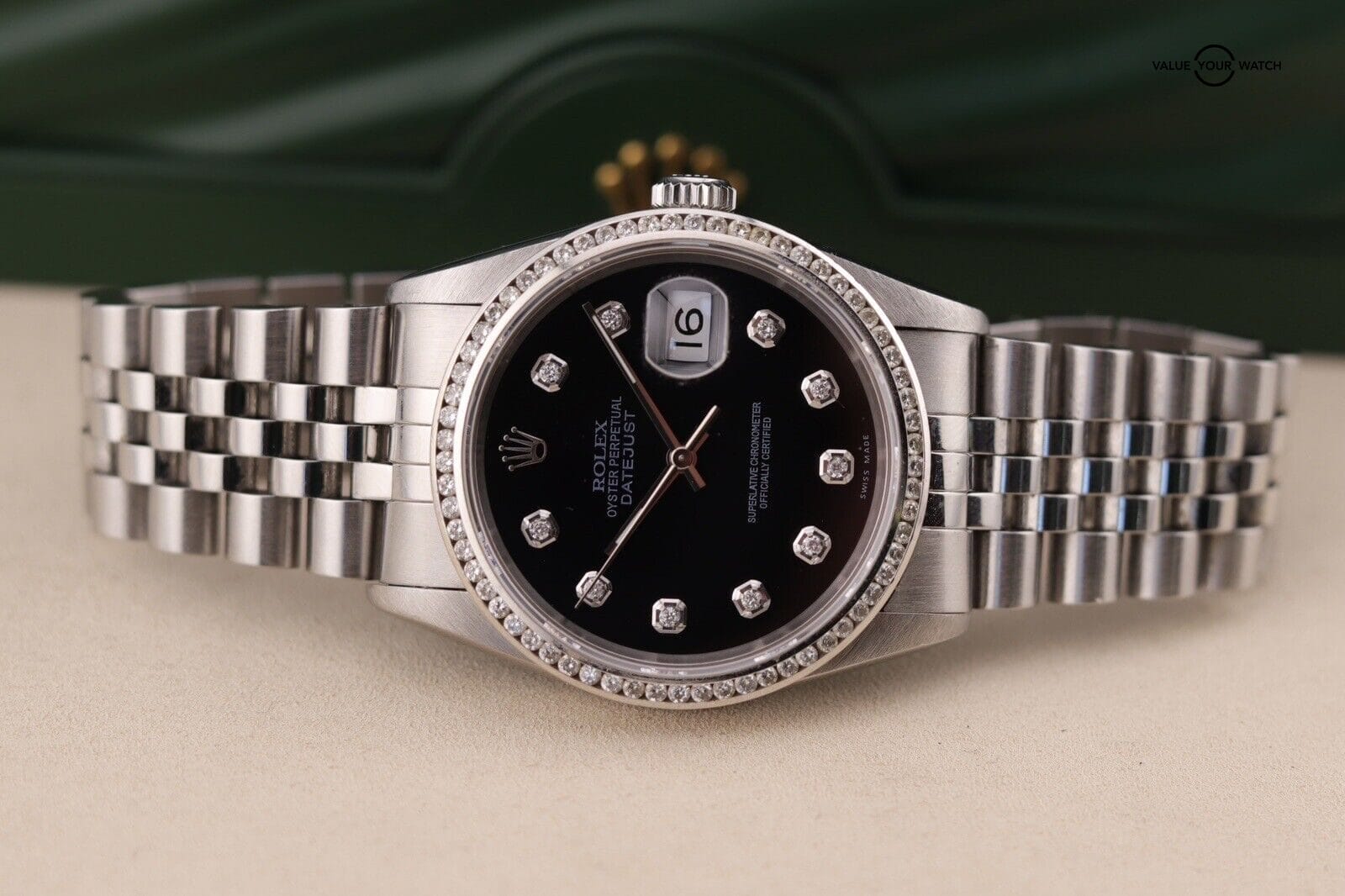 Guide to Buying and Selling 1991 Rolex Datejust 36 16234 AM Diamond Dial x Bezel on Jubilee Bracelet Online