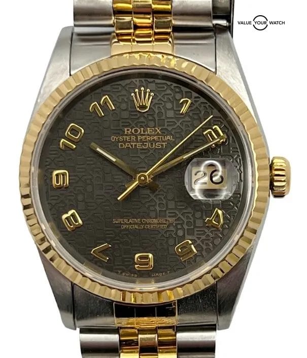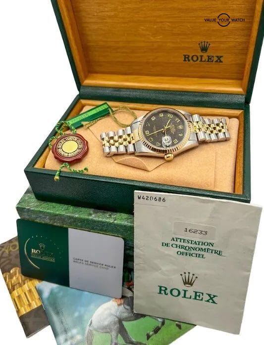 1995 Rolex Datejust 16233 50th Anniv Jubilee dial watch. Collector’s set!