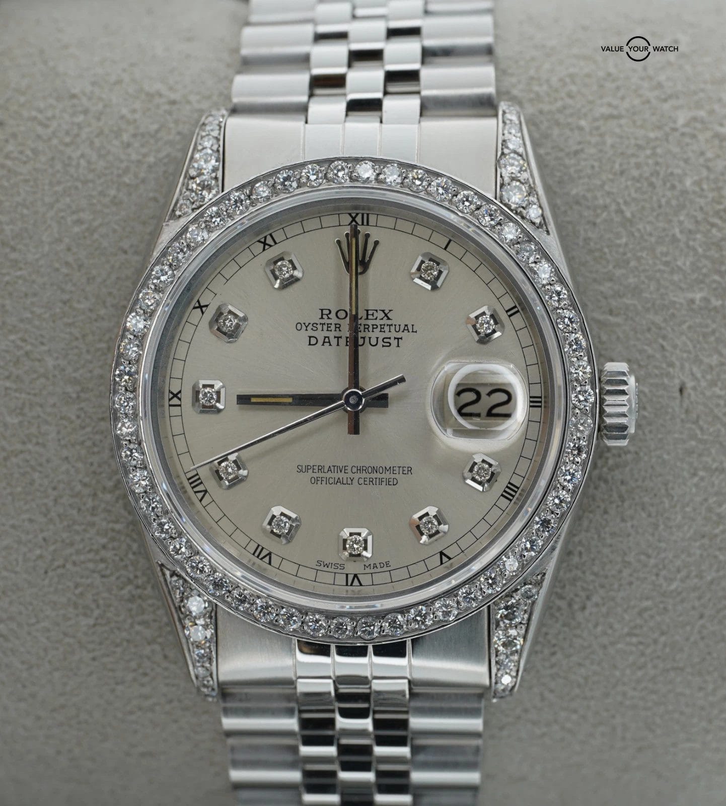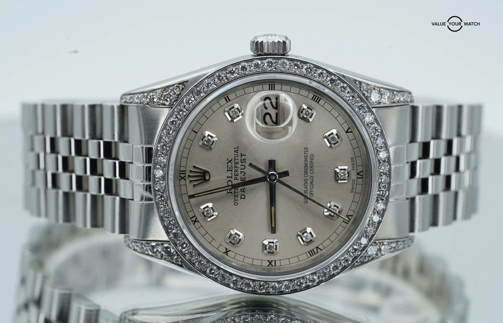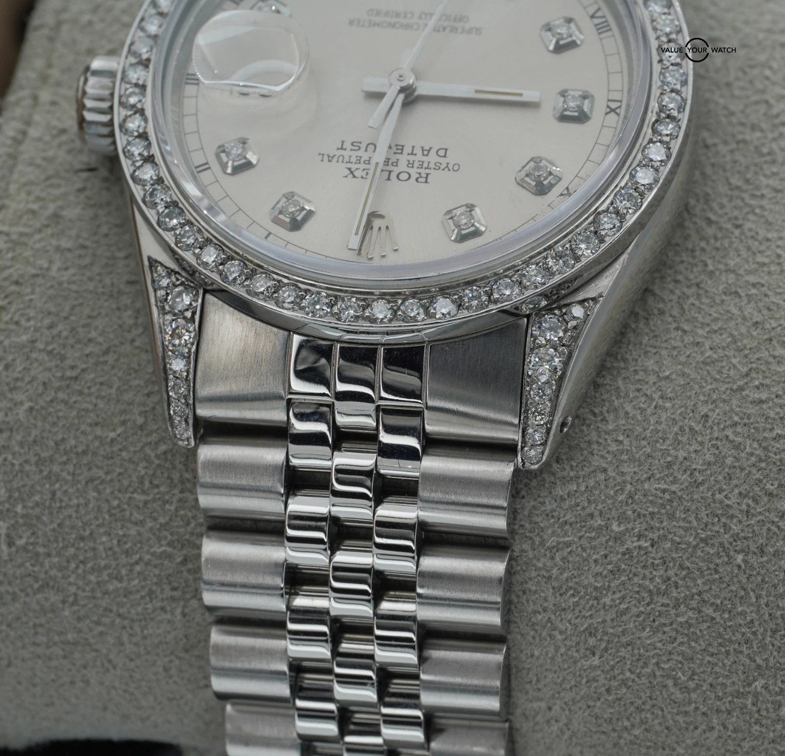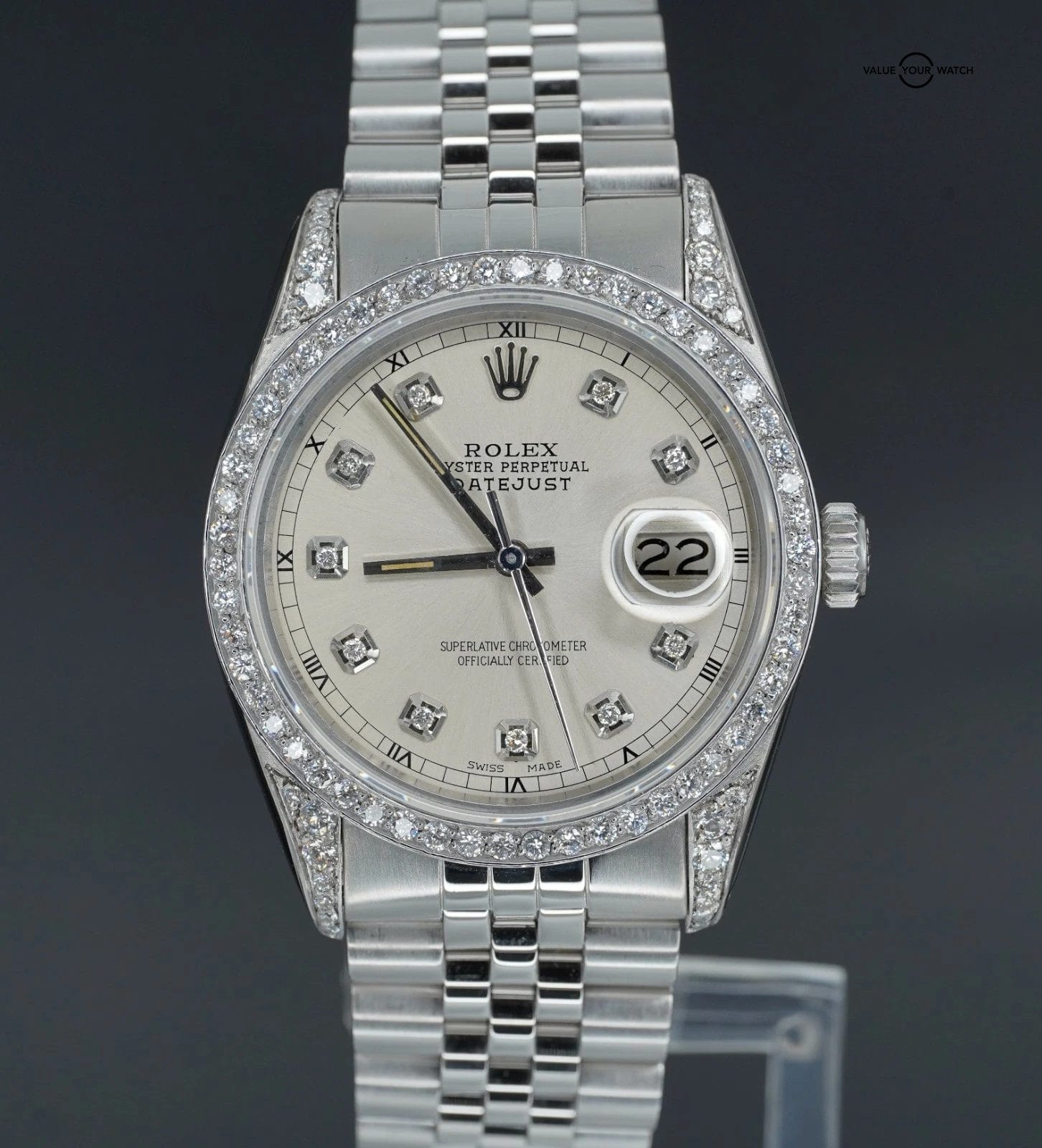 Specification: Rolex Datejust 16030 36mm Stainless Steel Jubilee with DIAMONDS!