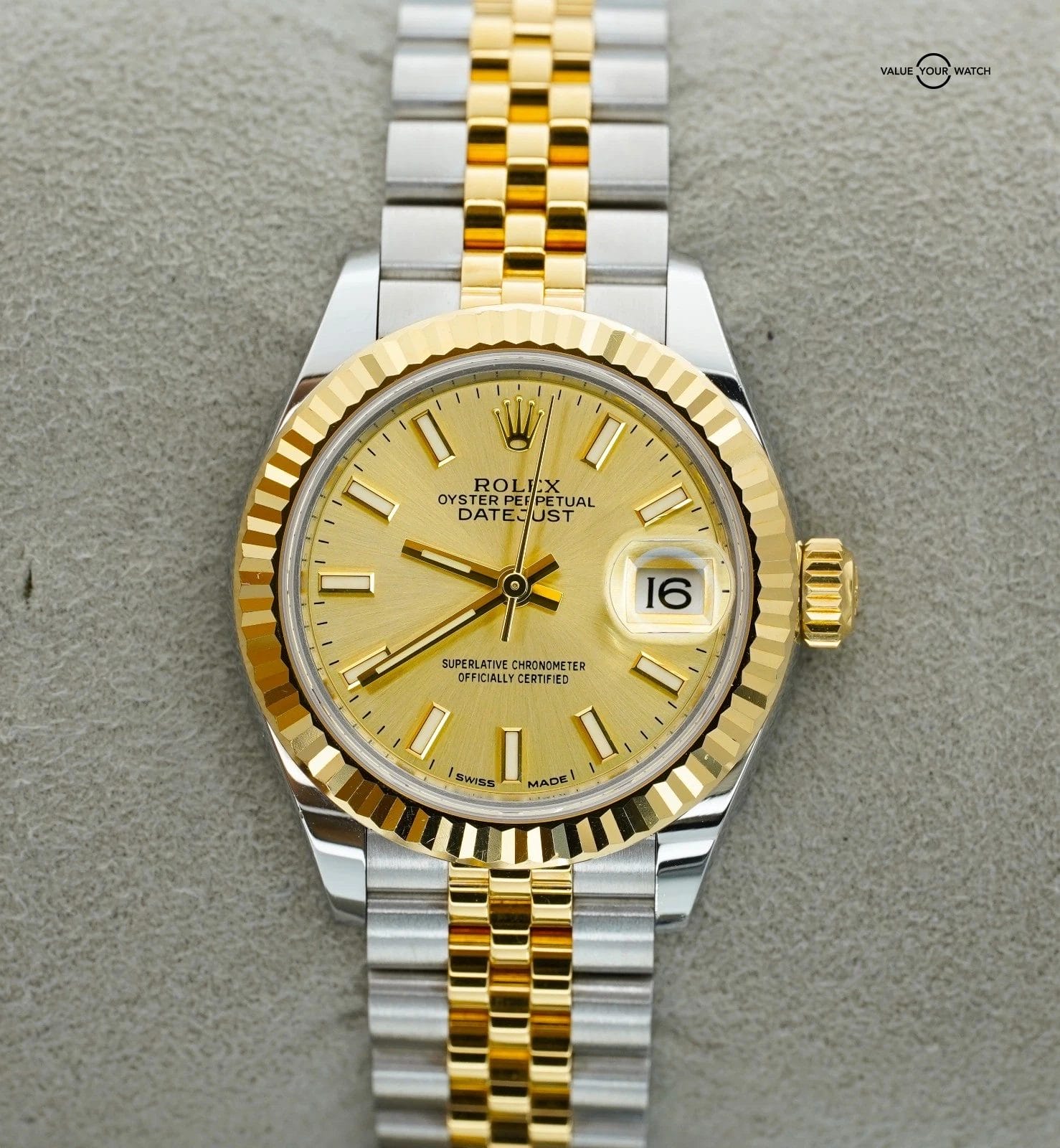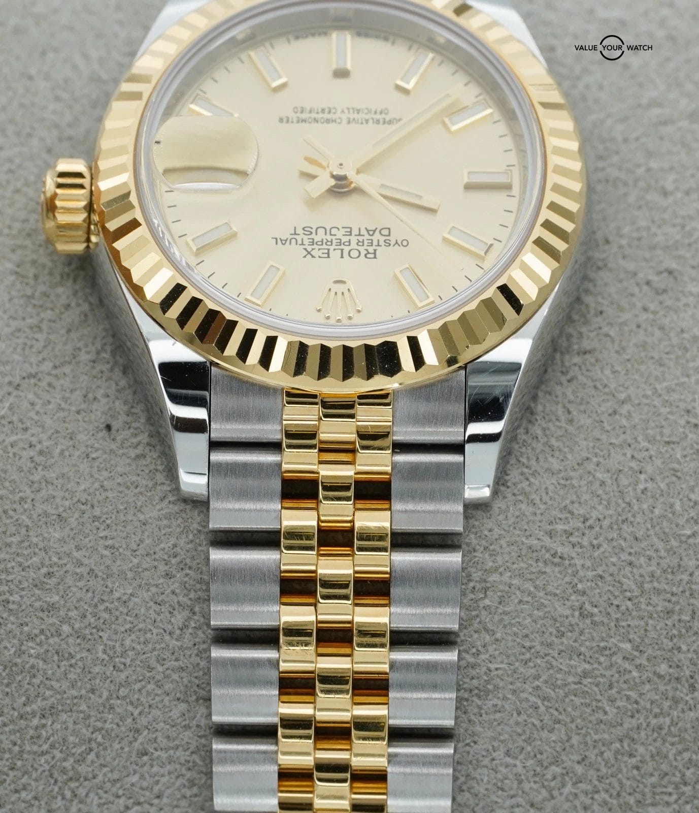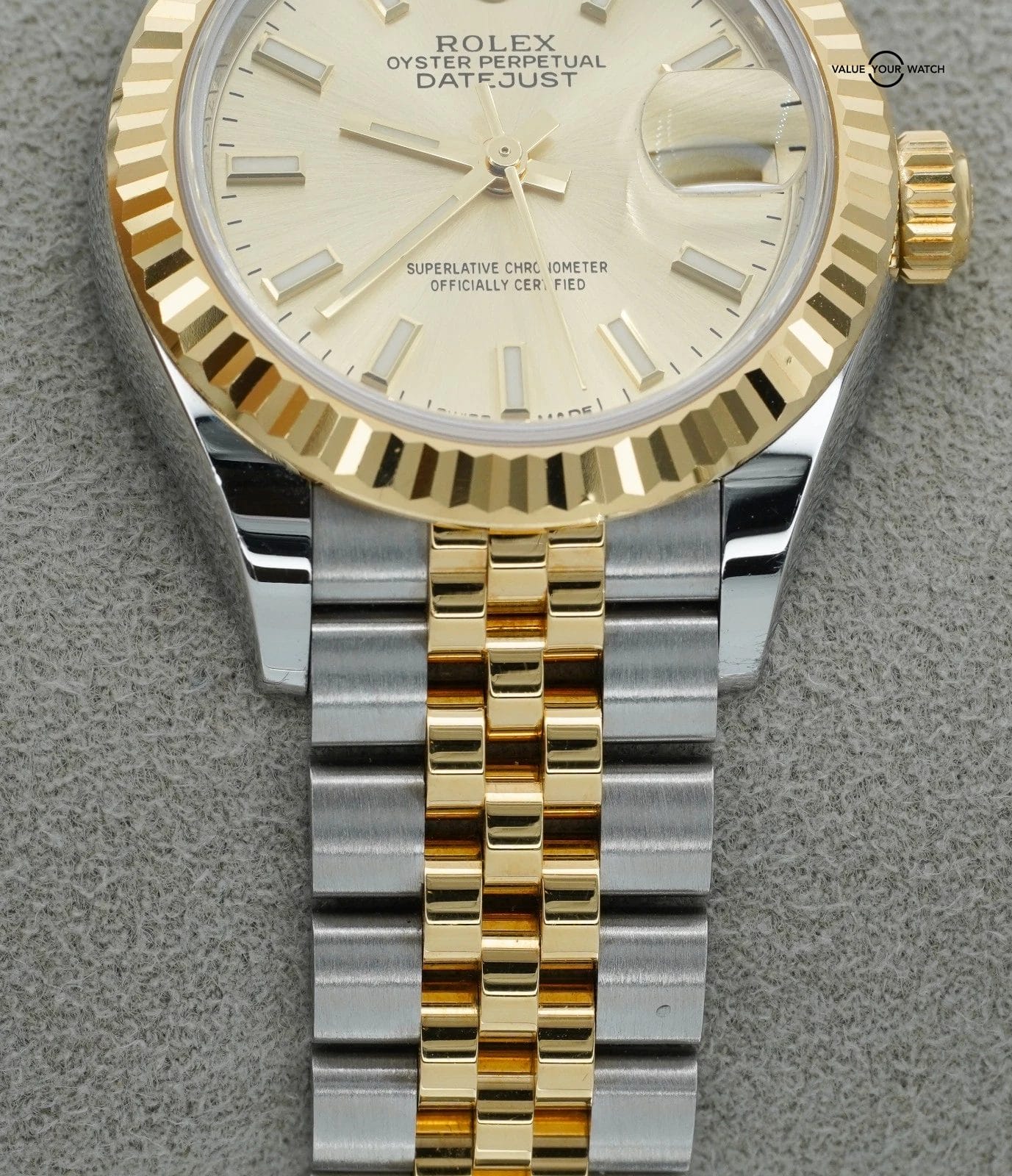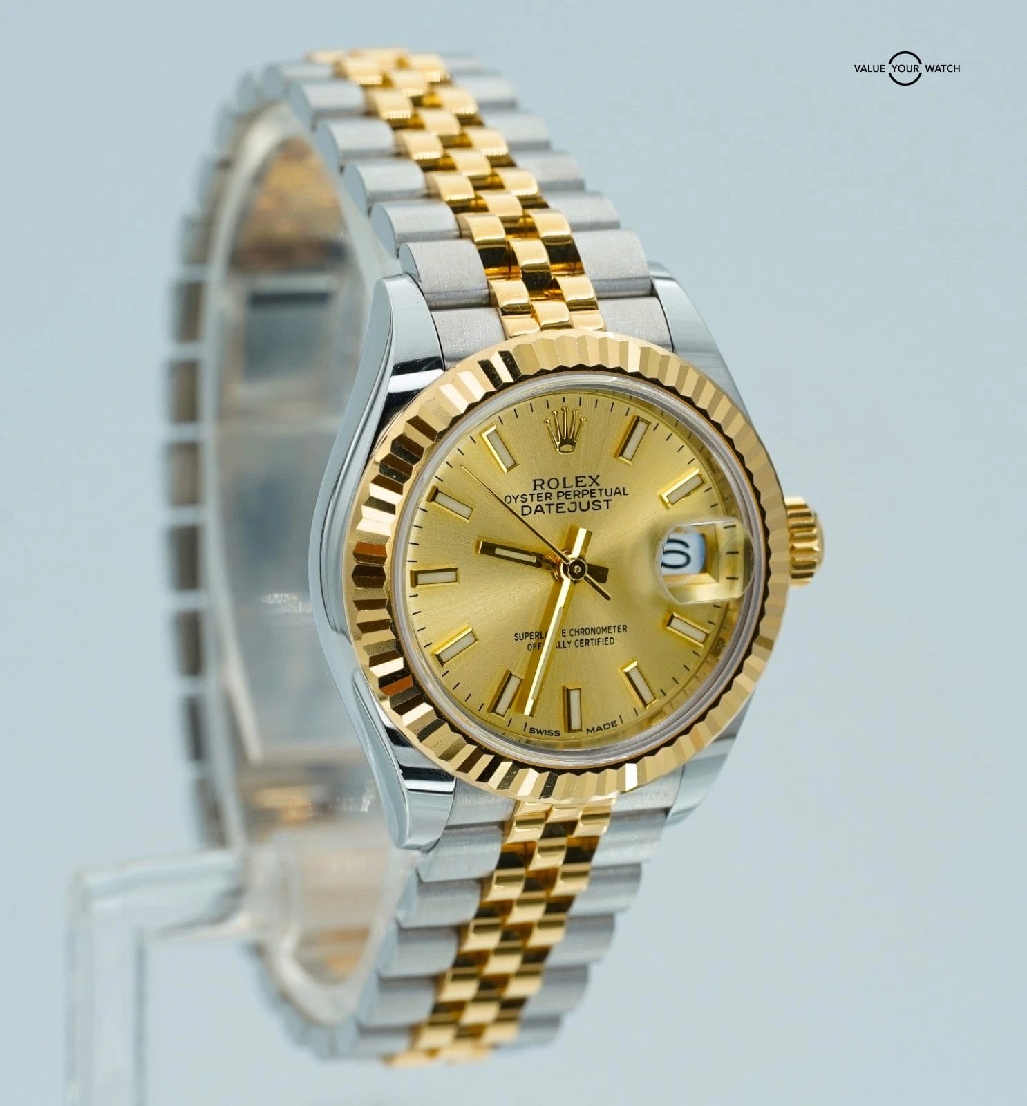 Specification: Rolex Datejust 28mm Champagne 279173 Yellow Gold and Stainless Steel BOXES/PAPER