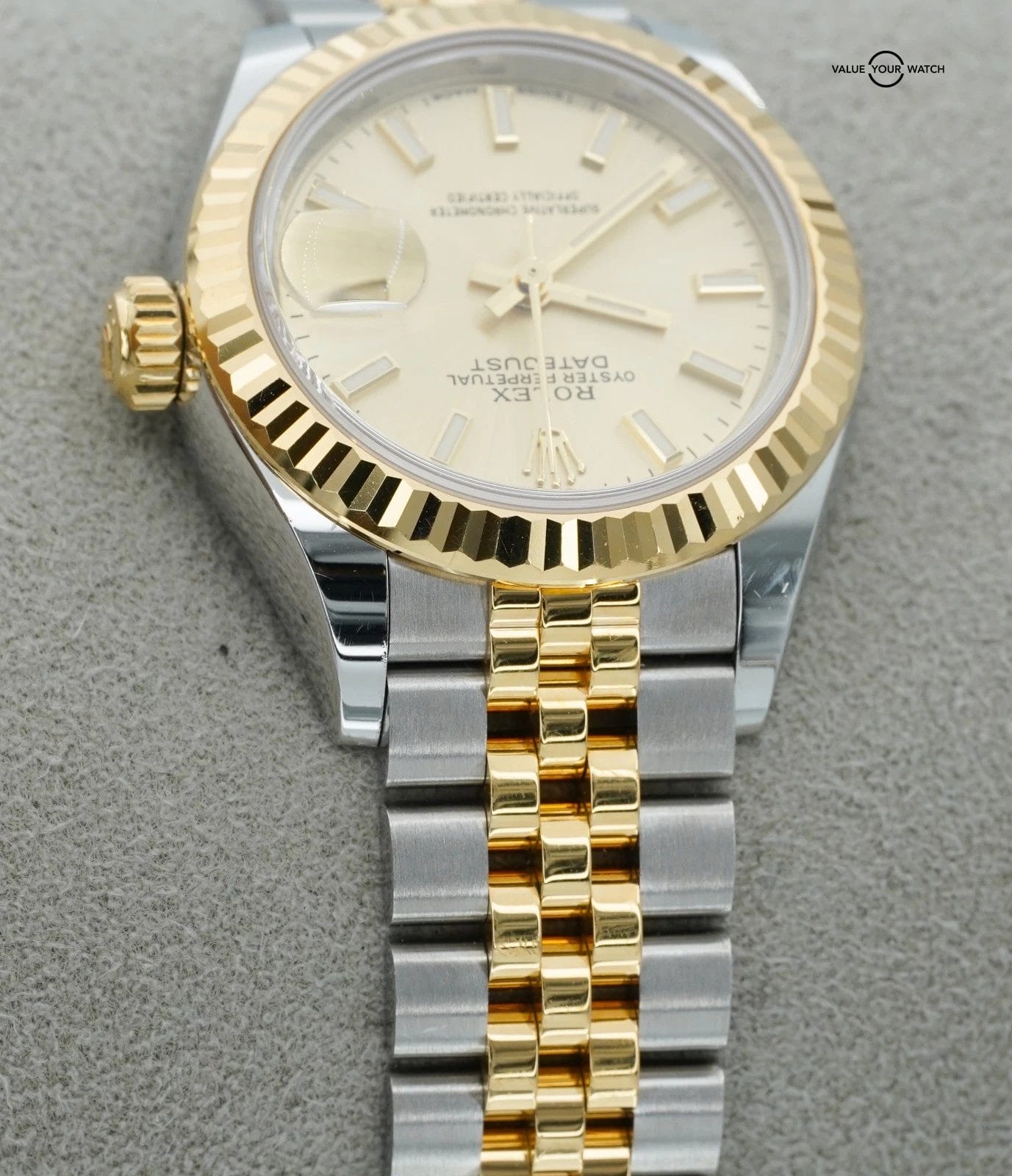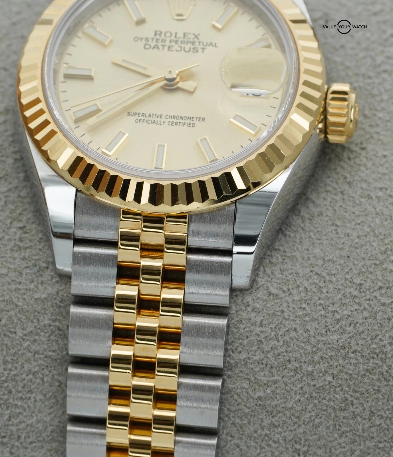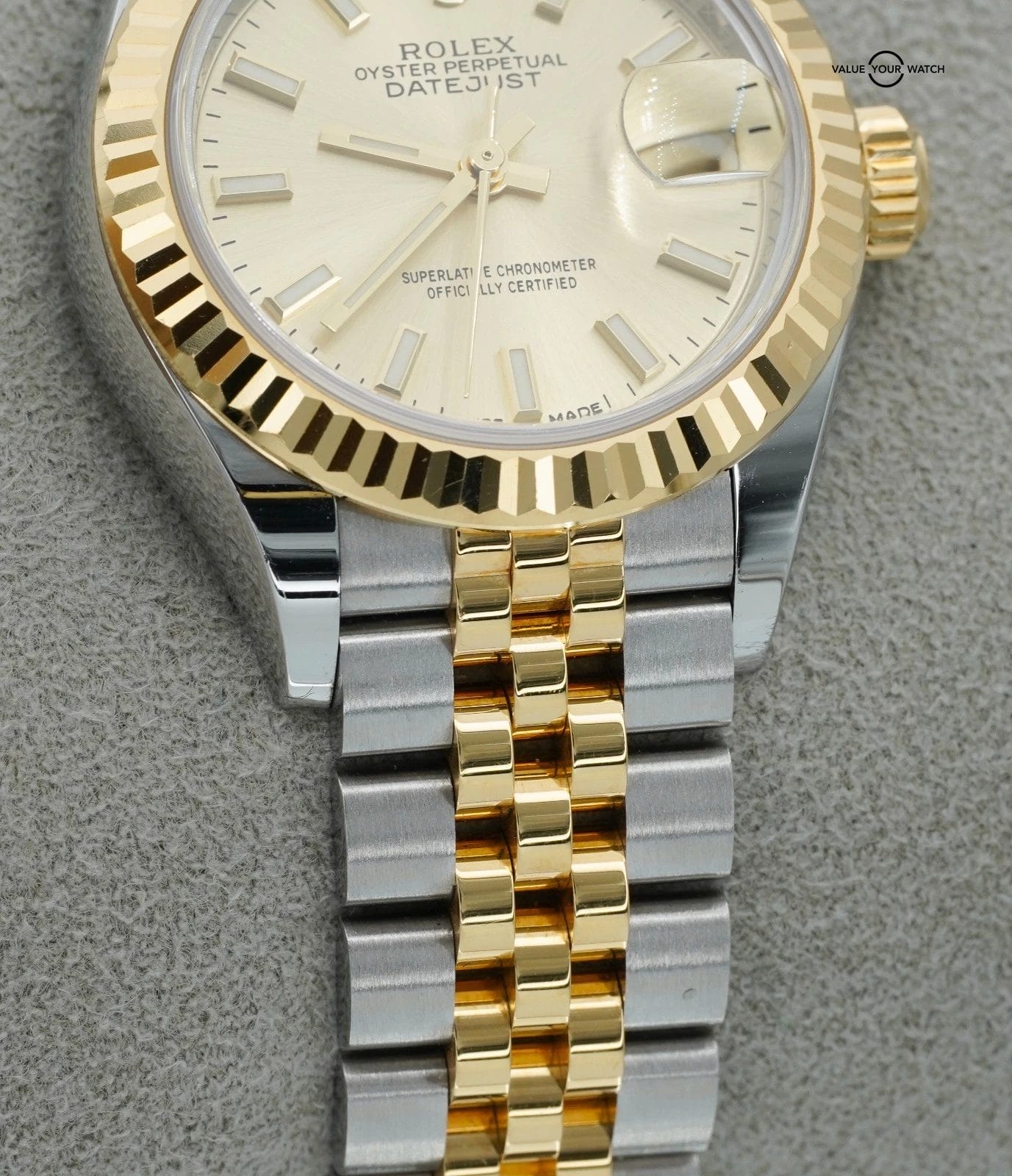 Specification: Rolex Datejust 28mm Champagne 279173 Yellow Gold and Stainless Steel BOXES/PAPER