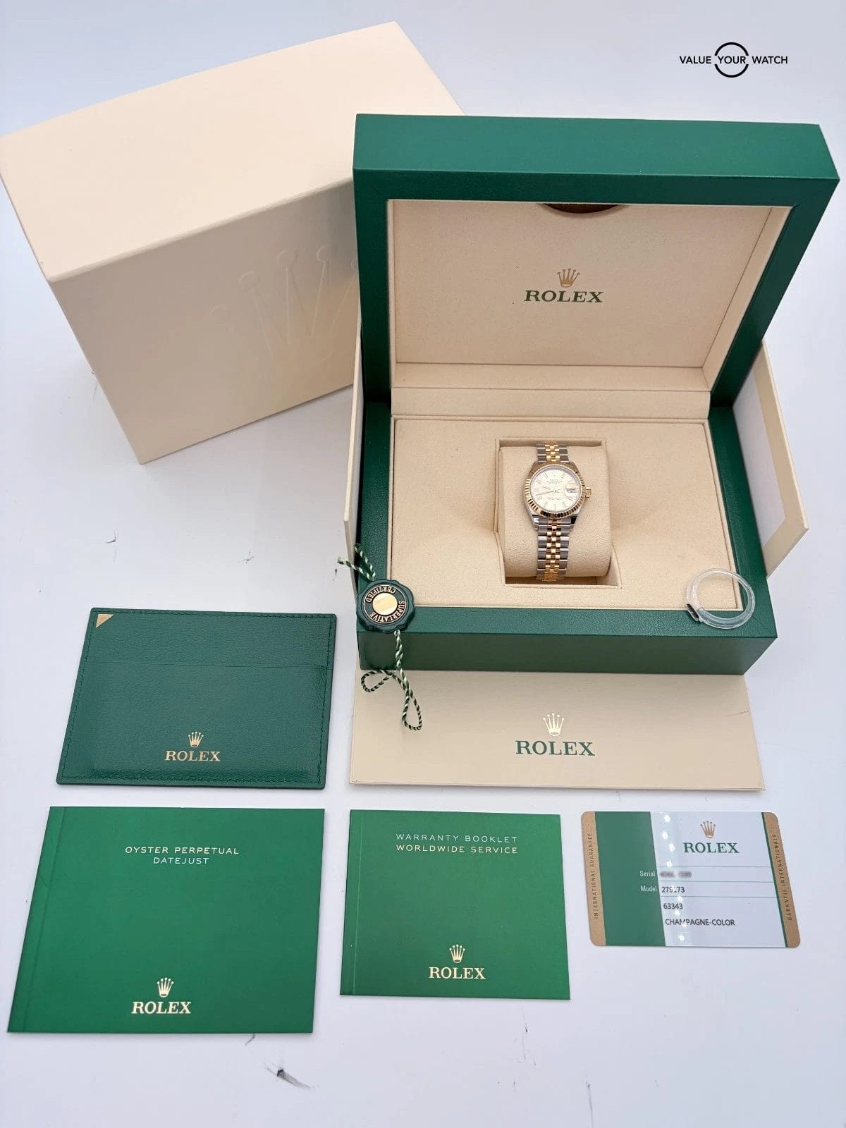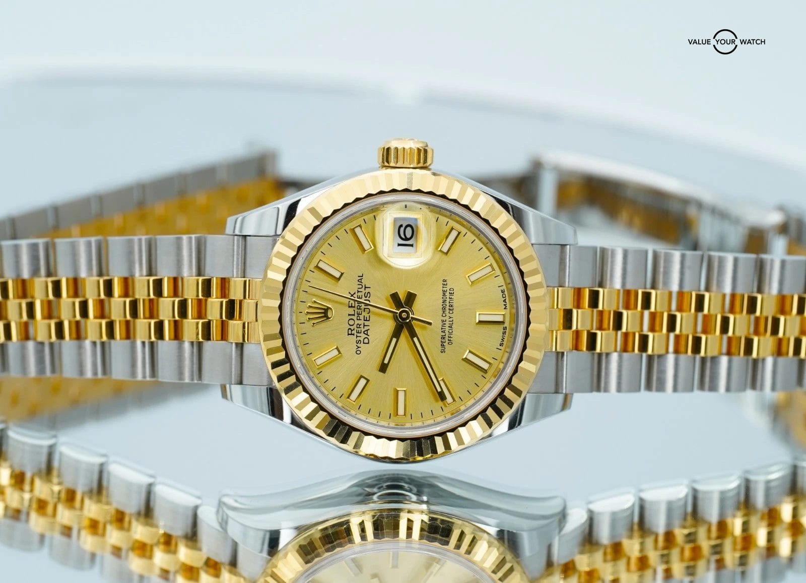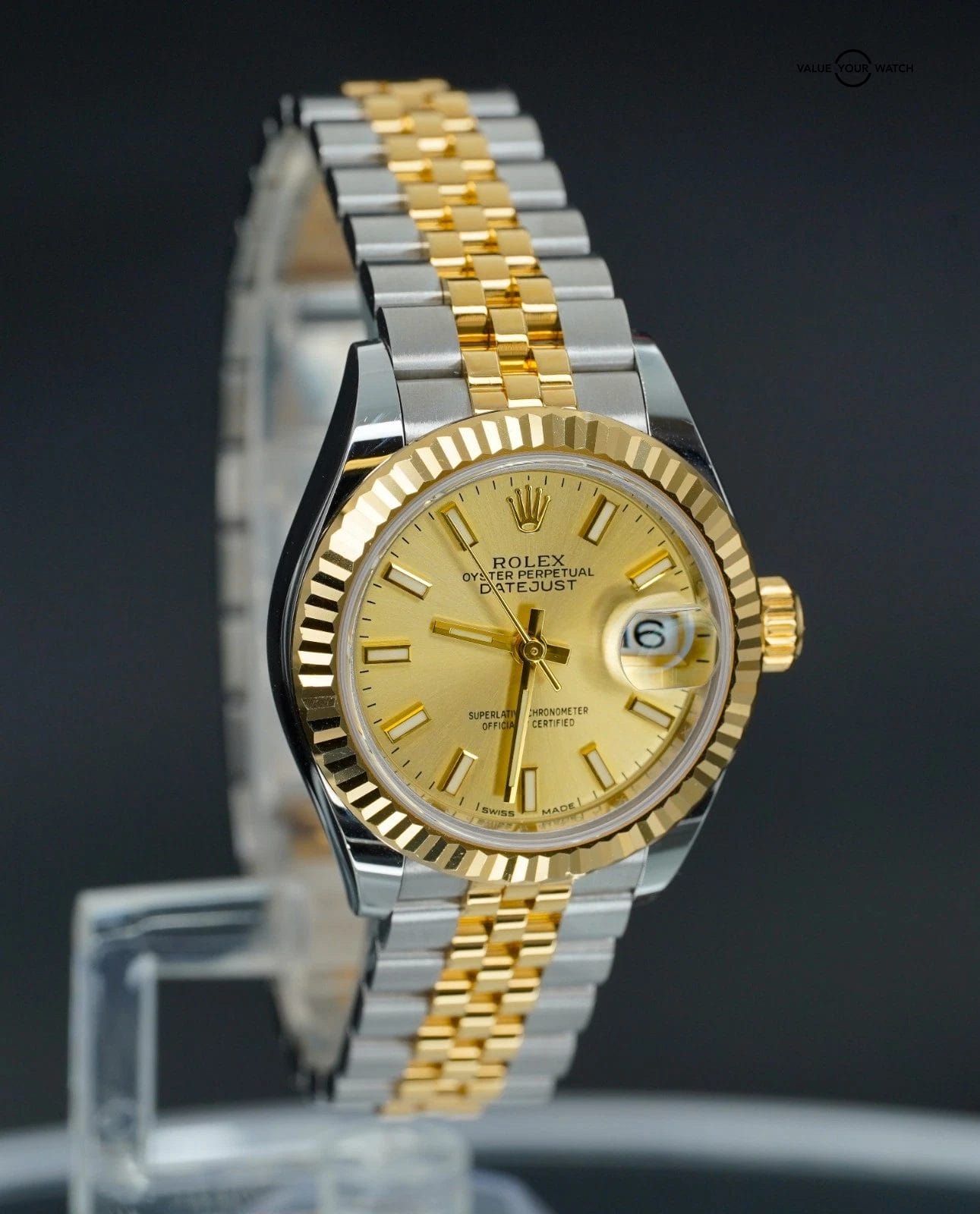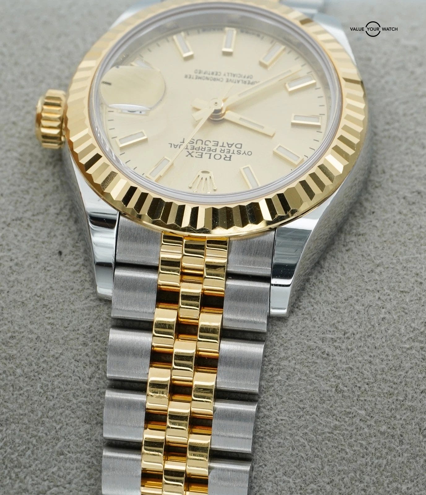 Specification: Rolex Datejust 28mm Champagne 279173 Yellow Gold and Stainless Steel BOXES/PAPER