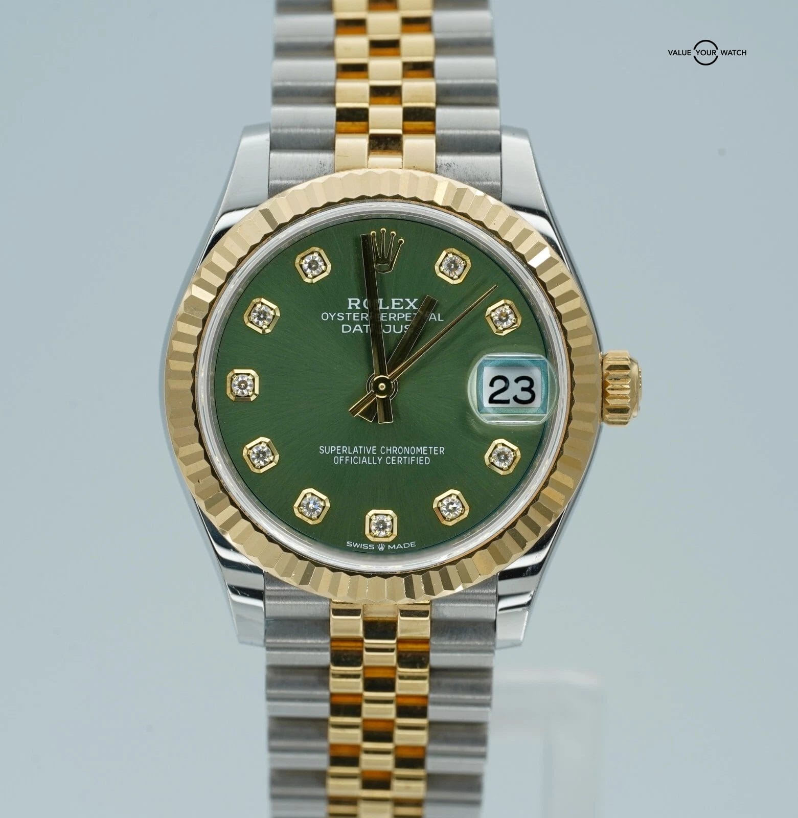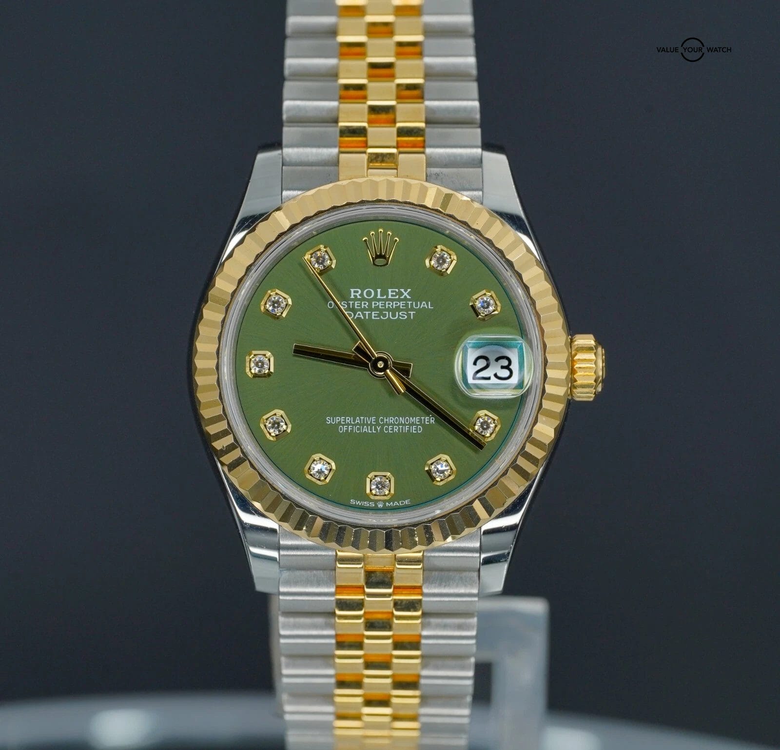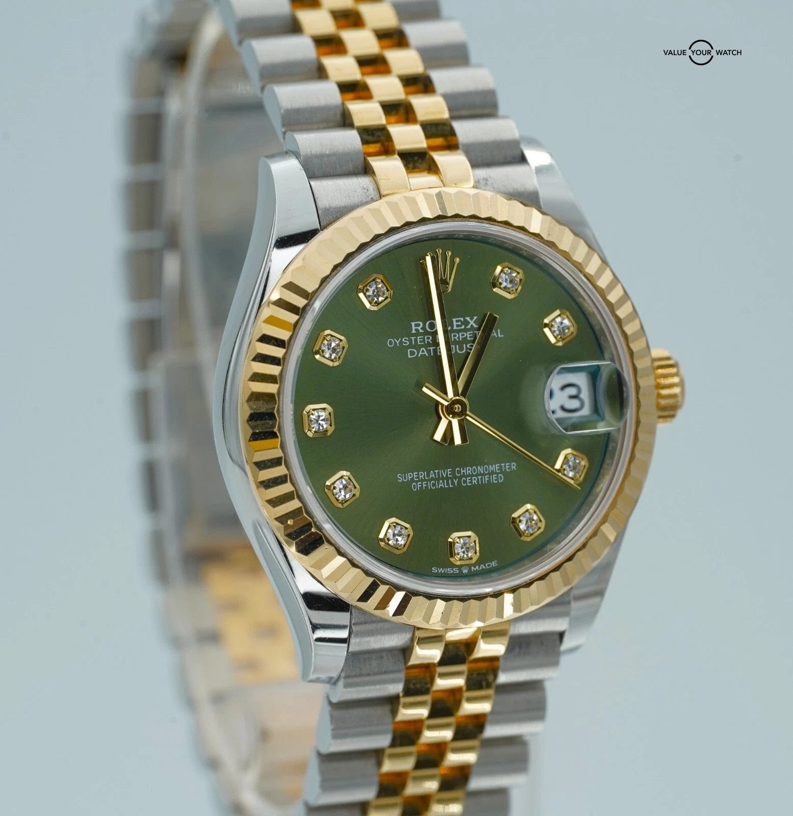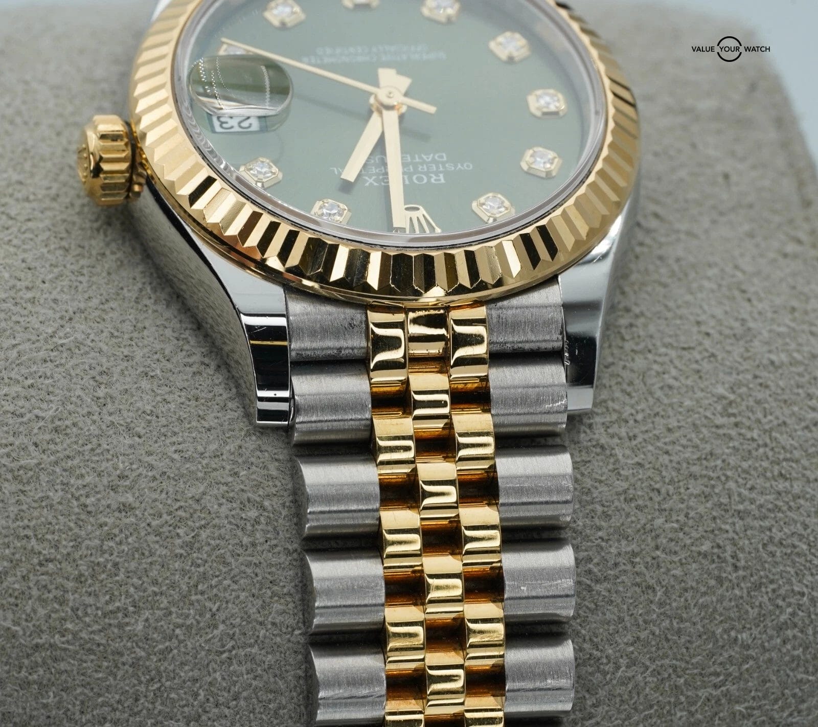 Rolex Datejust 31 278273 Olive Green Diamond Dial BOXES!