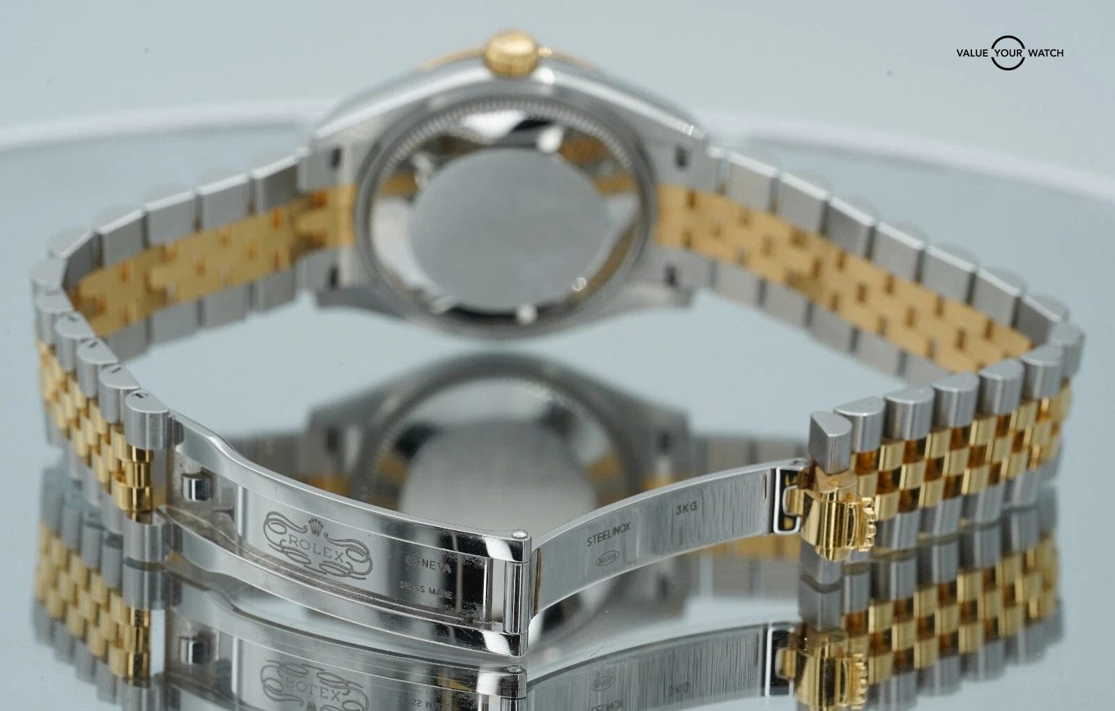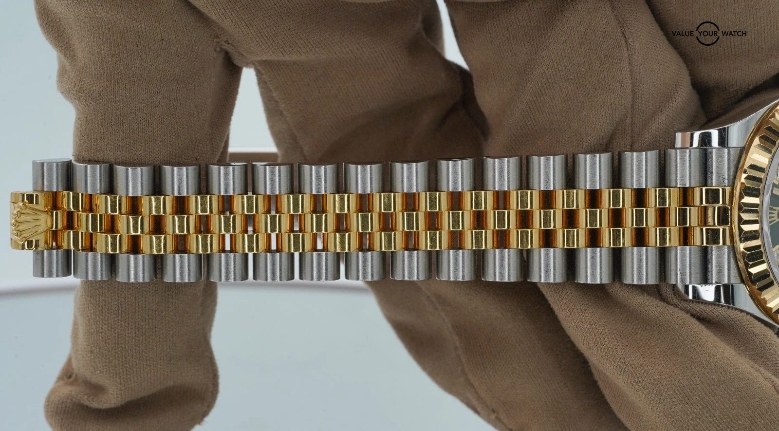 This beautiful timepiece comes with the inner green box, instruction manuals, and green hangtag. The watch is in nice pre-owned condition with typical cosmetic throughout the case and bracelet. Pay close attention to the pictures as they accurately describe the condition. Mechanically the watch is functioning as it should. Serial numbers and names are blurred in photos only for privacy reasons.