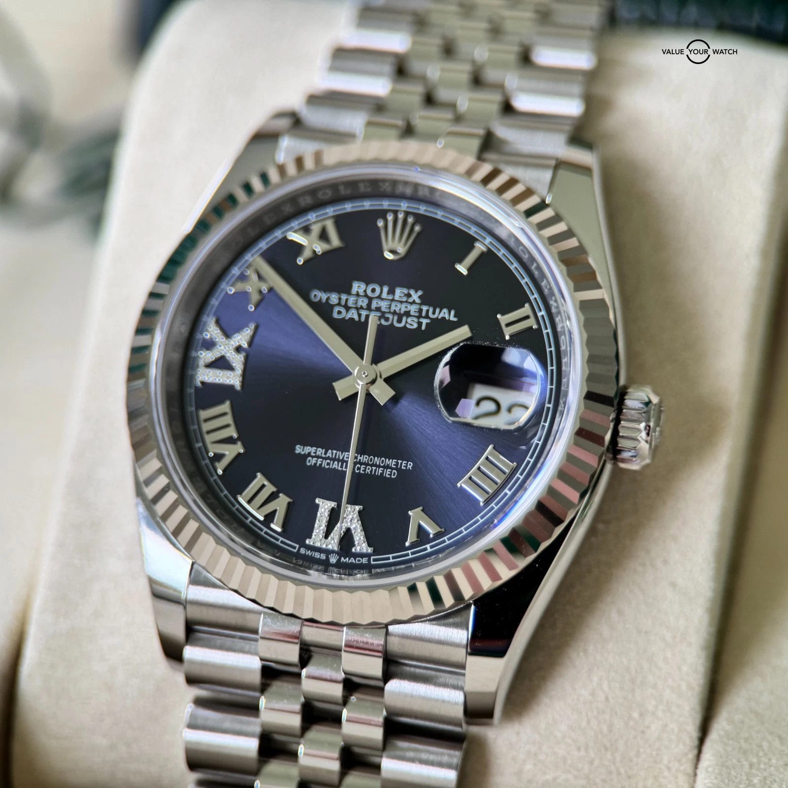 Specification: Rolex Datejust 36 with Aubergine & Diamonds Dial – Full Collector’s Set