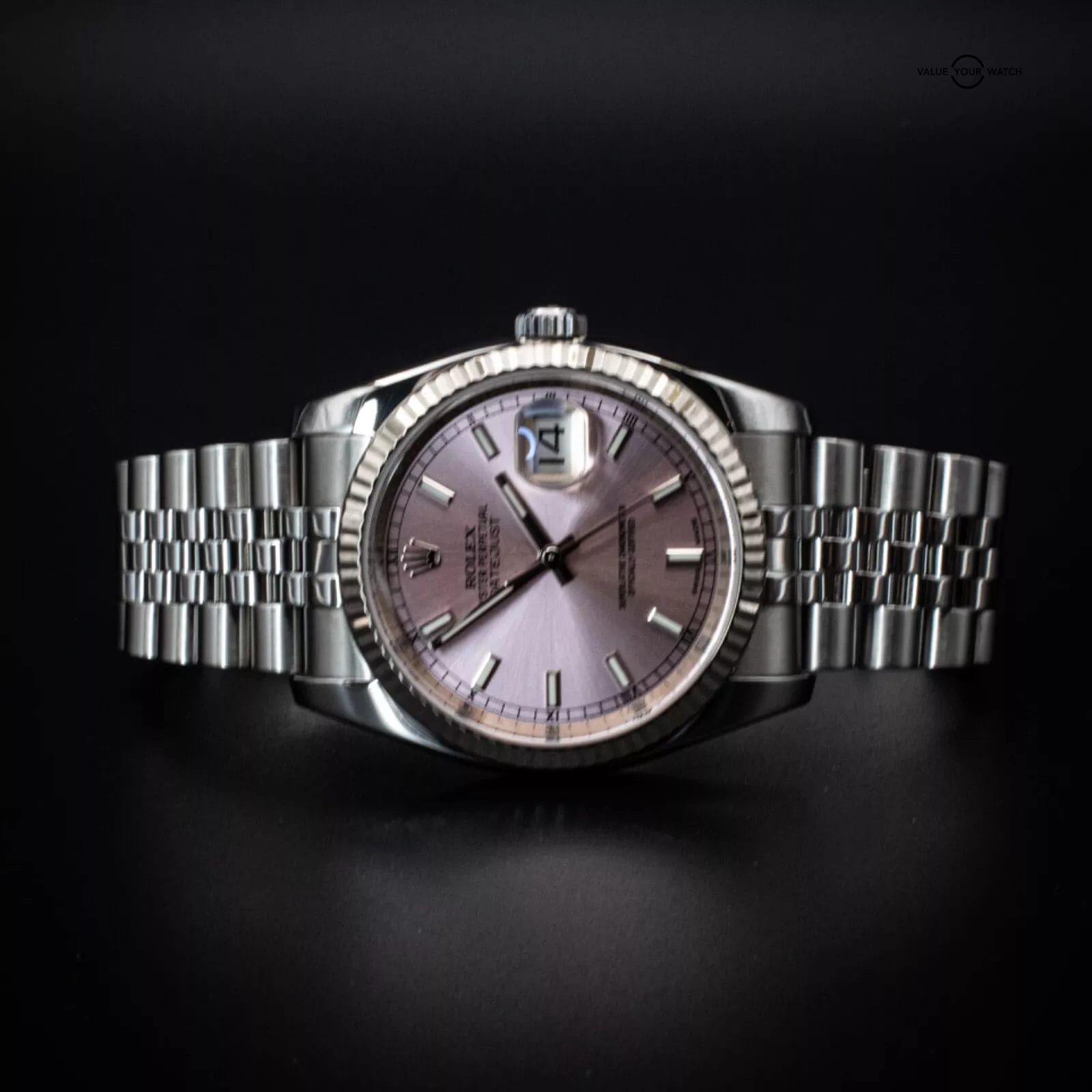 Specification: Rolex Datejust 36mm Pink Dial, Stainless Steel & White Gold Bezel, Ref. 116234
