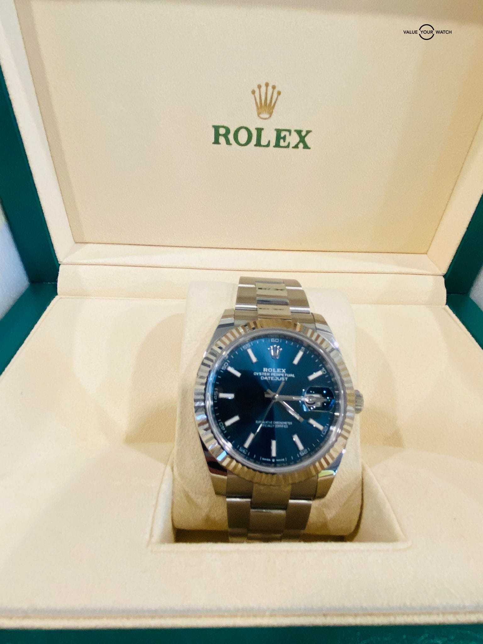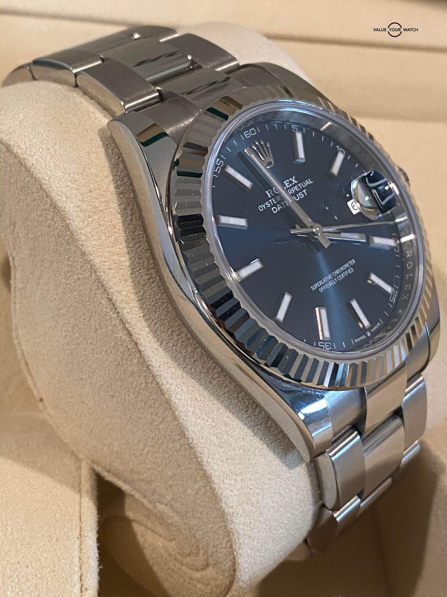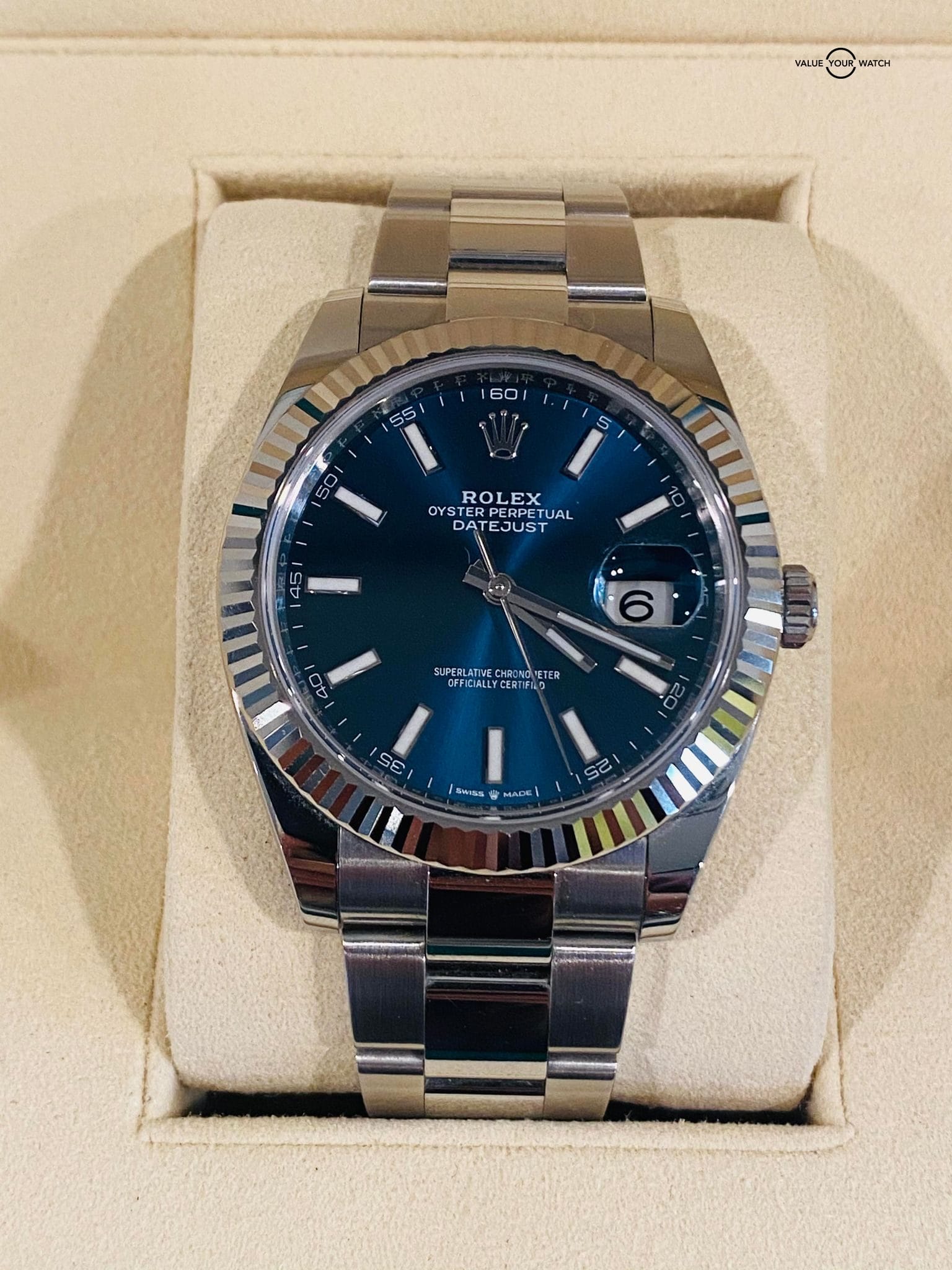 š“ Rolex Blue Index Datejust 41mm Perpetual stainless steel with 18k white gold fluted bezel.