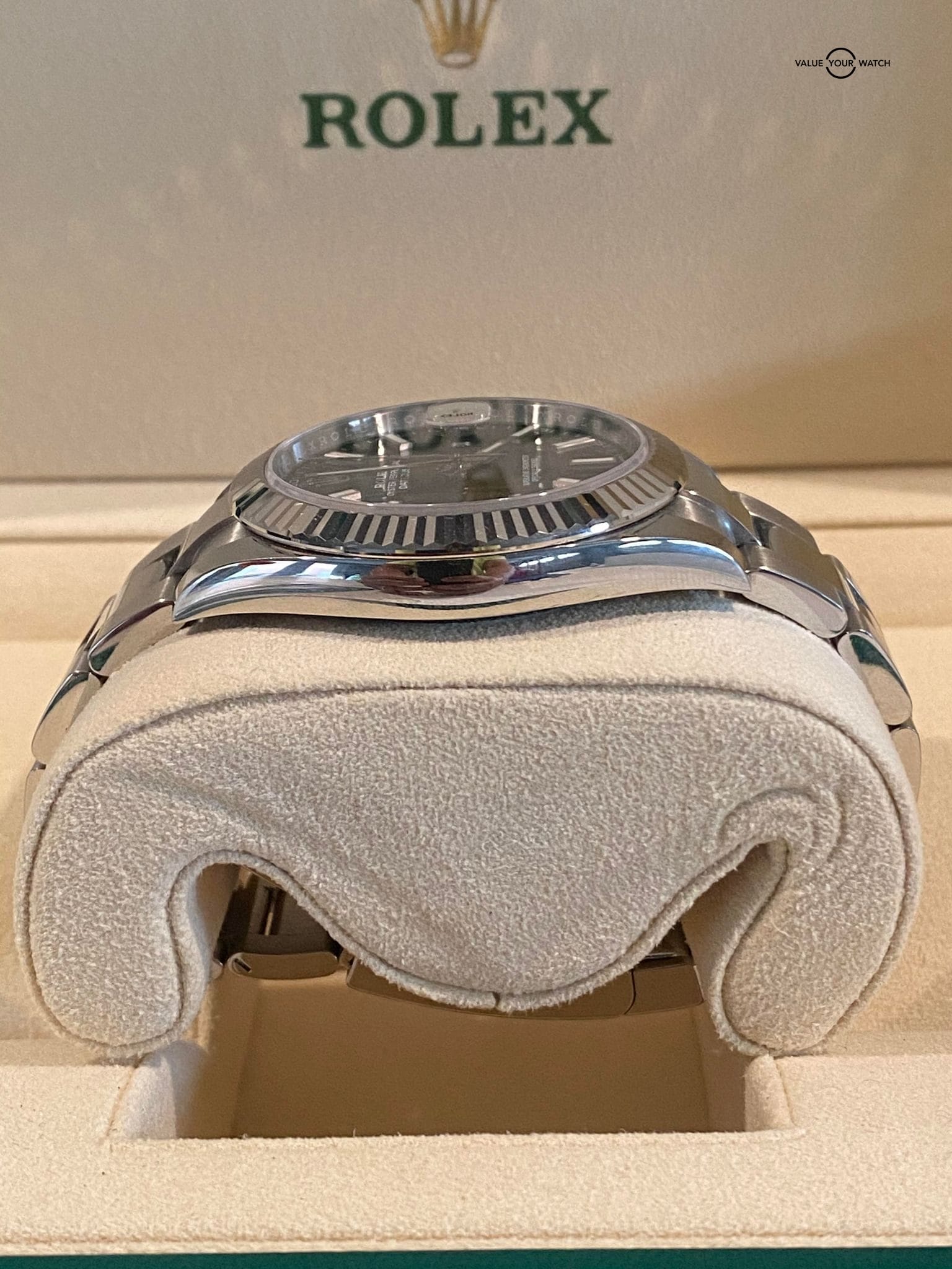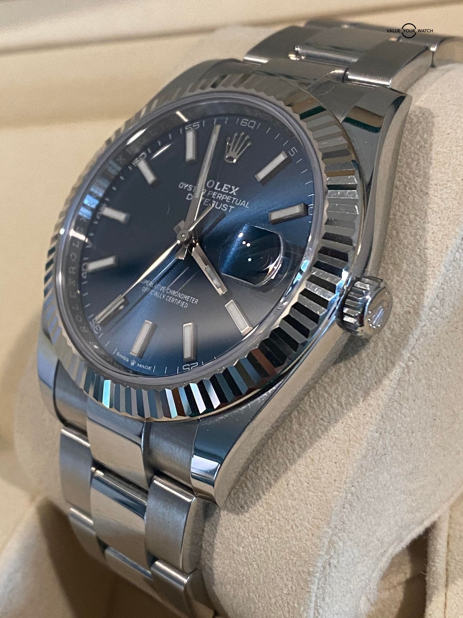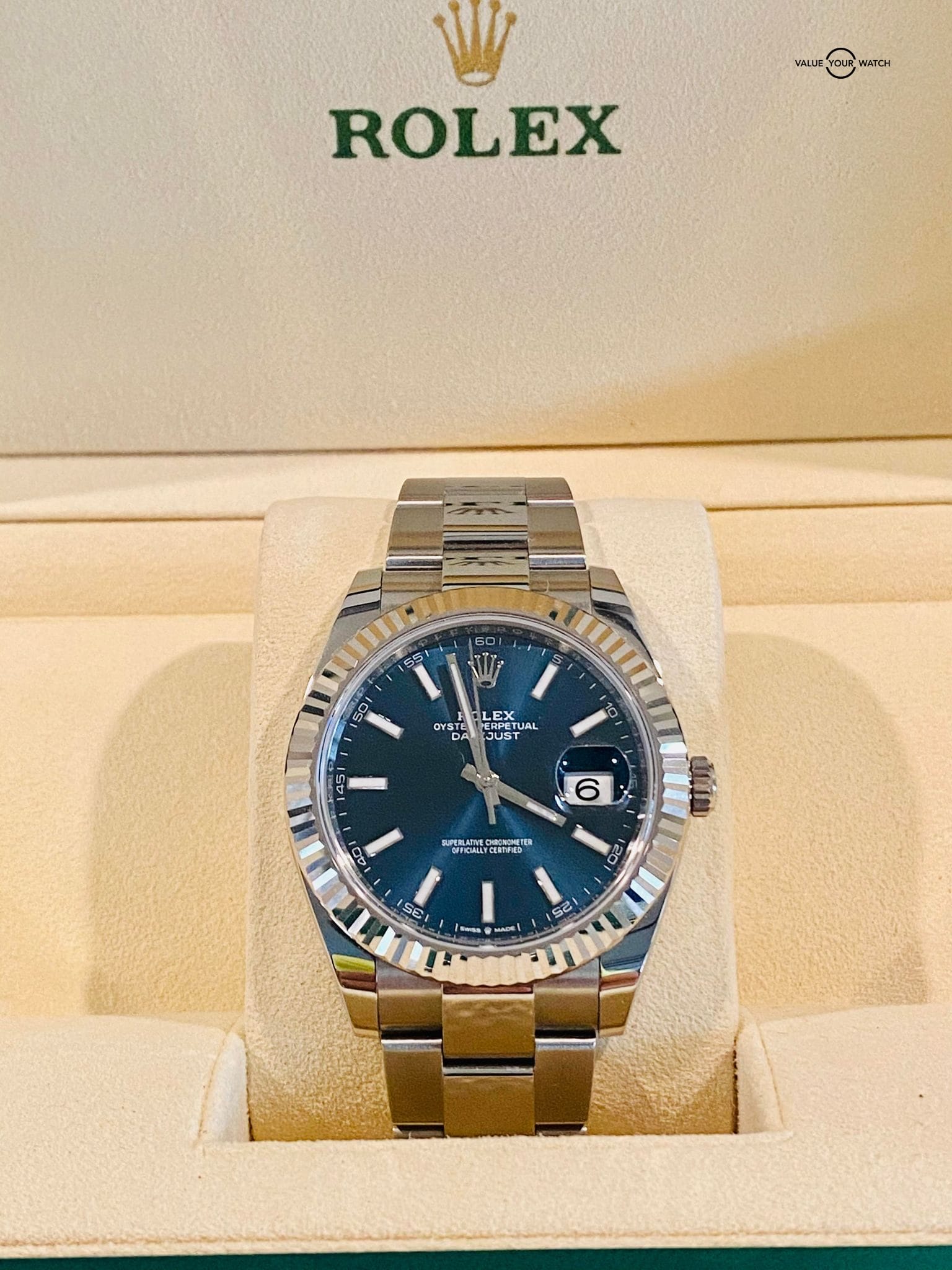 š“ Rolex Blue Index Datejust 41mm Perpetual stainless steel with 18k white gold fluted bezel.