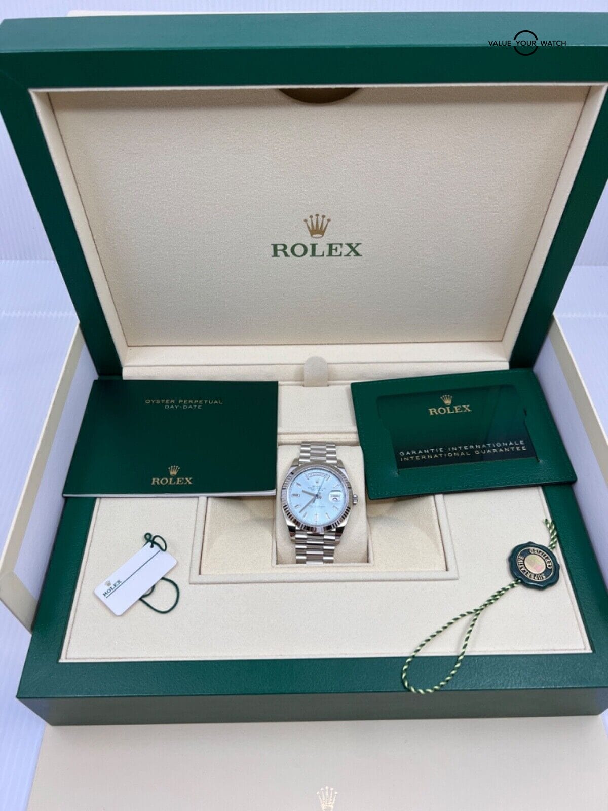 If you are considering selling your 2023 Rolex Day-Date 40 Platinum President, it is essential to preserve its condition and retain all original documentation, including the warranty card and any servicing records. Having these documents enhances the watch’s authenticity and value.