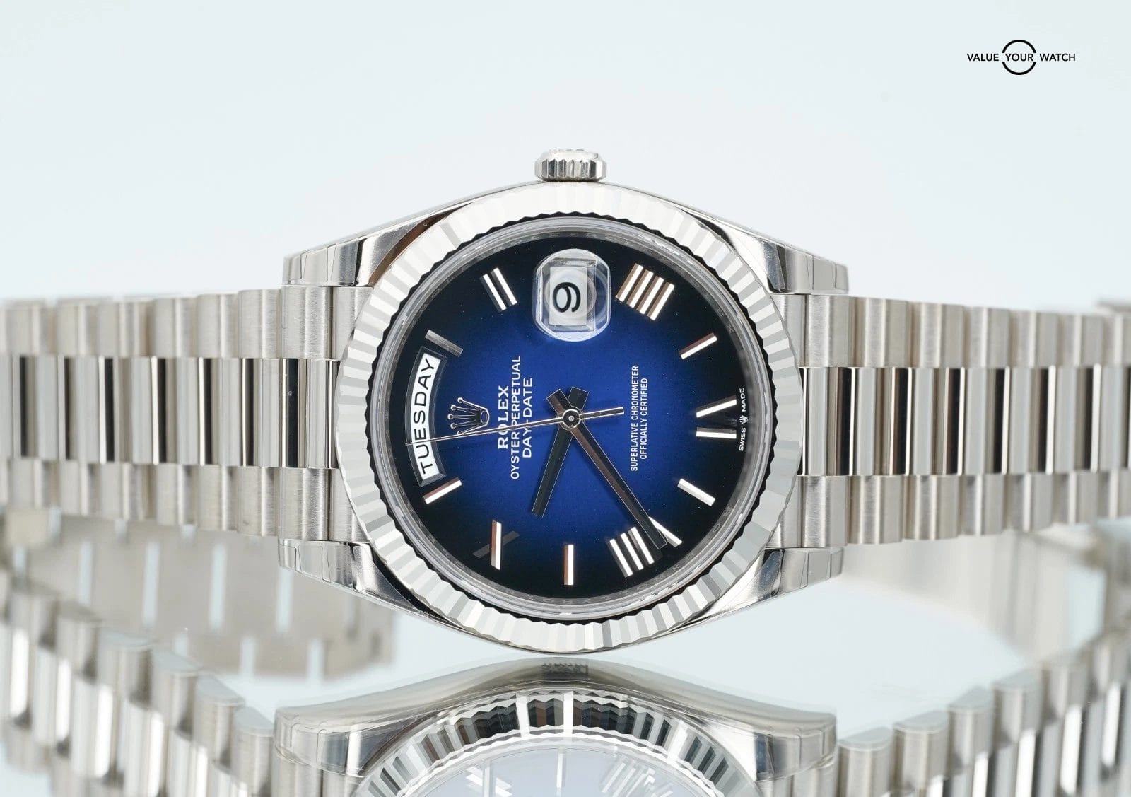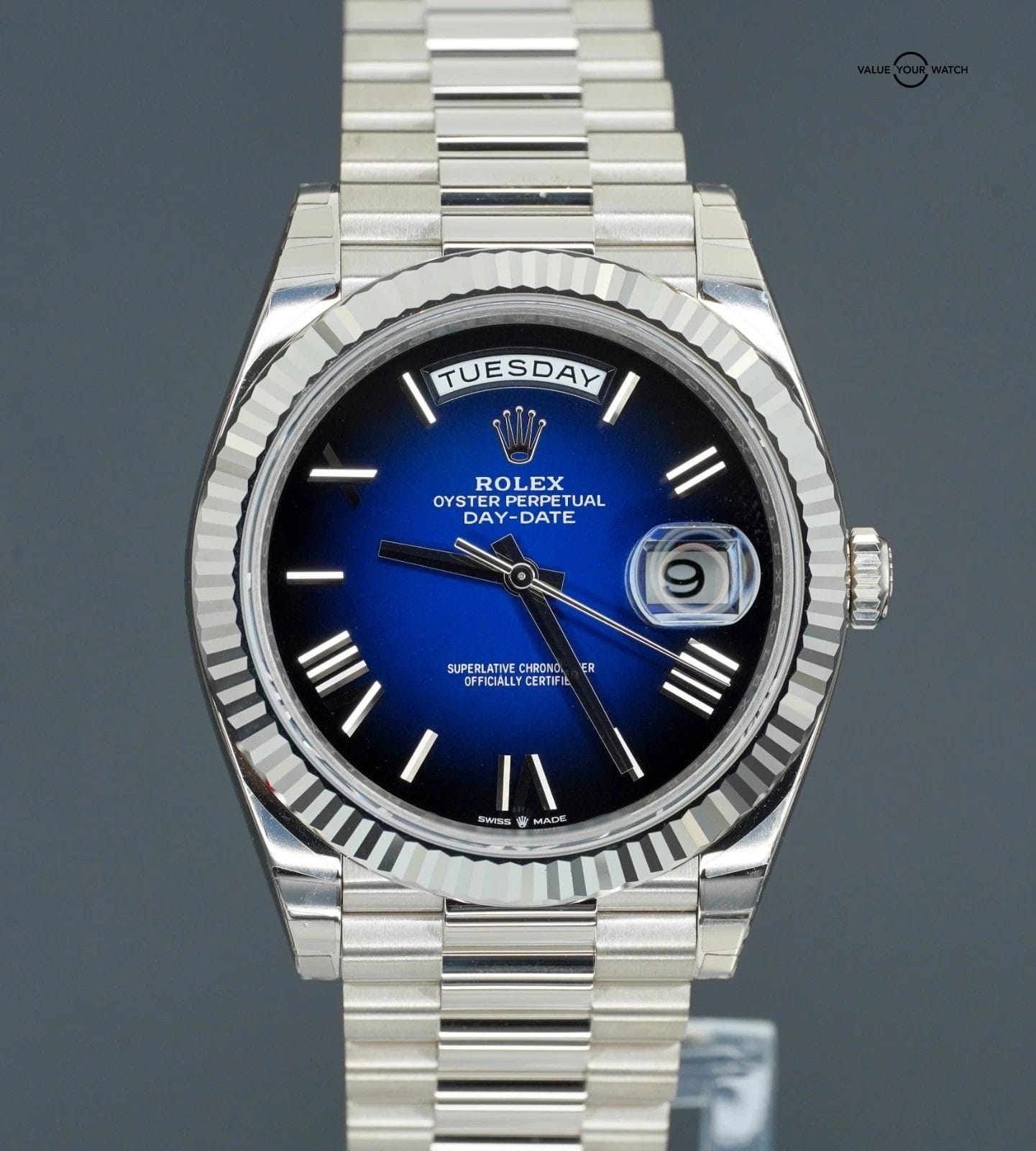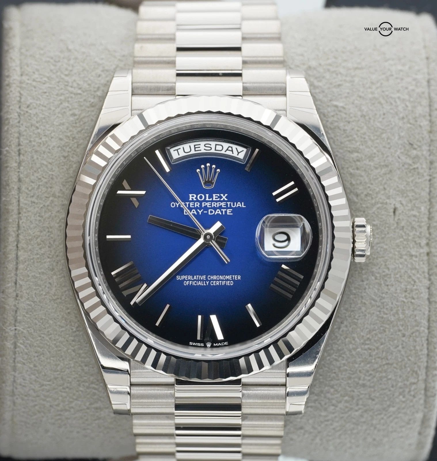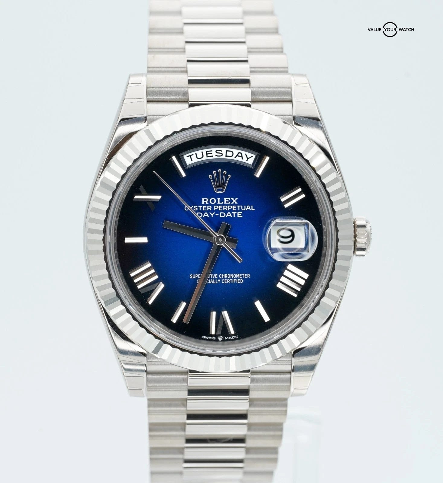 2025 Rolex Day-Date 228239 18K White Gold Blue Ombre Dial BOXES/PAPERS