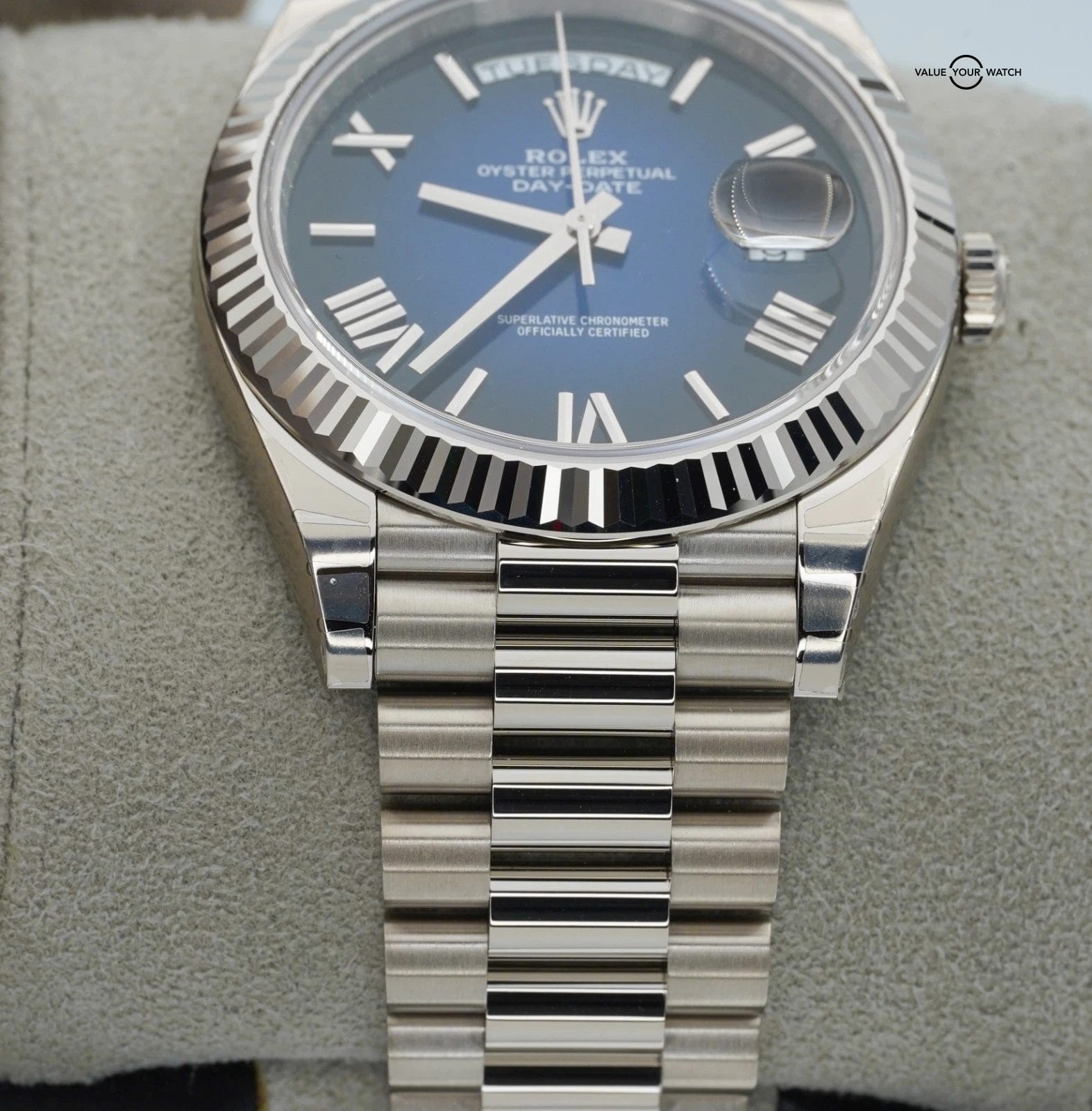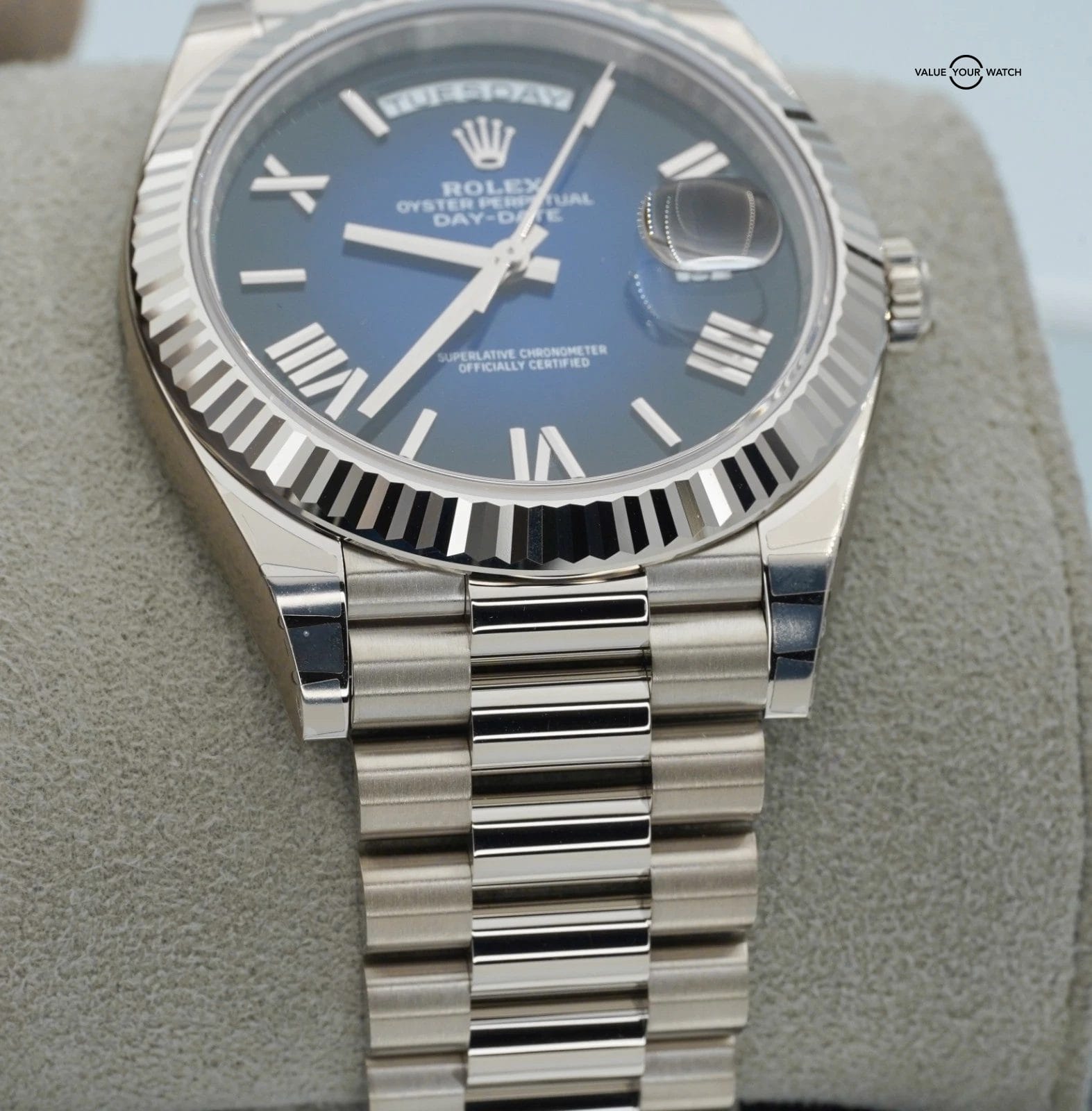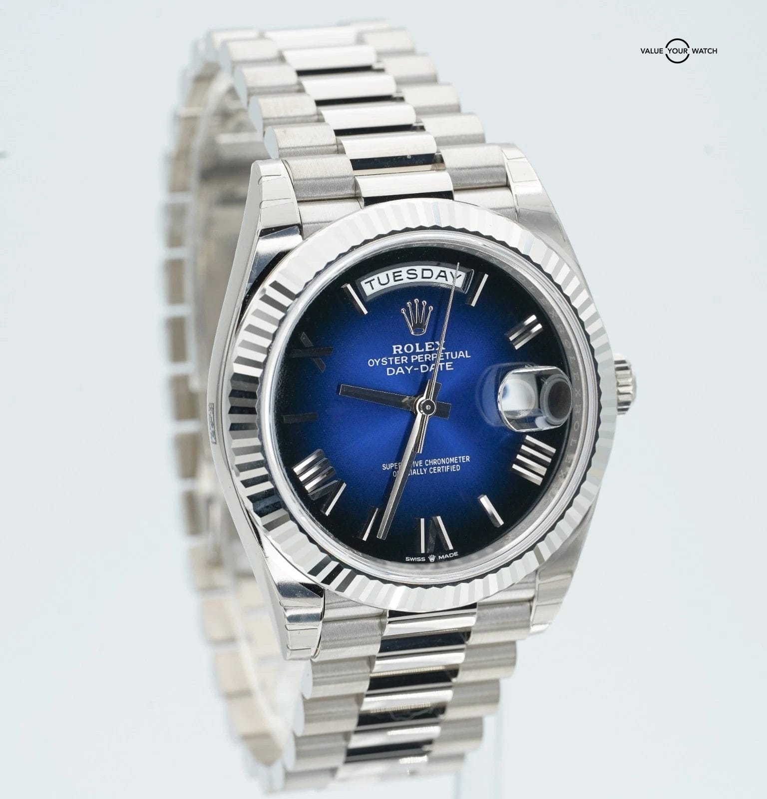 2025 Rolex Day-Date 228239 18K White Gold Blue Ombre Dial BOXES/PAPERS