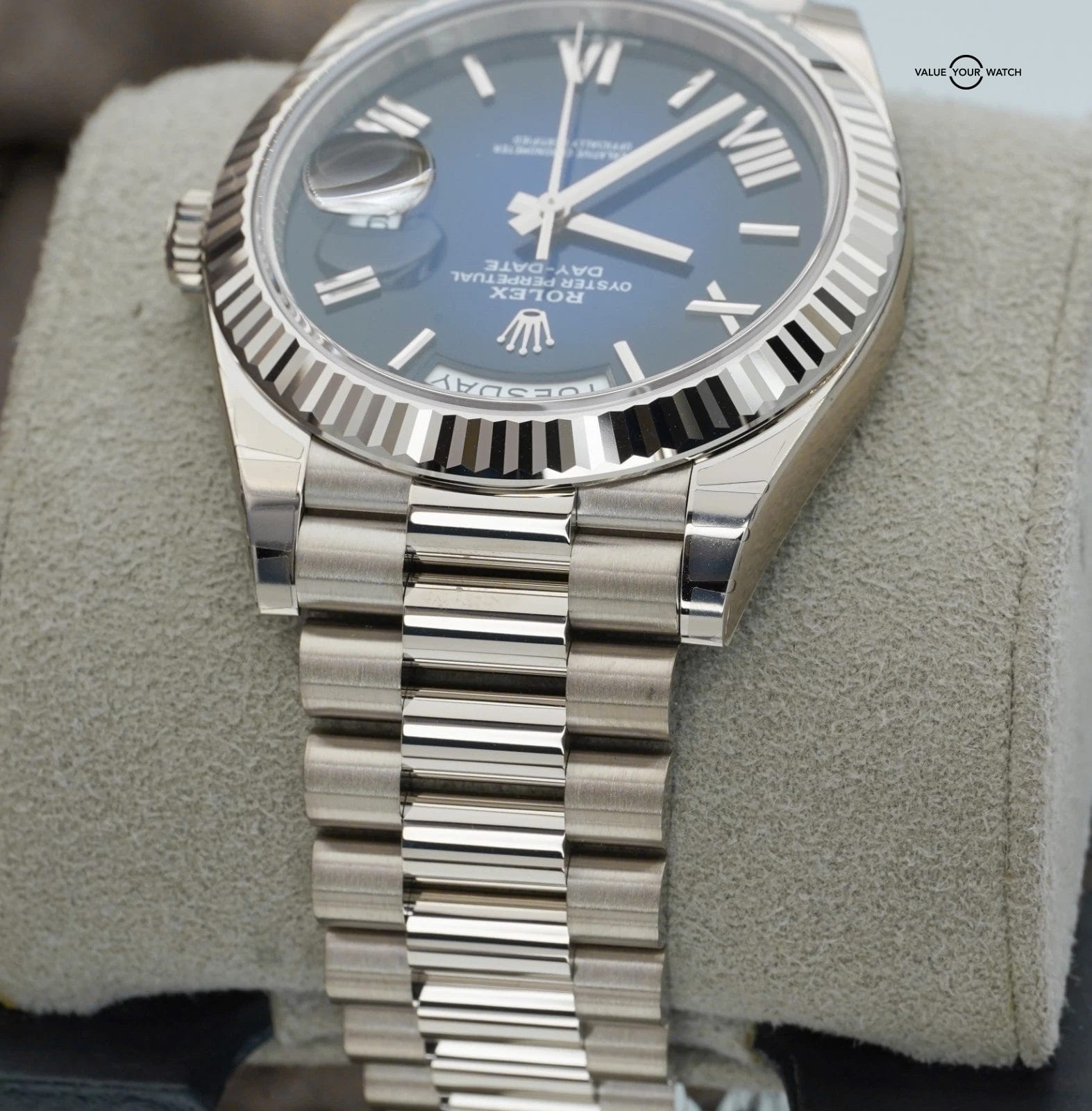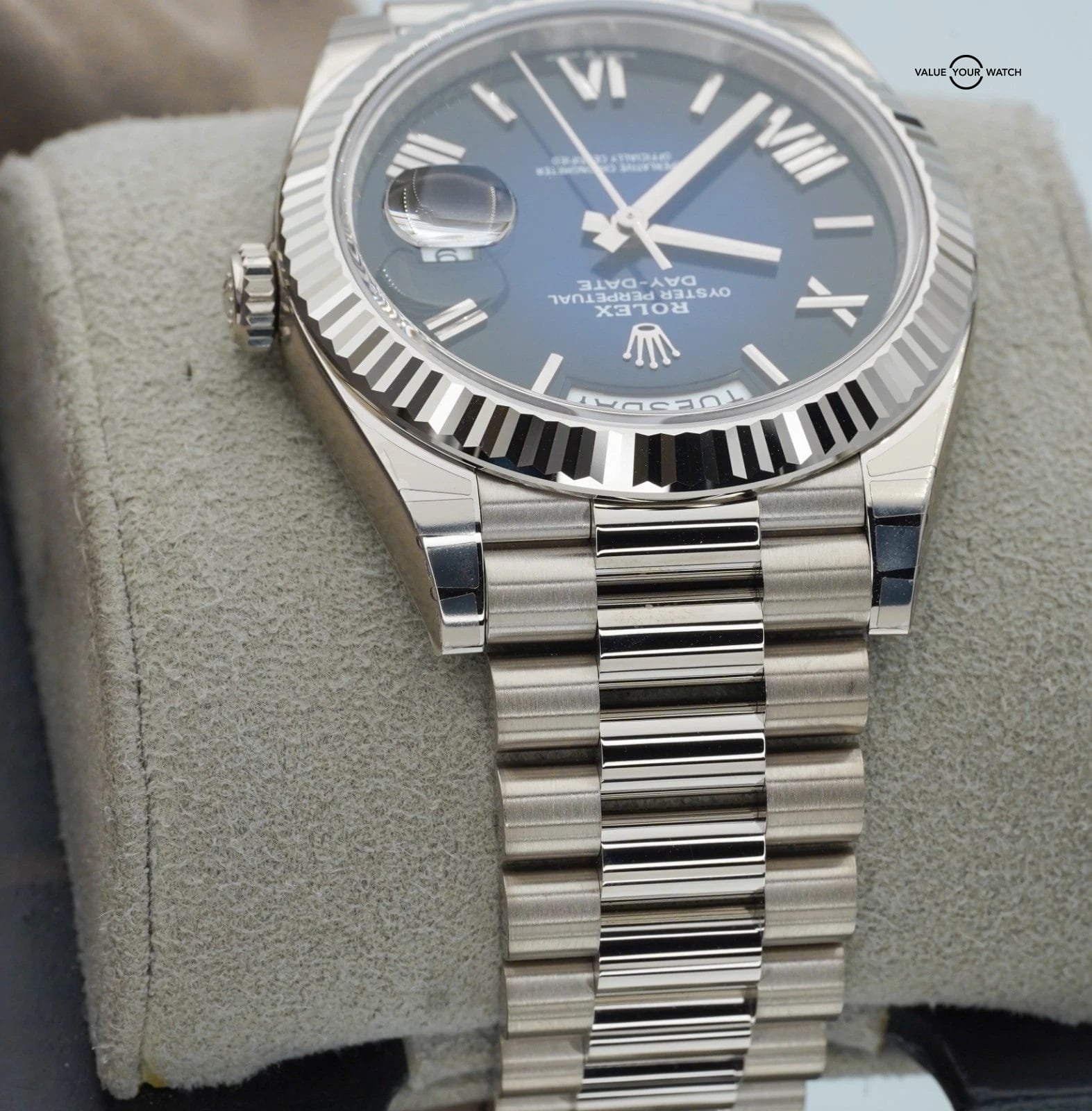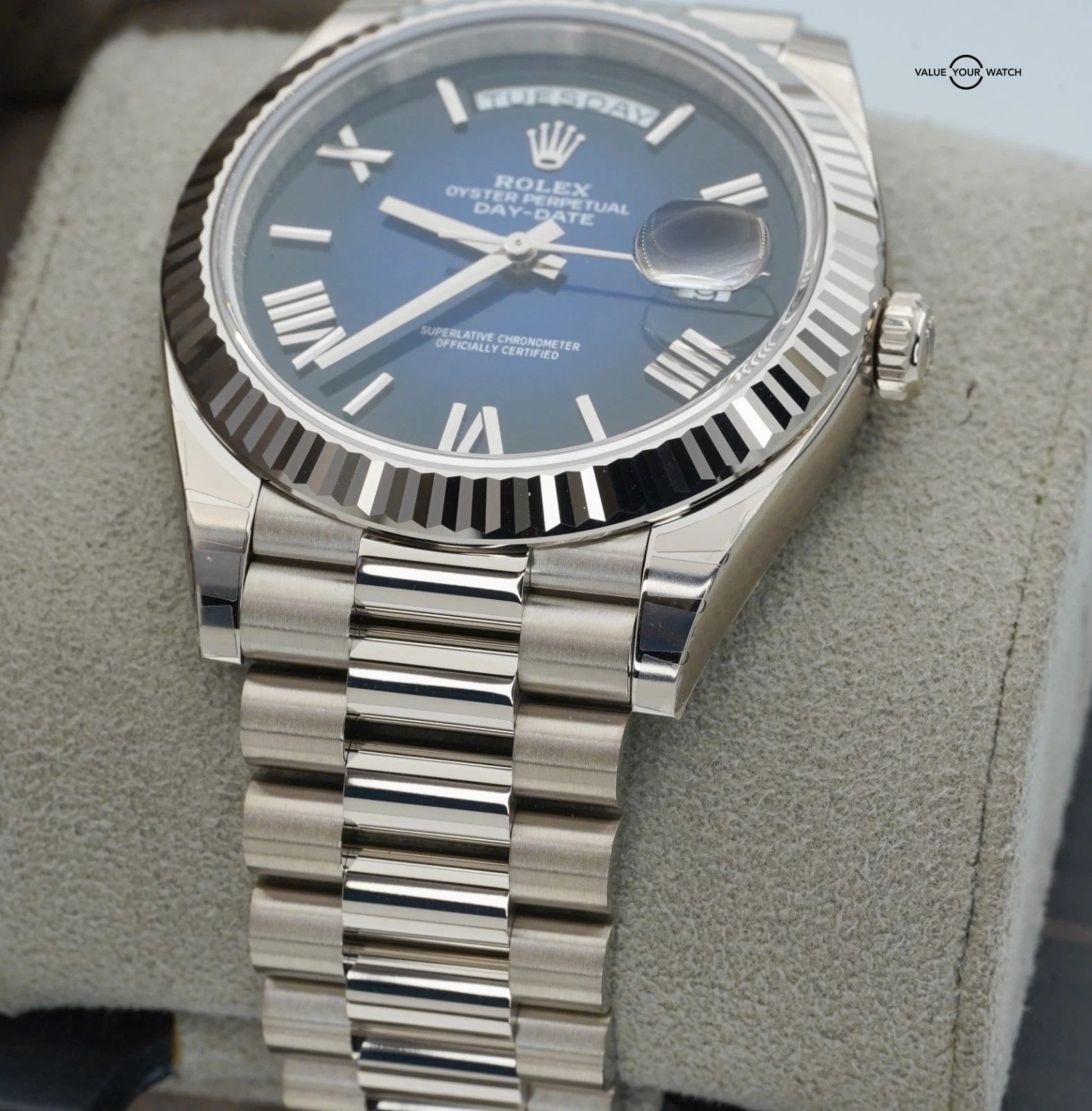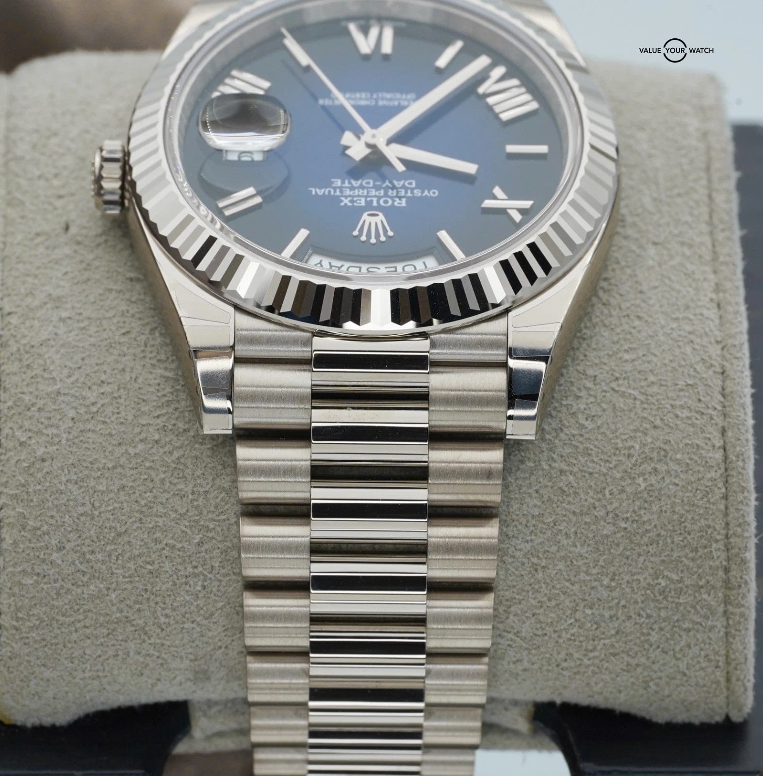2025 Rolex Day-Date 228239 18K White Gold Blue Ombre Dial BOXES/PAPERS