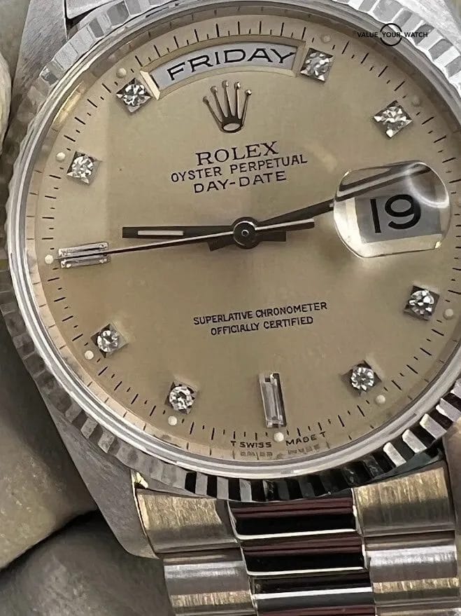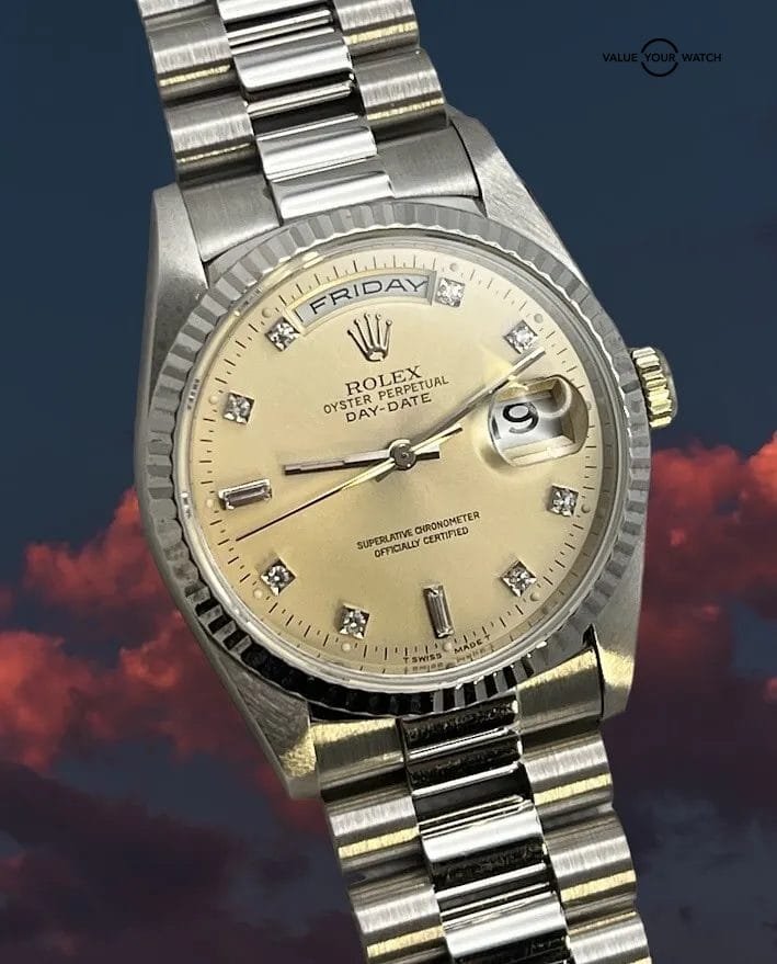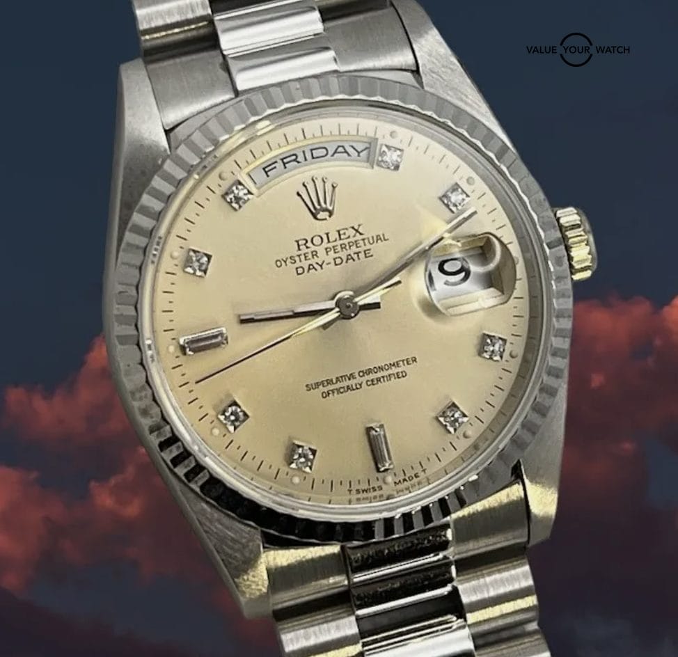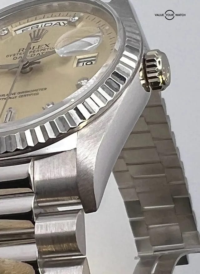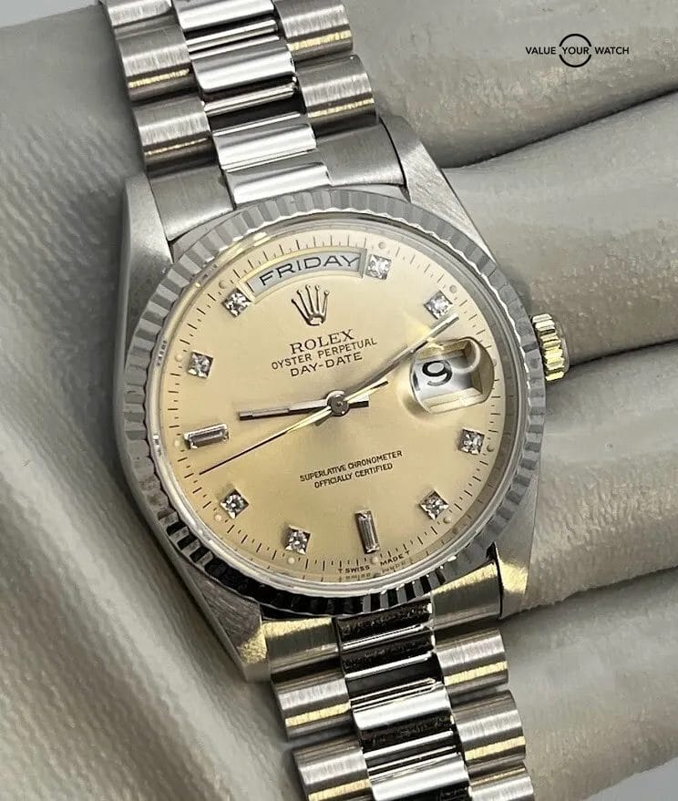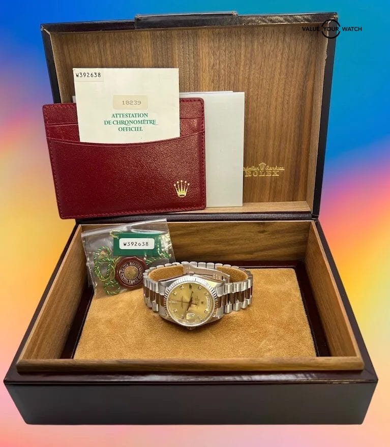 Specification: Collector Set! 1995 Rolex Day-Date President 18239 18k white gold. Serviced!