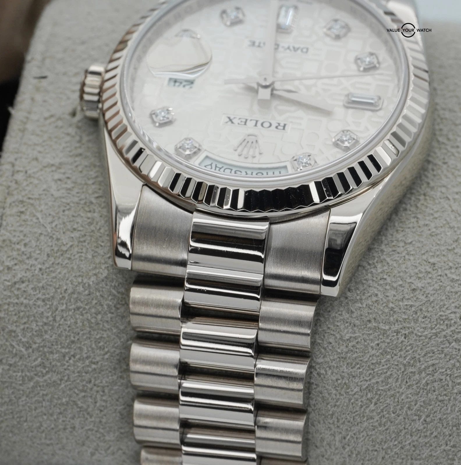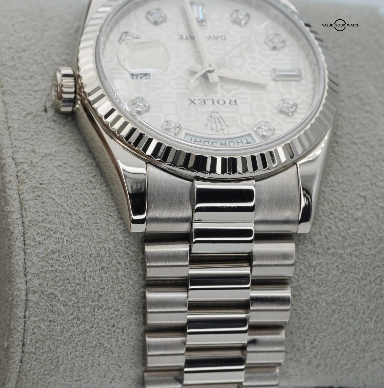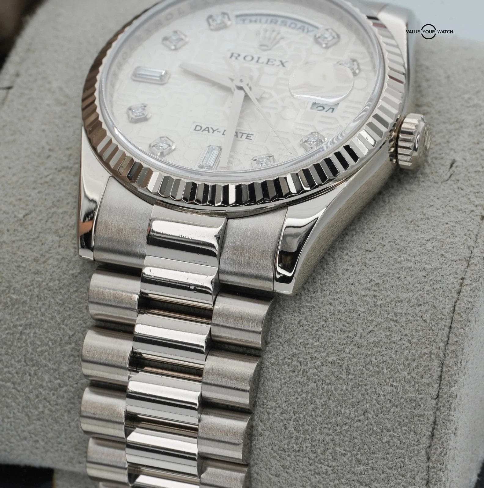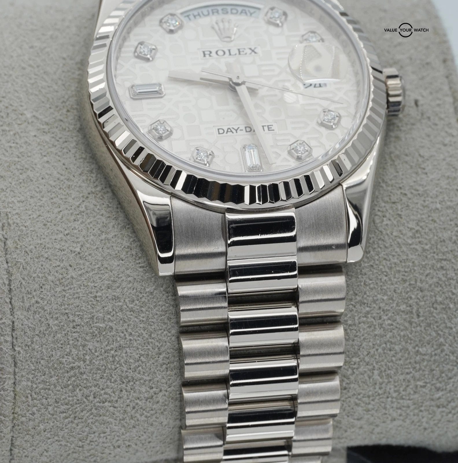 Specification: Rolex Day-Date 118239 Diamond Dial 36mm 18K White Gold Fat Buckle BOX/PAPERS!
