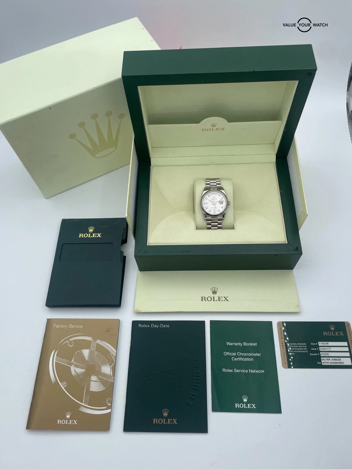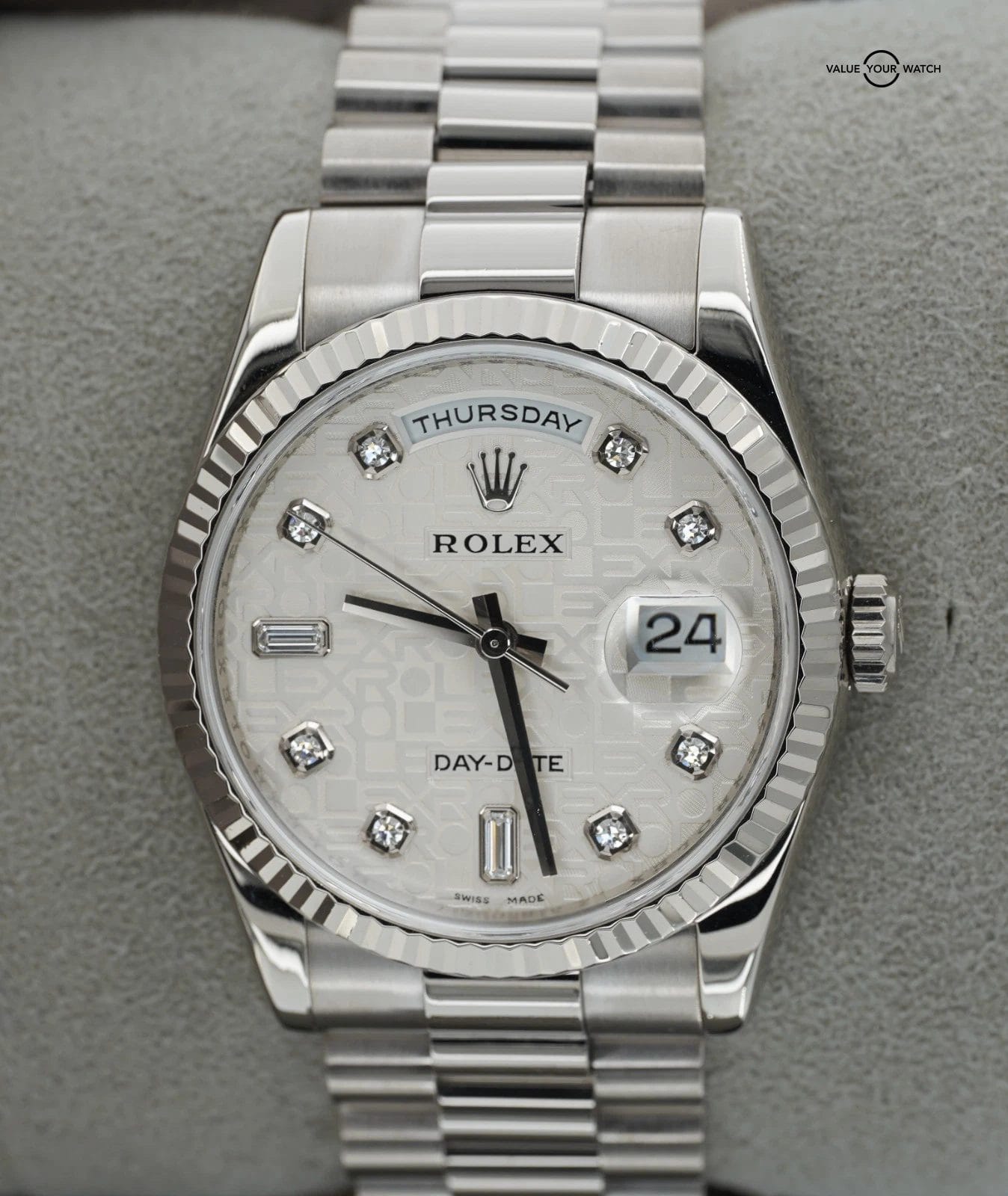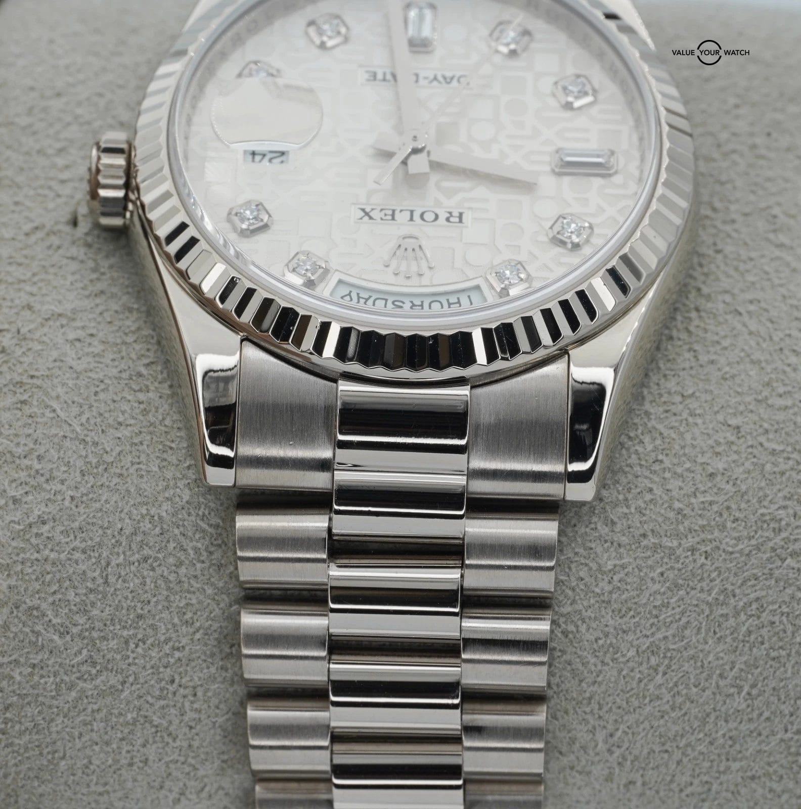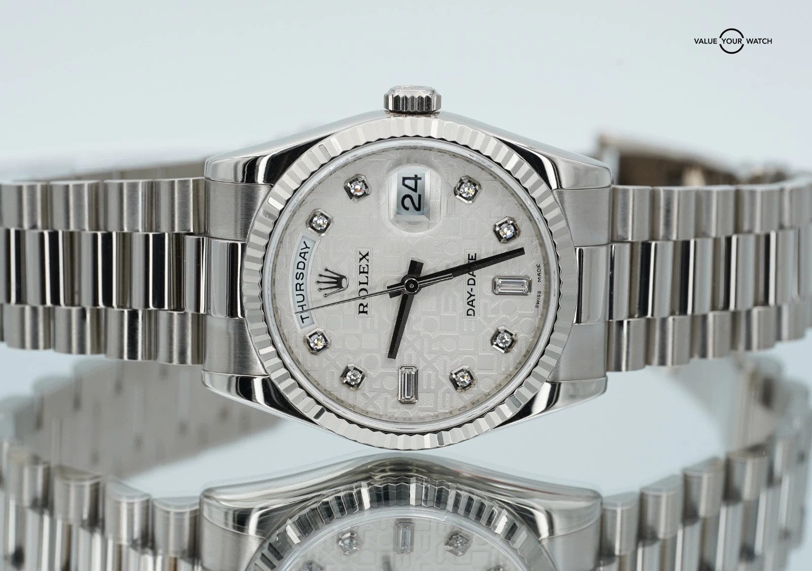 Specification: Rolex Day-Date 118239 Diamond Dial 36mm 18K White Gold Fat Buckle BOX/PAPERS!