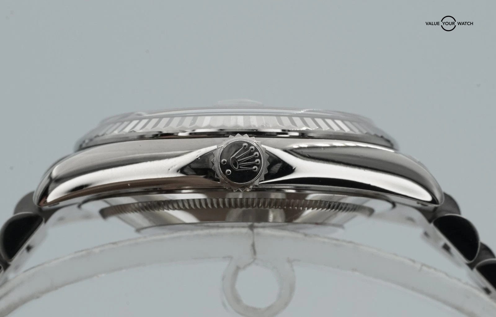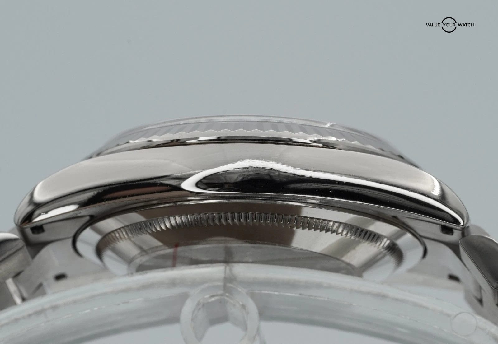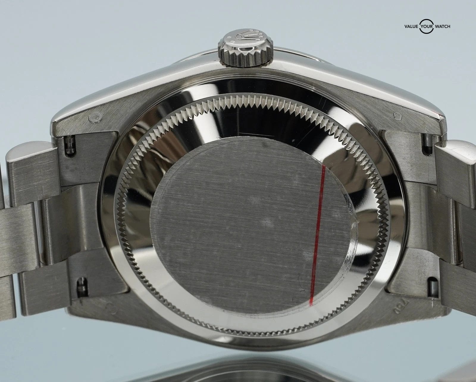 This beautiful timepiece comes with the outer cream box and inner green wave box, all manuals, and original warranty card (Dated June 30, 2008). The watch is in nice pre-owned condition with typical cosmetic wear throughout normal use with a few typical micro dings. Watch will accommodate up to a 7.25” wrist. It features the new style heavy/fat buckle. It features a factory Rolex Jubilee Diamond Dial. Pay close attention to the pictures as they accurately describe the condition. Mechanically the watch is functioning as it should. Serial numbers and names are blurred in photos only for privacy reasons.