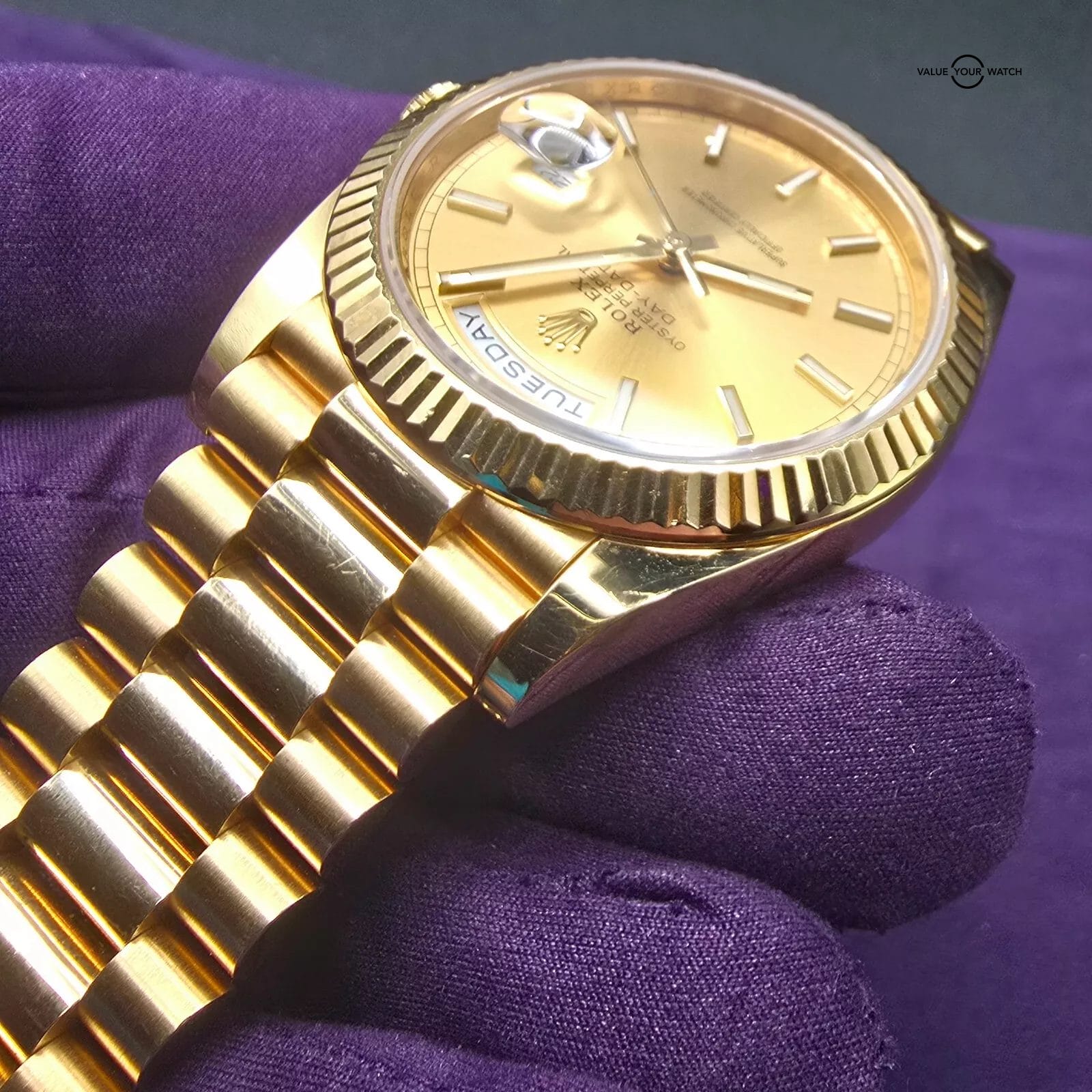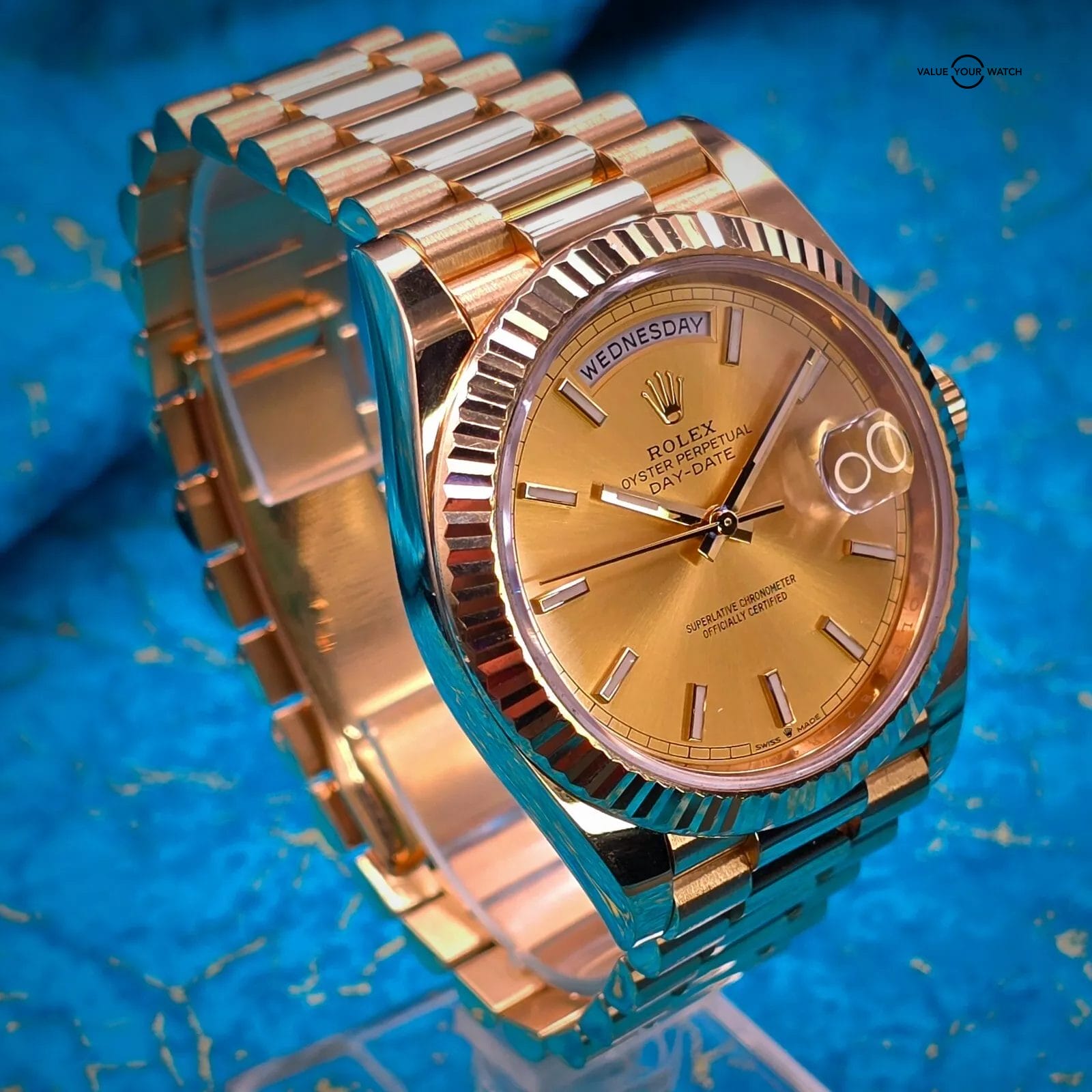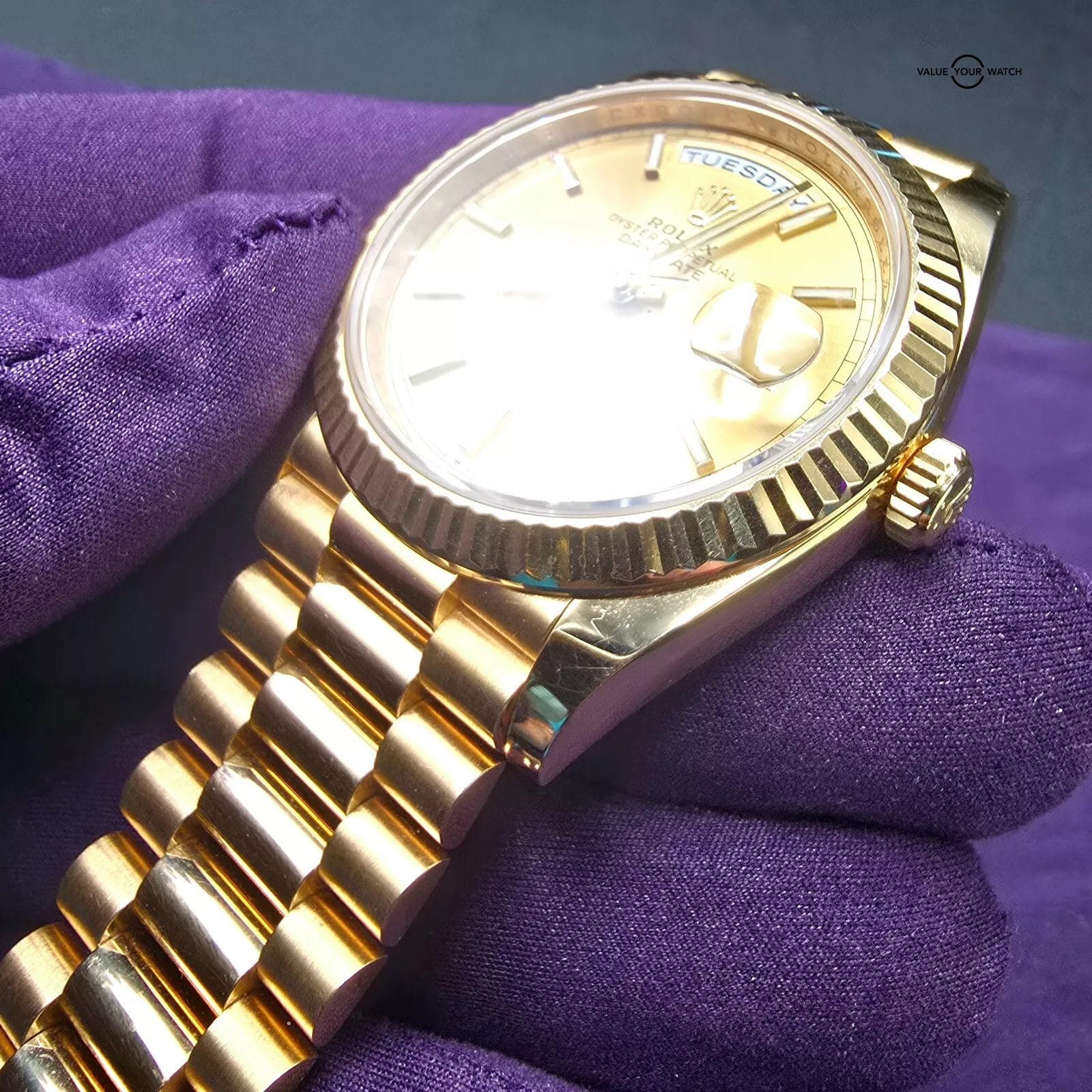 Specification: Rolex Day-Date 40mm Champagne dial, 18k Yellow gold 228238 watch only!