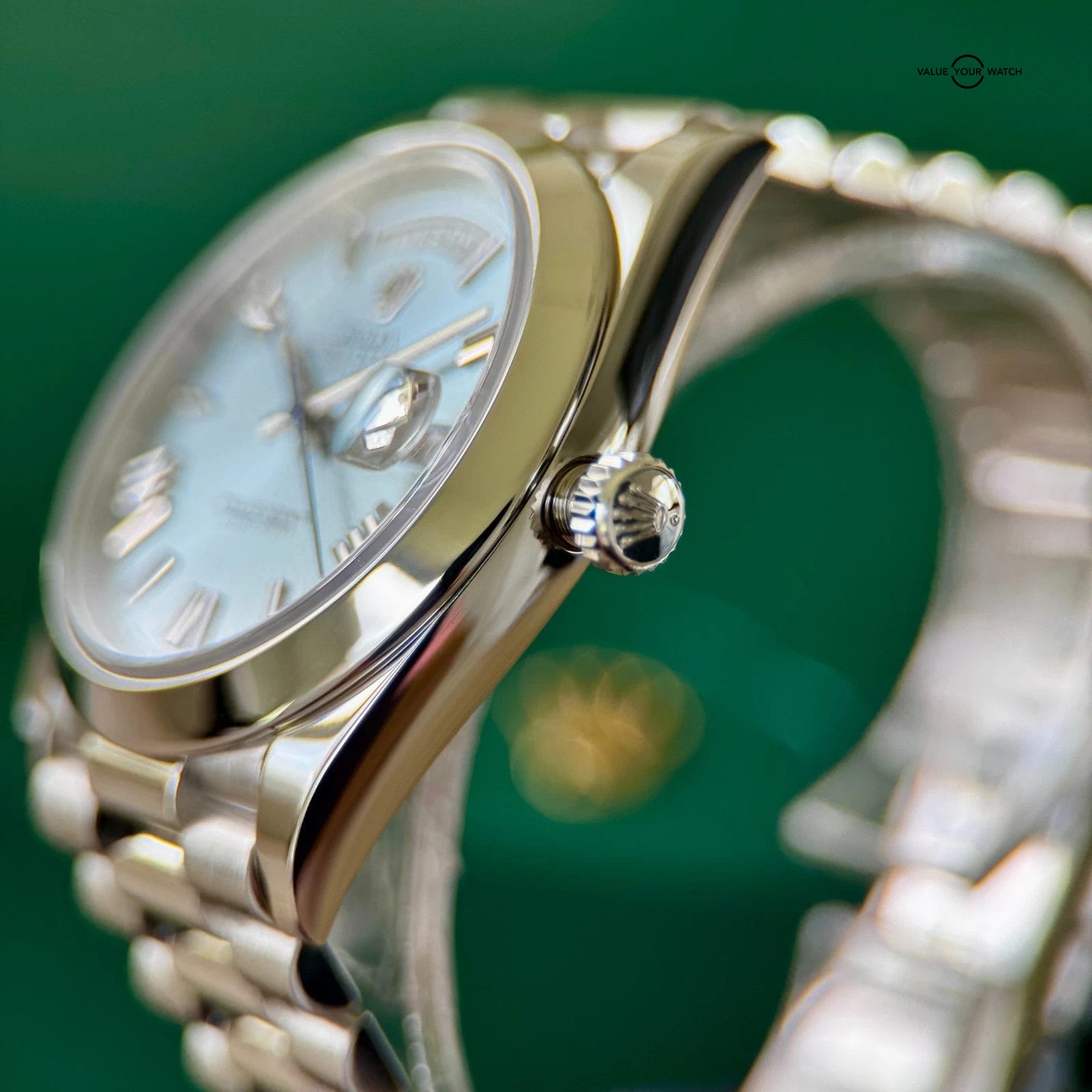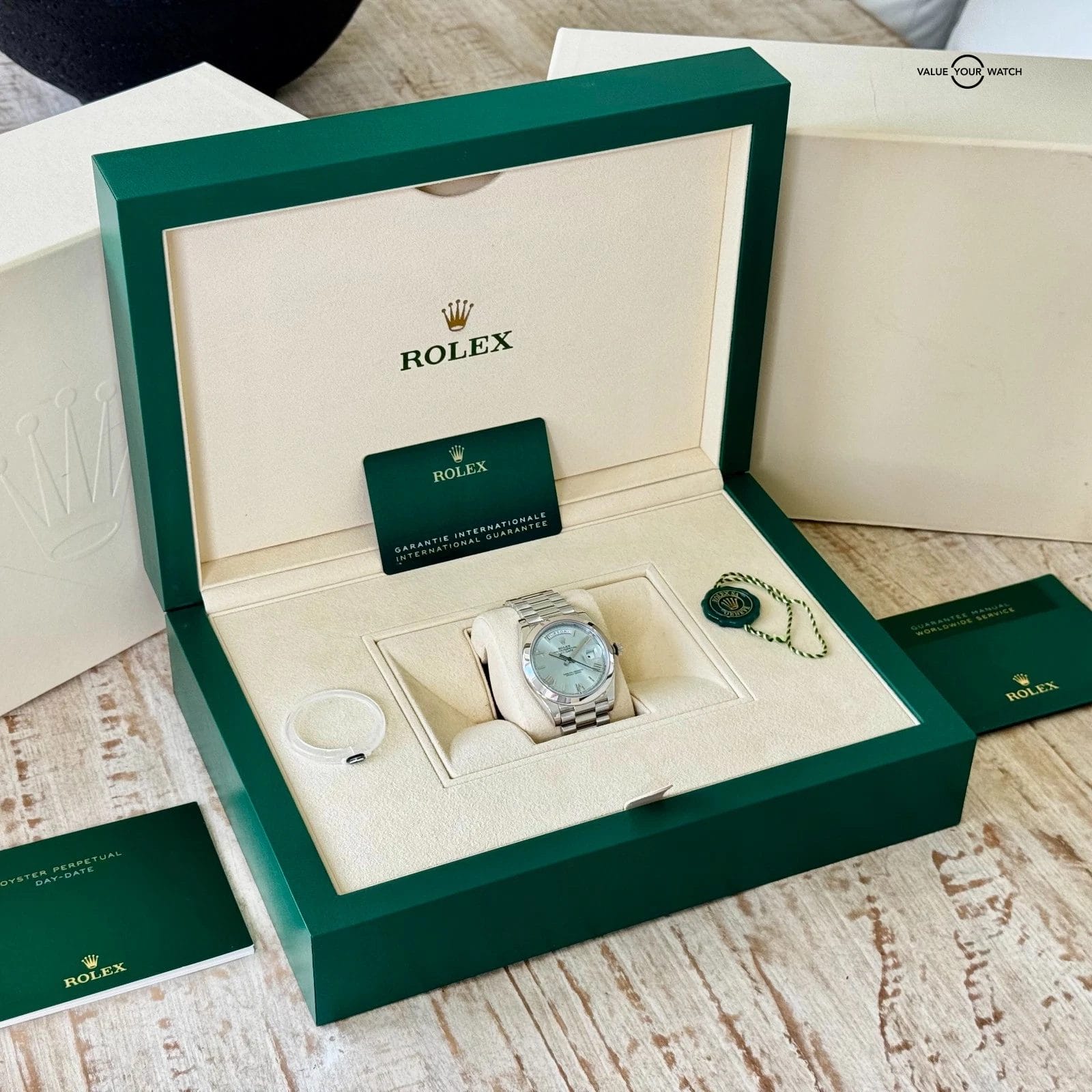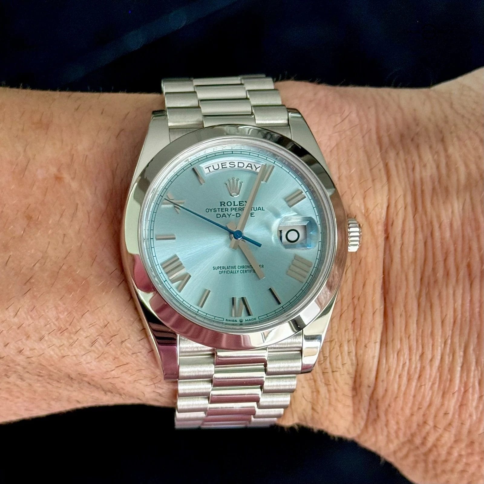 Whether you’re closing deals, attending black-tie events, or simply demanding the finest daily companion, the Day-Date 228206 in platinum with ice blue dial remains one of the most exclusive and desirable configurations in the Rolex catalog. The Platinum Presidential Rolex – because some statements don’t need words.