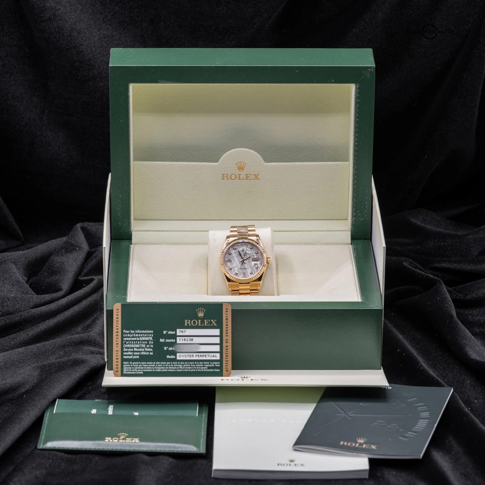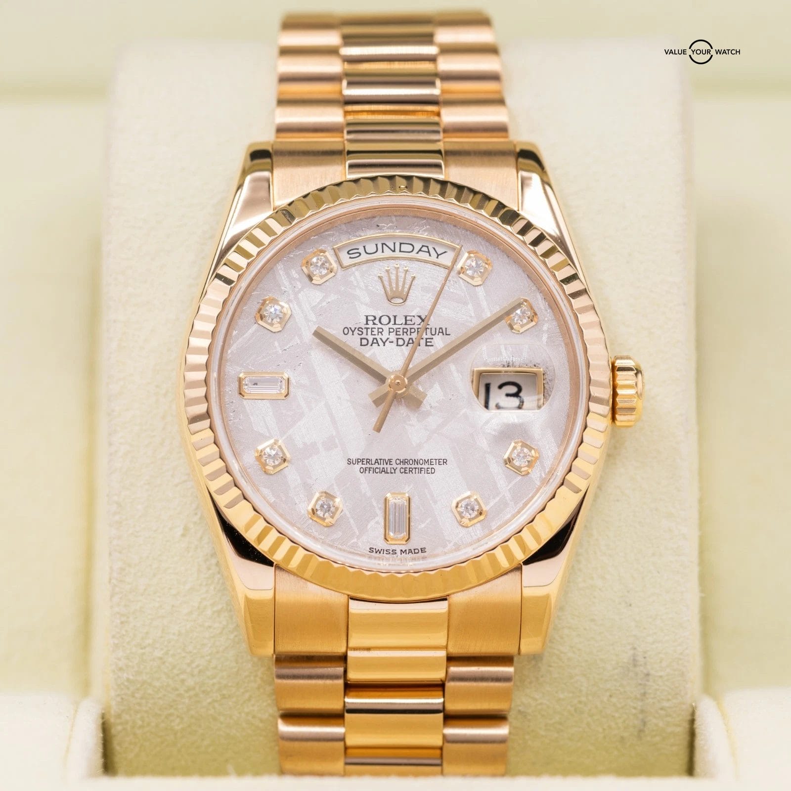 Specification: Rolex Day-Date President with Meteorite Dial, 36mm in solid 18k Yellow Gold 2011