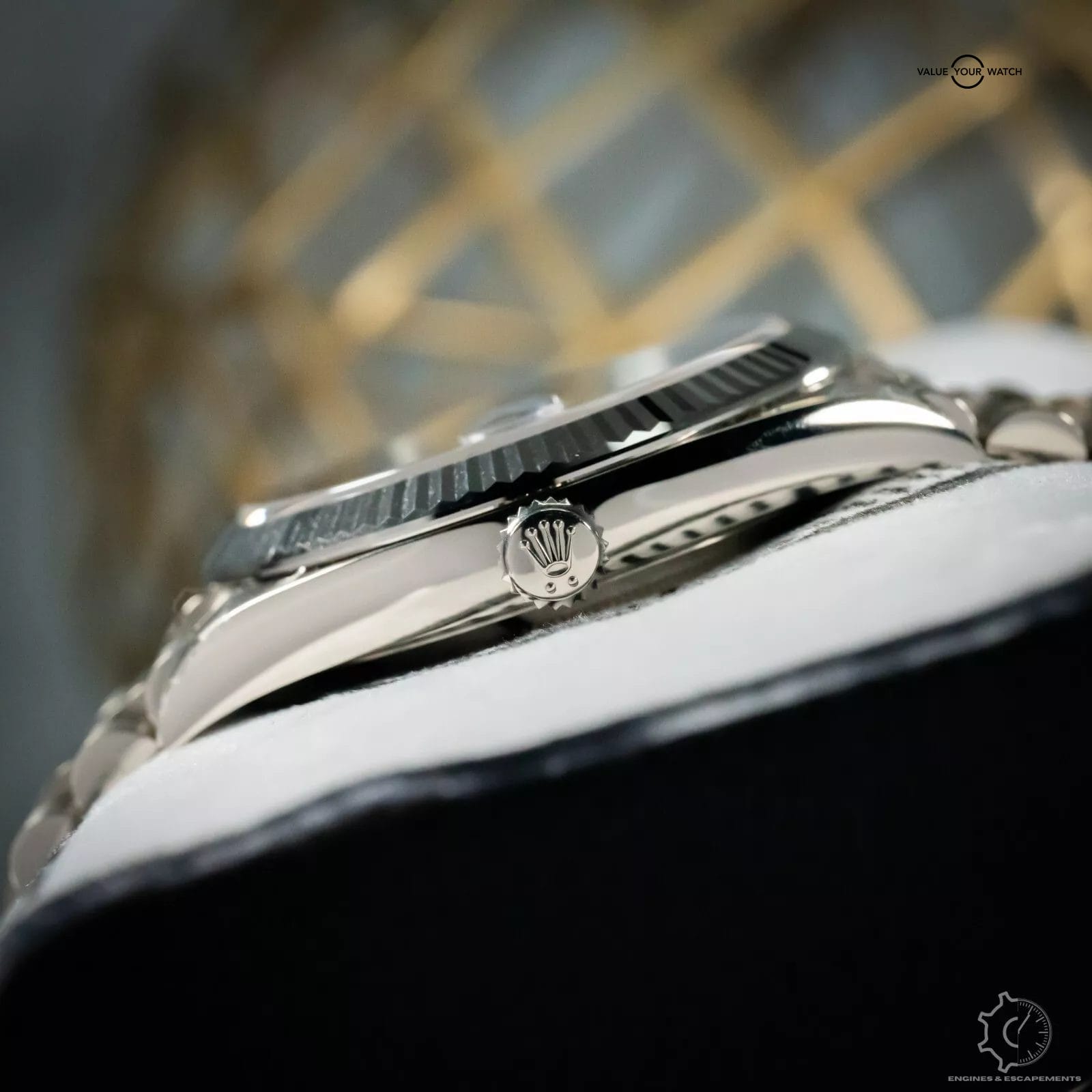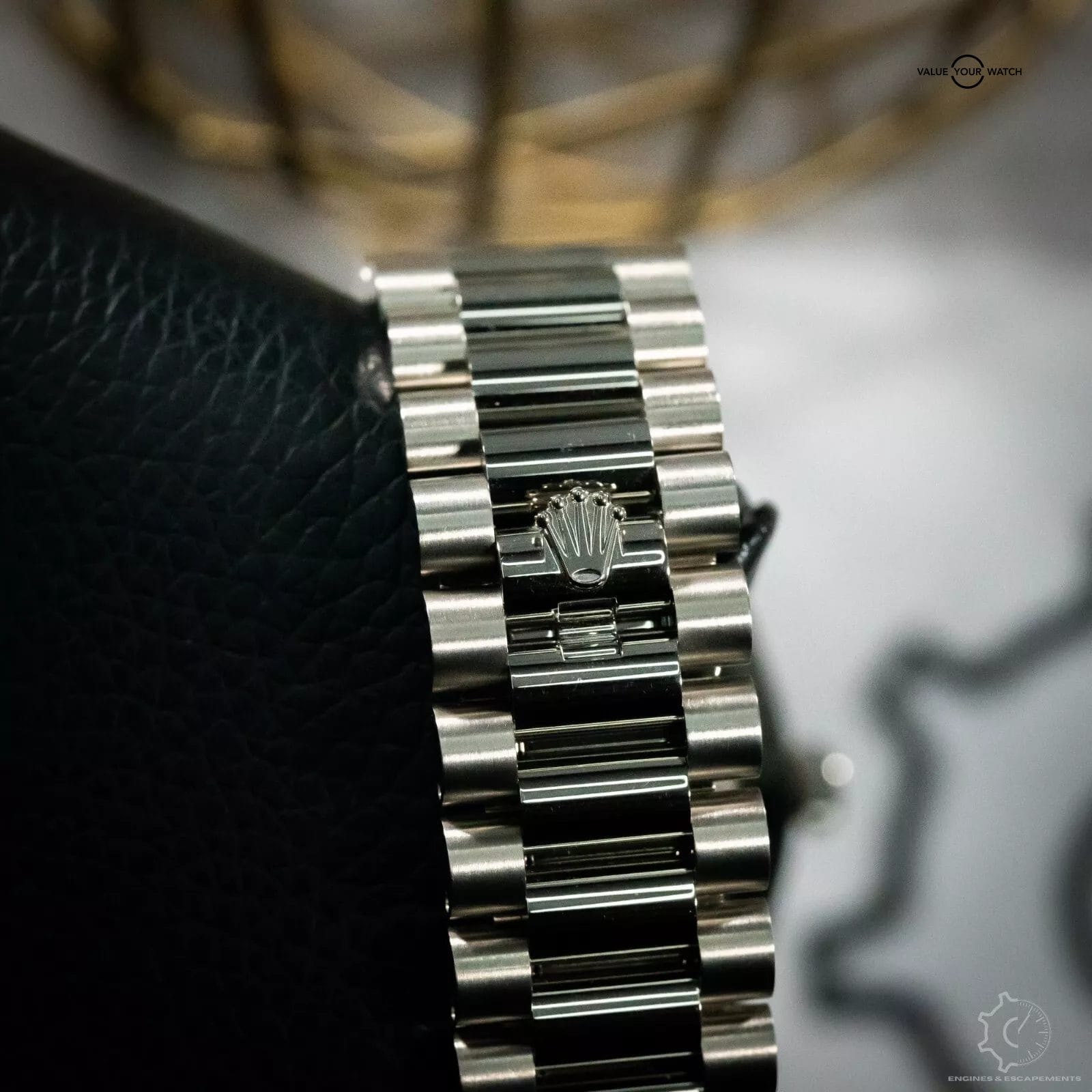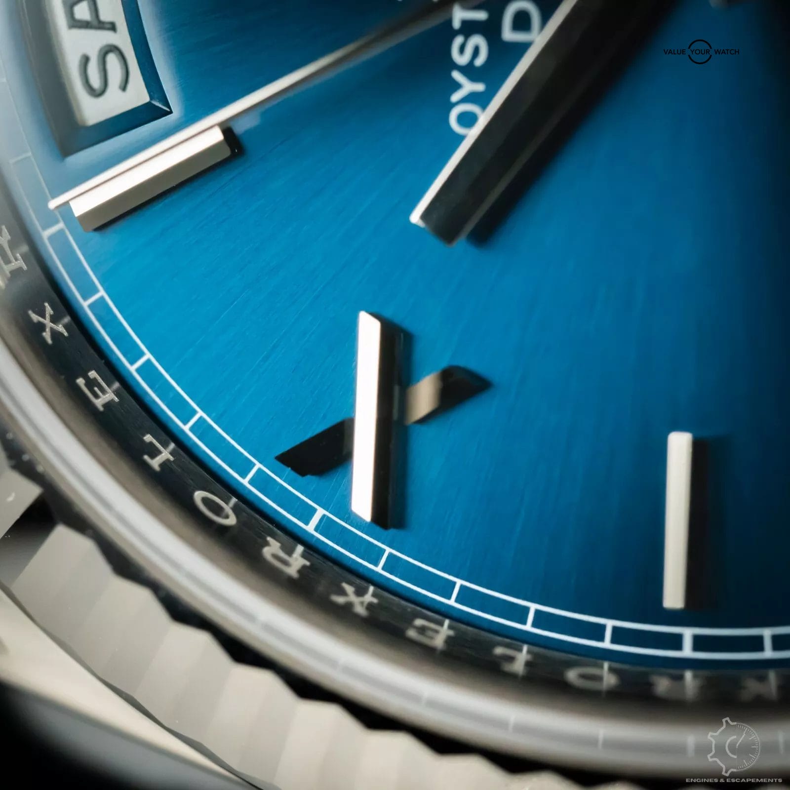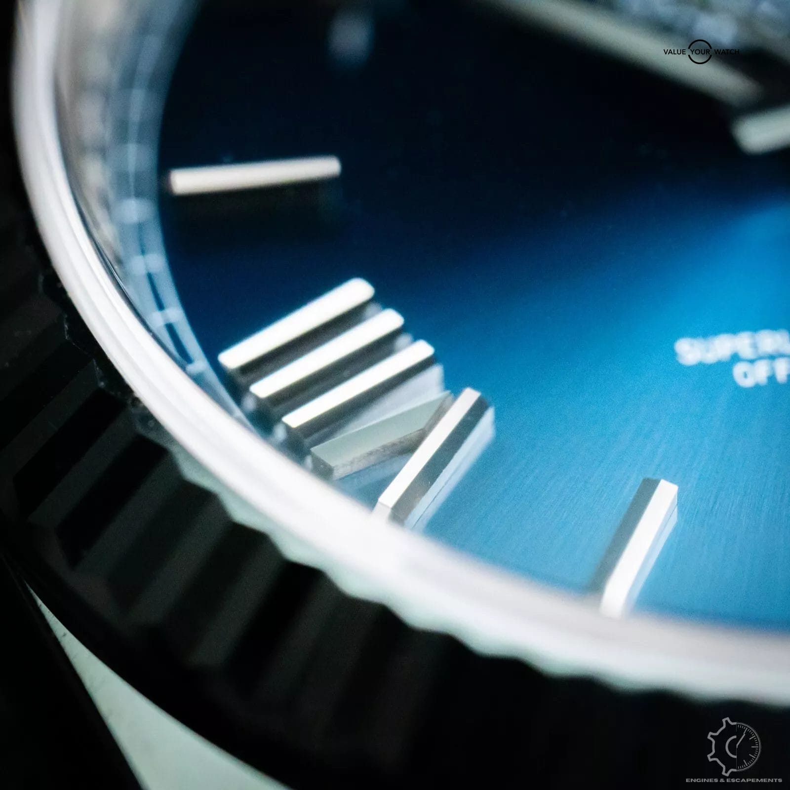 Stunning Rolex Day-Date 228239 with striking blue sunburst dial with white gold Roman numerals. This timepiece is one of the classiest models in the Rolex lineup. This beautiful timepiece features a fluted bezel & the presidential bracelet that just works best in full hefty white gold that gives this timepiece an exceptional wrist presence. I especially like how the blue dial shimmers in the sunlight.