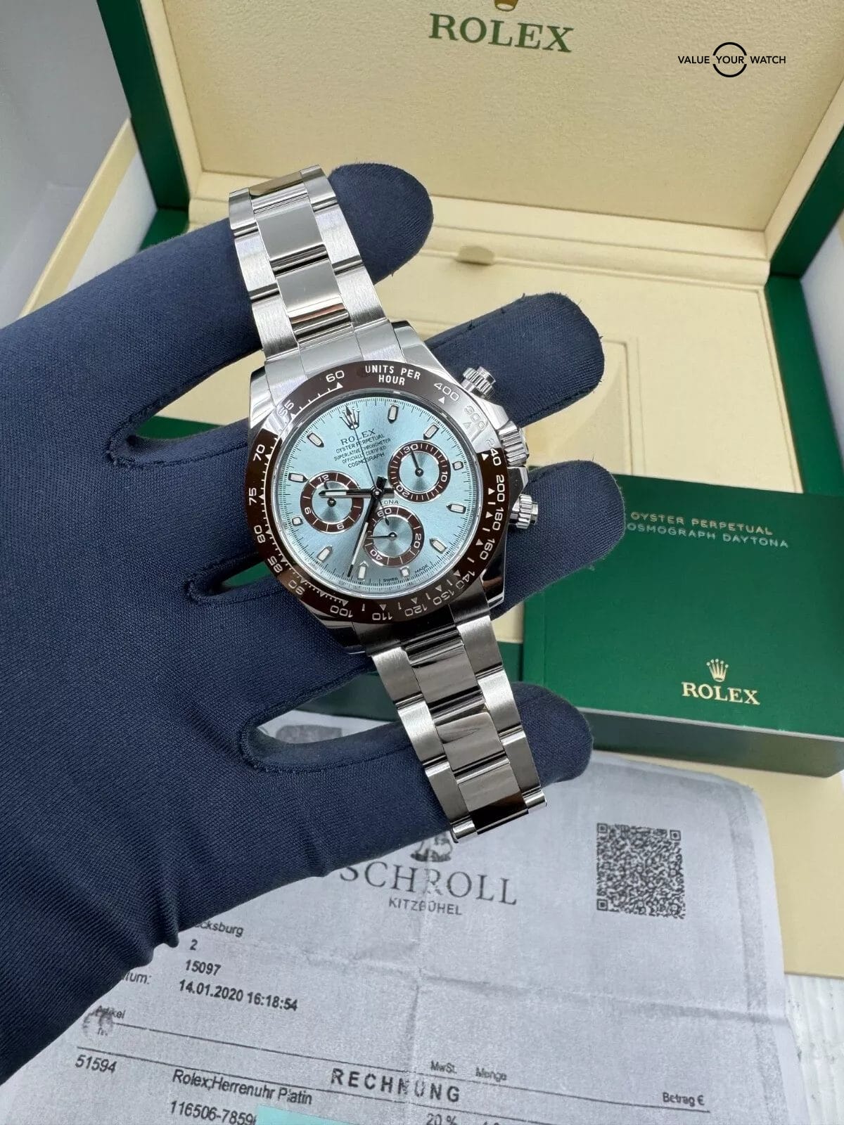 2020 MINT Platinum Ceramic Bezel Daytona XL Box Manuals 116506 Copy of Invoice
