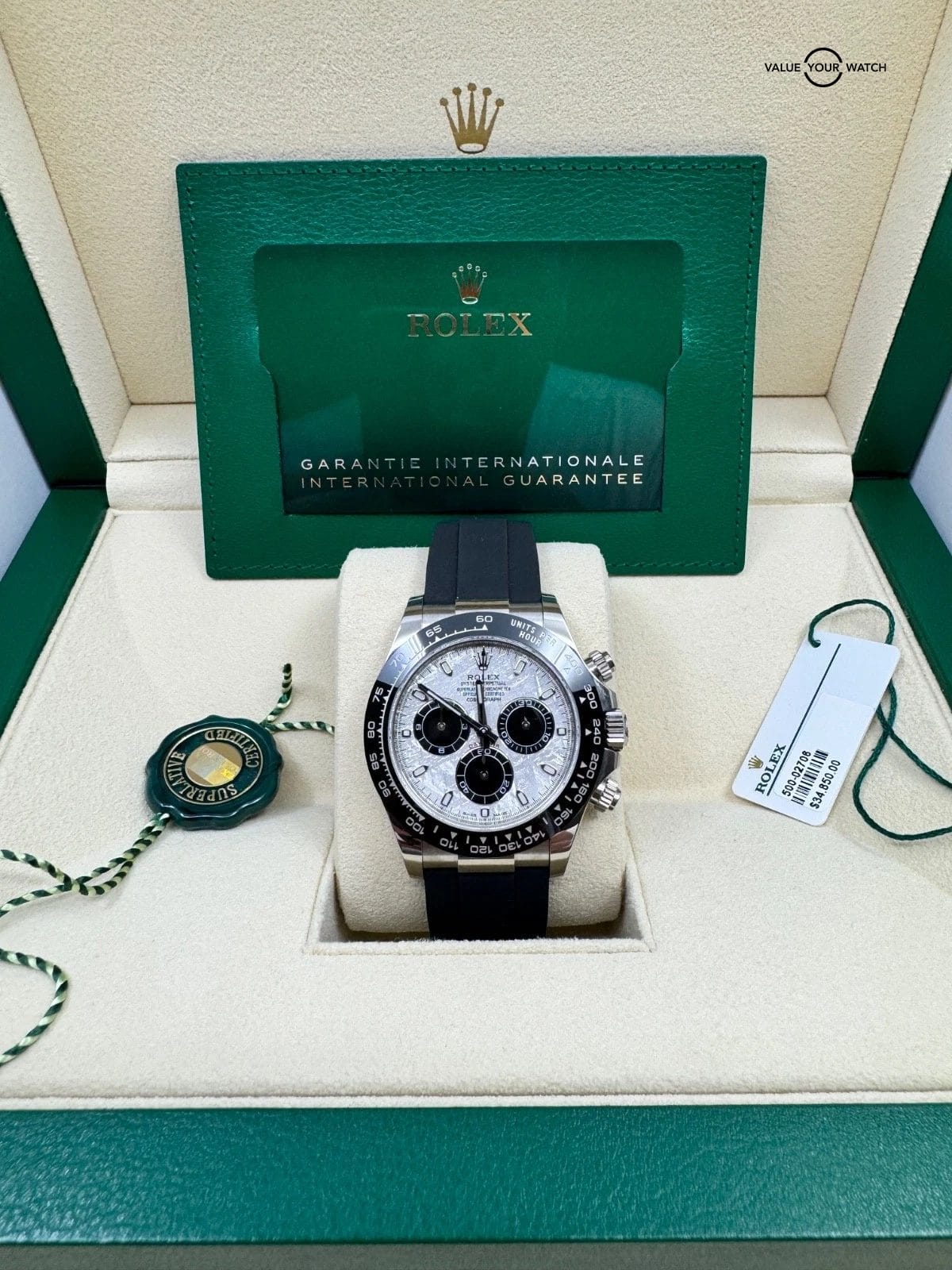 Specification: 2022 MINT METEORITE Oysterflex White Tag Daytona 18K White Gold Box and Papers