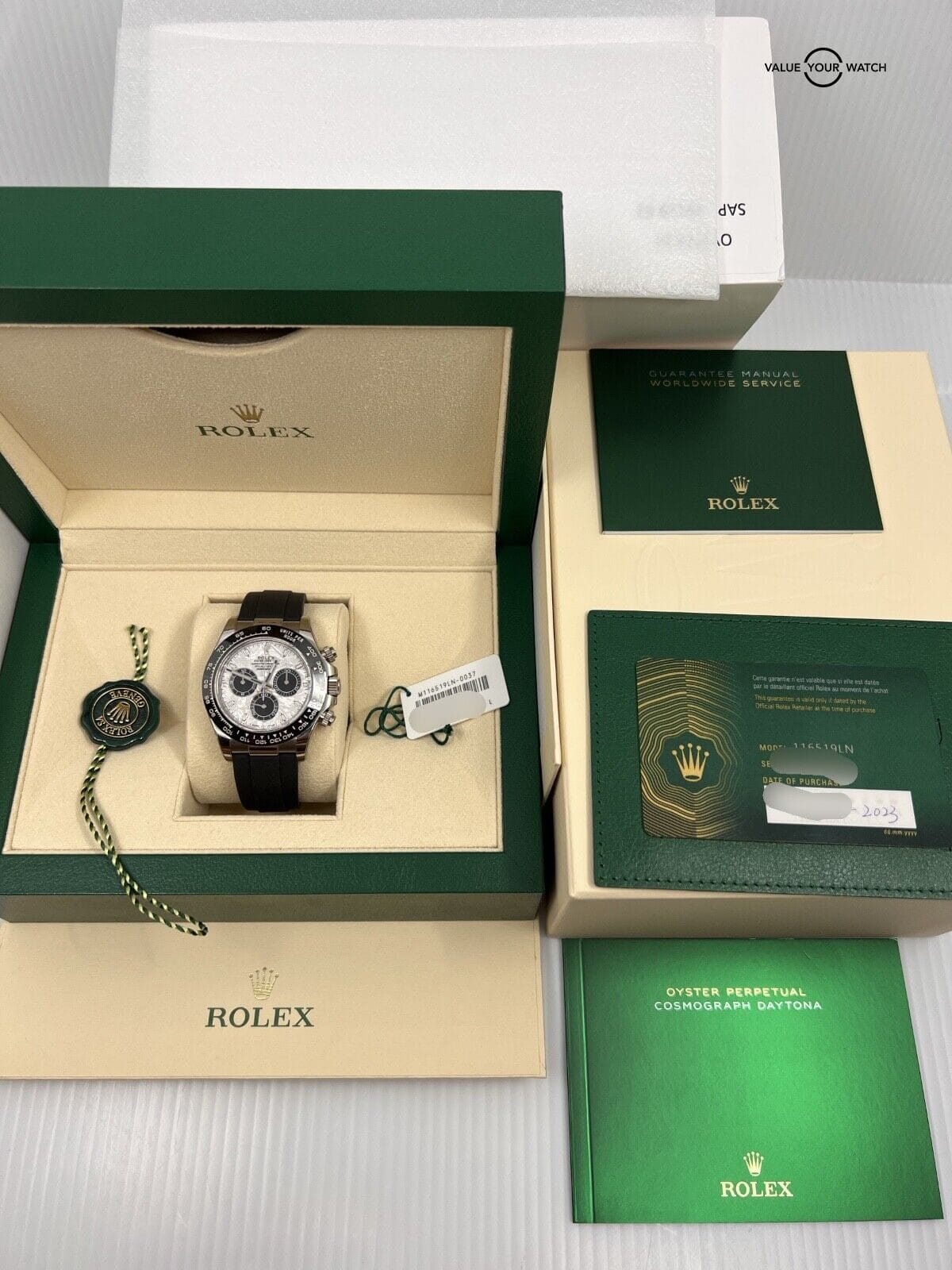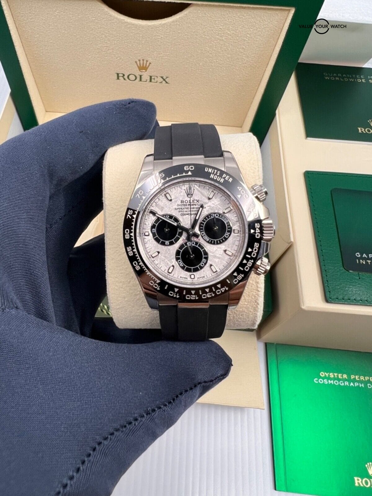 Guide to Buying and Selling 2023 New Unworn White Tag Stickers Meteorite Dial White Gold Oysterflex Daytona Online