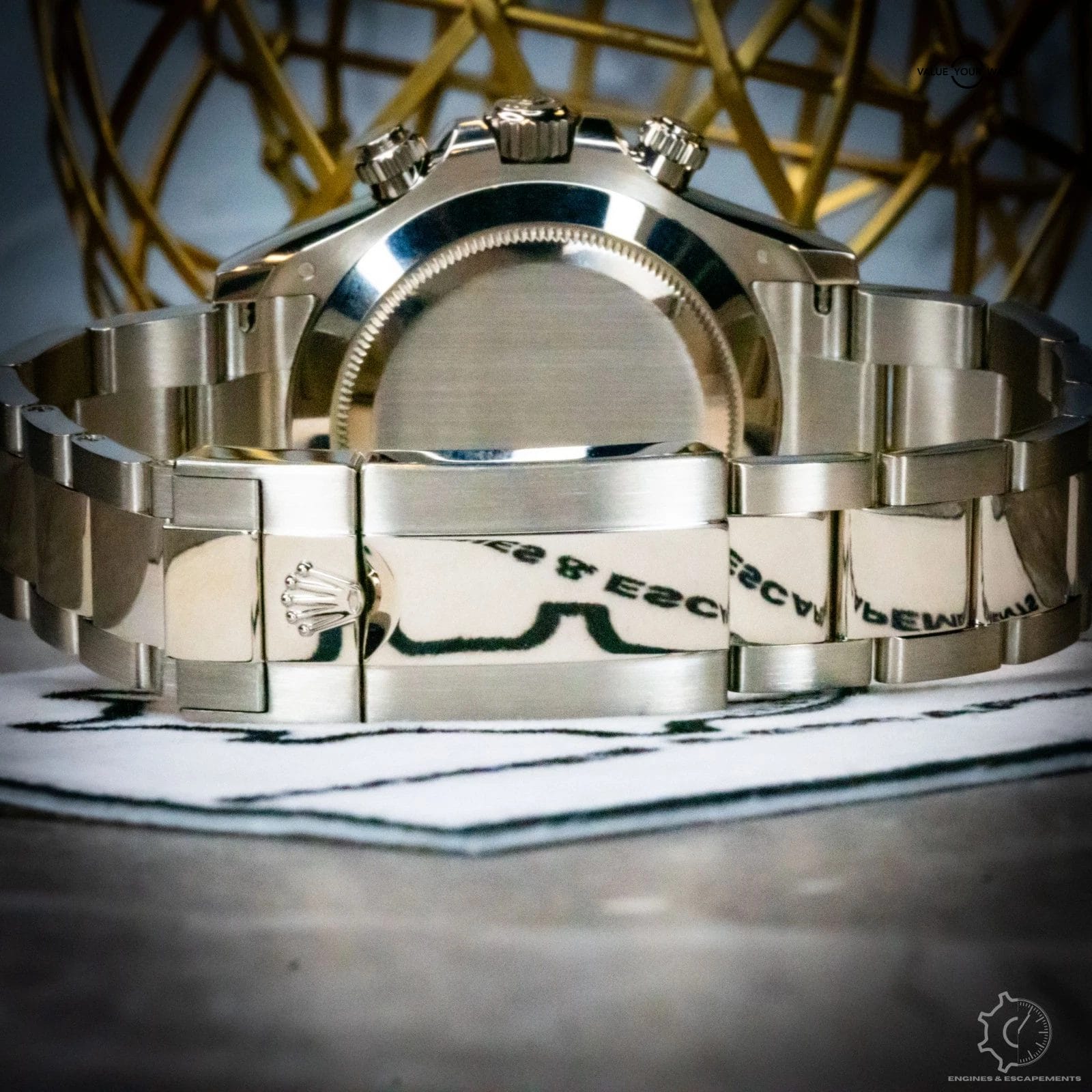 At its core is Rolex’s renowned automatic chronograph movement, built for precision and endurance, whether on the track or in daily wear. The white gold Oyster bracelet enhances its luxurious feel while ensuring lasting comfort and durability.