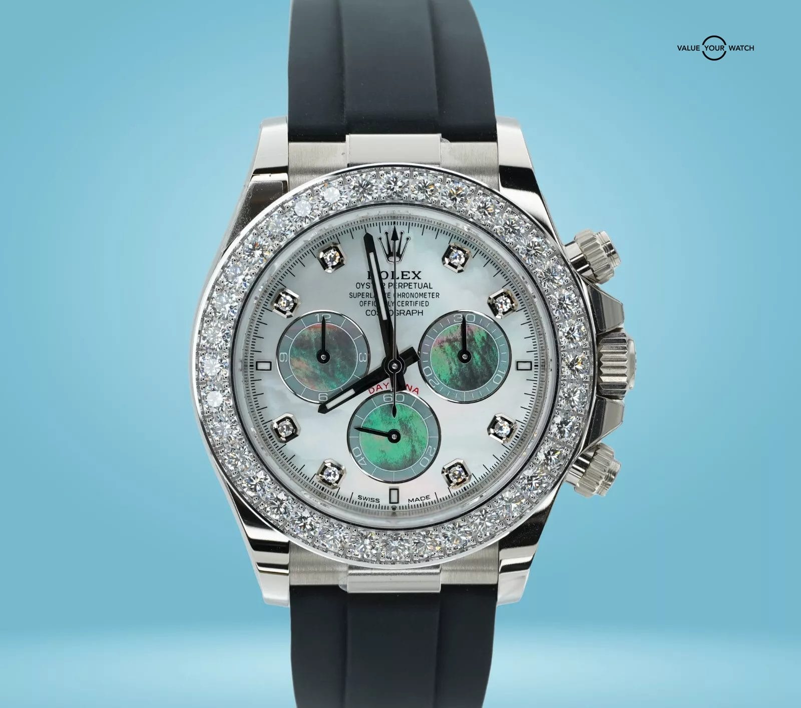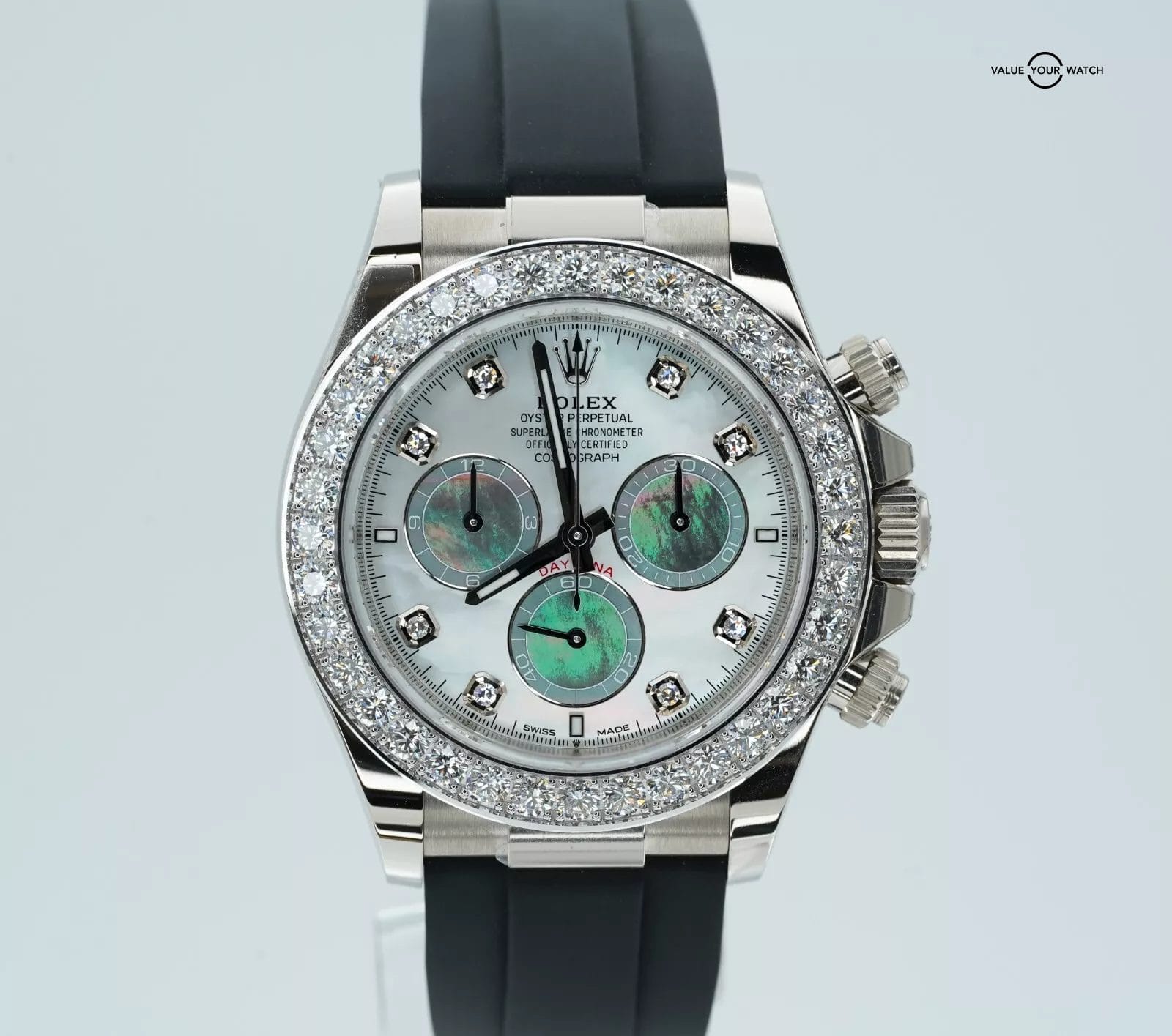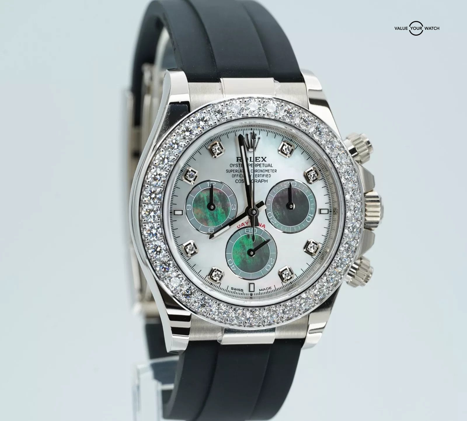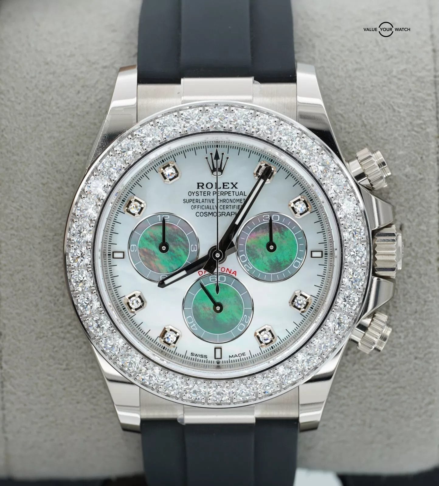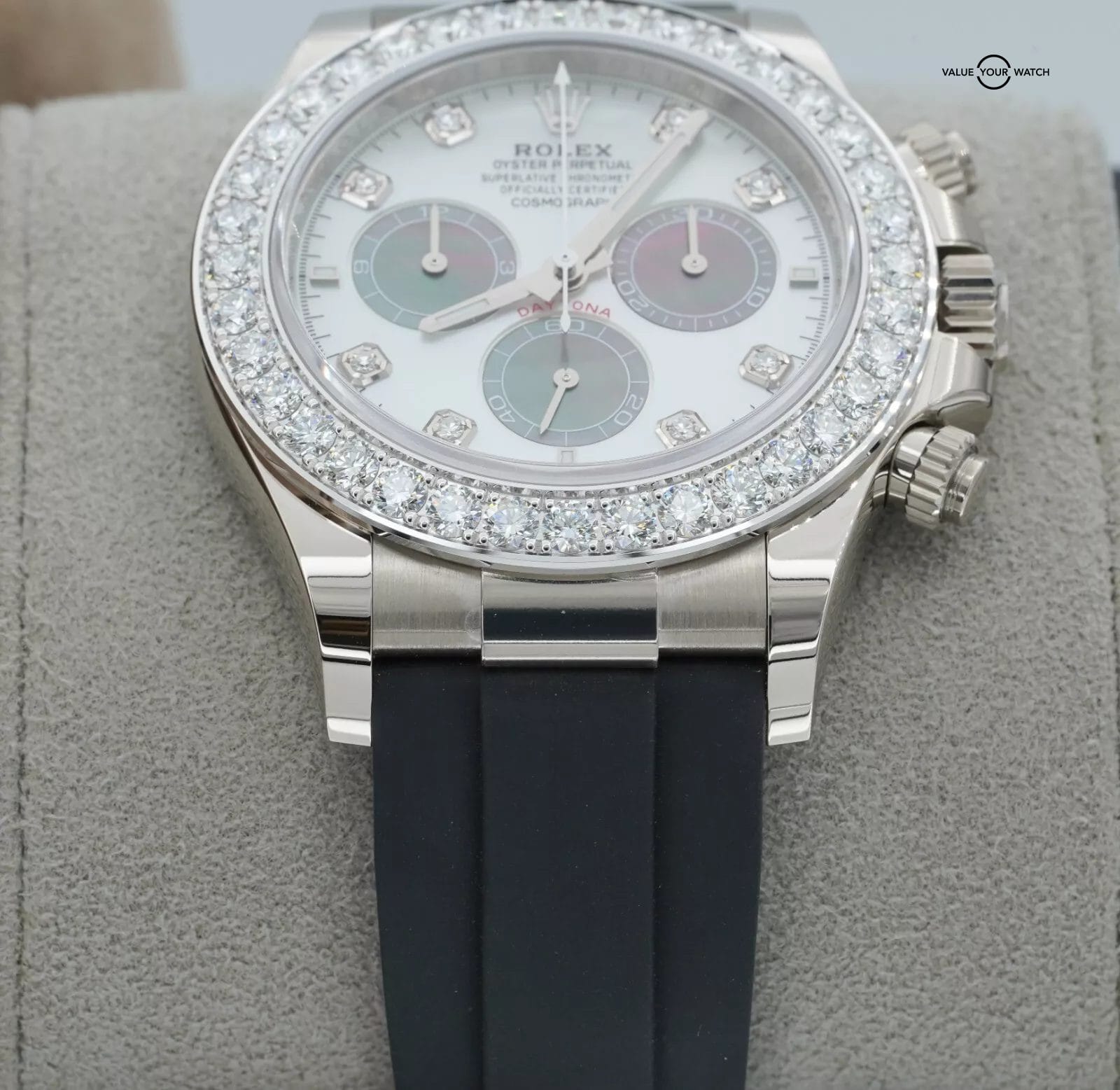 Specification: Rolex Daytona 126589RBR 18K White Gold Mother of Pearl Dial Diamond Bezel B/P!
