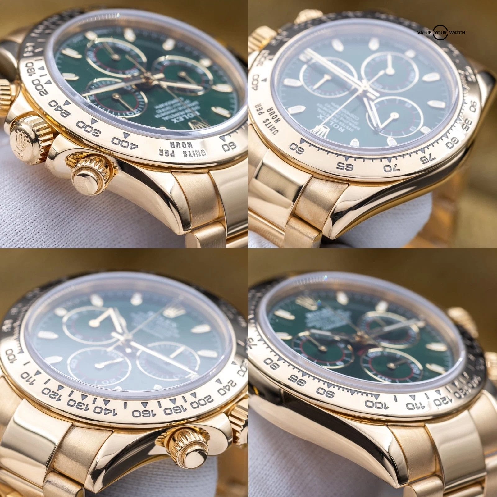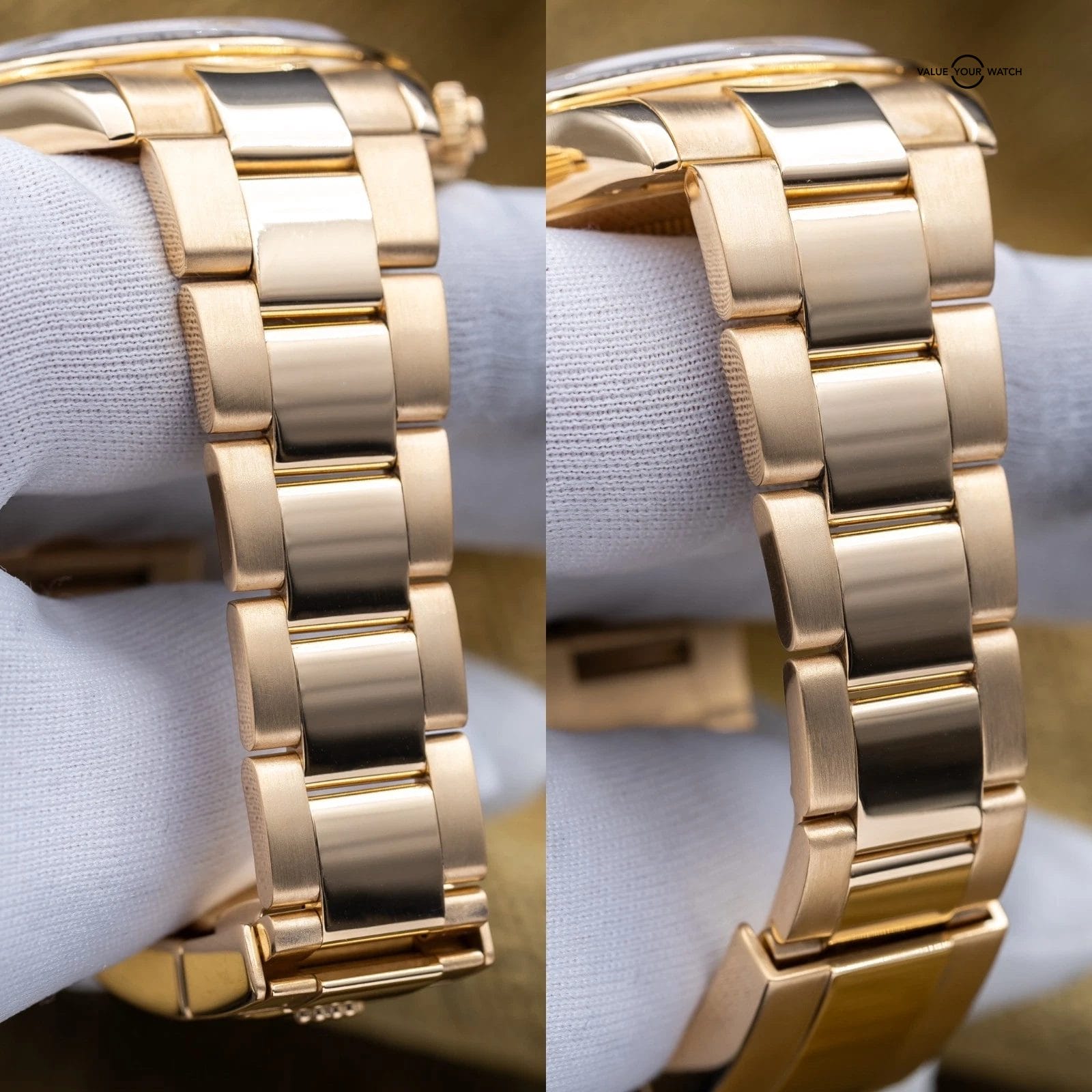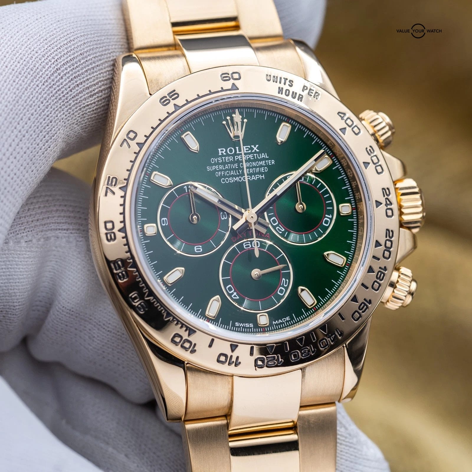 No introduction needed on this one – the “John Mayer”. Crafted entirely in 18kt yellow gold with the rich, sunburst green dial. This one is stunning in the flesh. It still packs the classic Daytona chronograph features – sub-dials, tachymeter bezel and 40 mm case size. Whether you’re dressing up or just going casual, this watch works for any occasion and is a real head-turner. It’s a must-have for any collector!