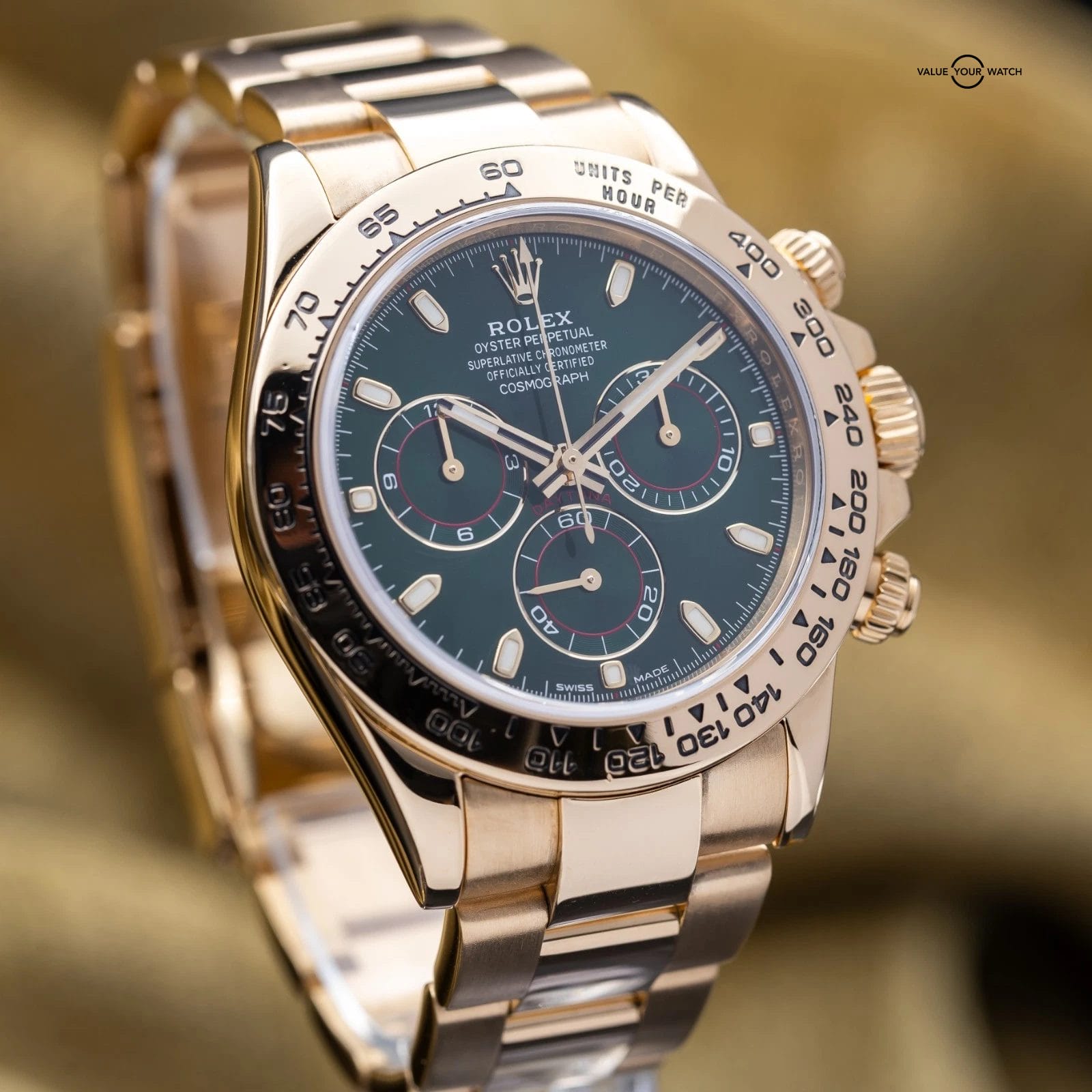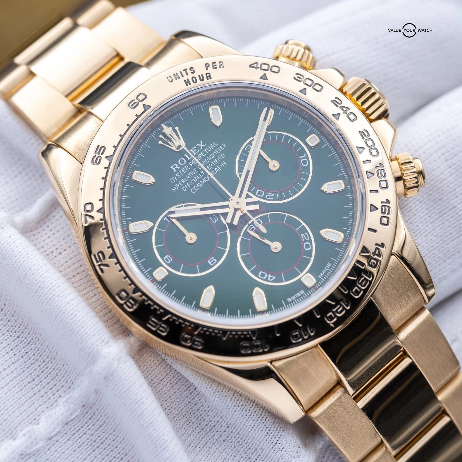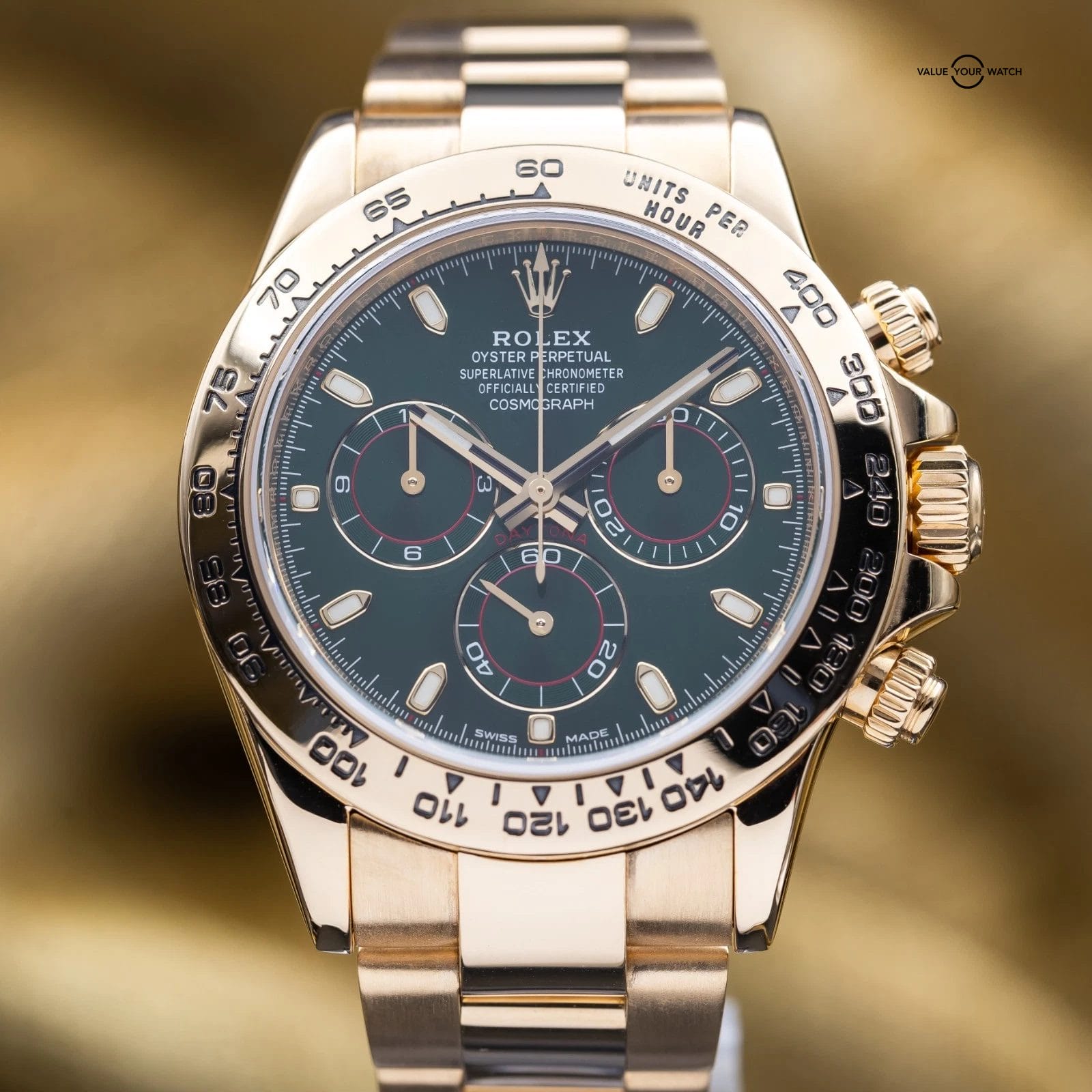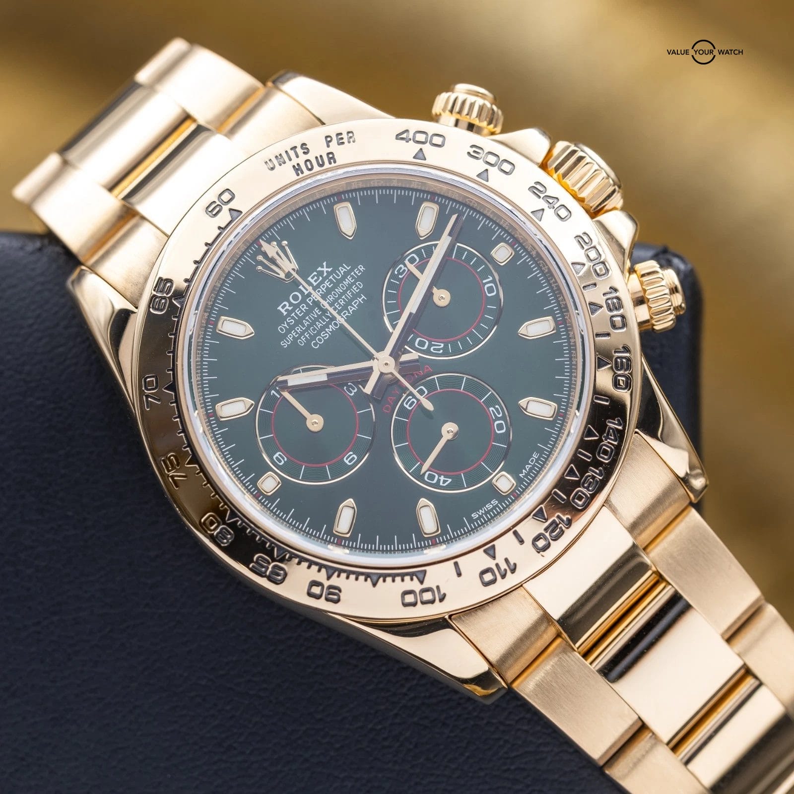 No introduction needed on this one – the “John Mayer”. Crafted entirely in 18kt yellow gold with the rich, sunburst green dial. This one is stunning in the flesh. It still packs the classic Daytona chronograph features – sub-dials, tachymeter bezel and 40 mm case size. Whether you’re dressing up or just going casual, this watch works for any occasion and is a real head-turner. It’s a must-have for any collector!