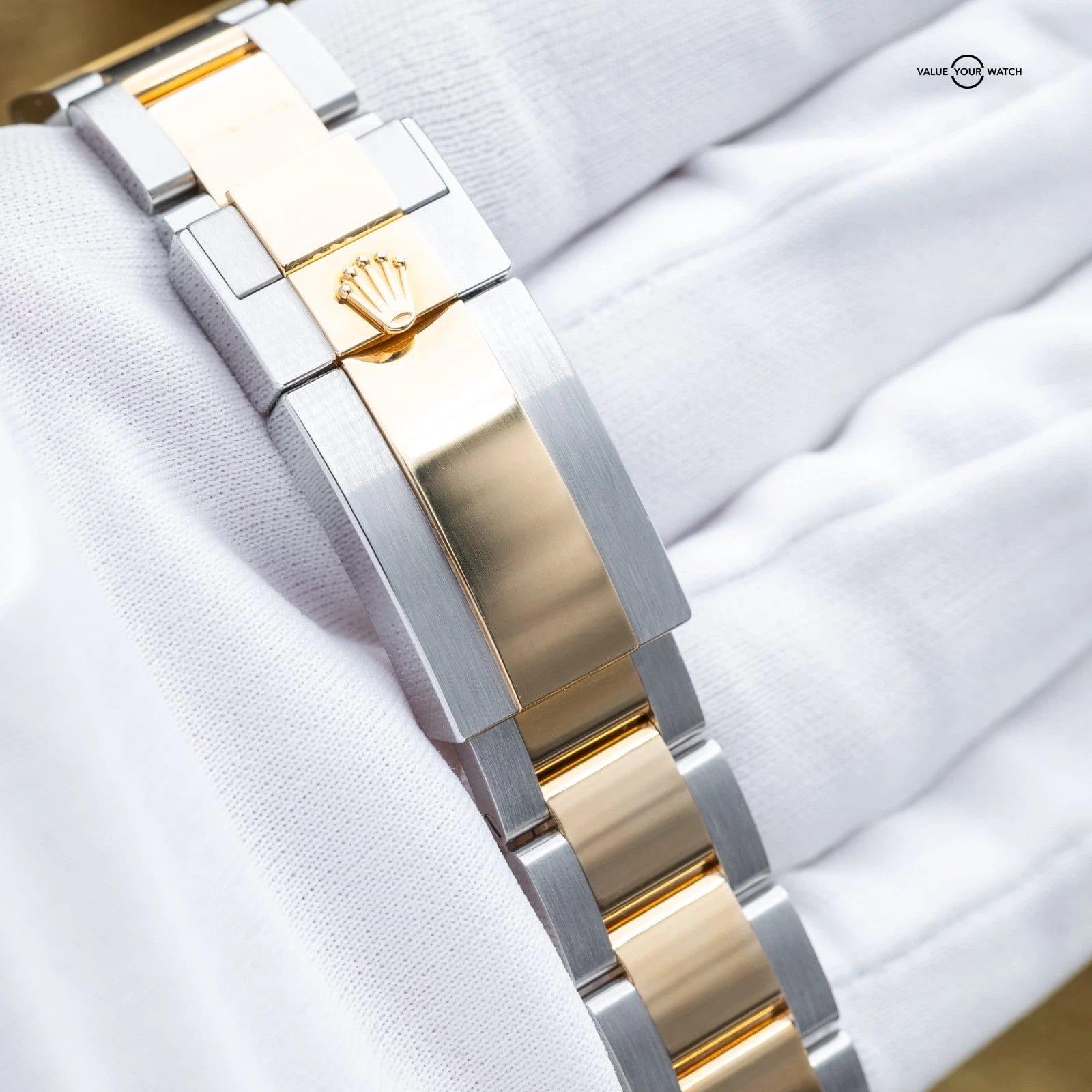 The only word needed here is Daytona. On many people’s grail list, yet only a select few will actually own it. This is the stunning two-tone model with the classic black dial, sub-dials and diamond indices that are guaranteed to turn heads. It seamlessly combines sporty elegance with a touch of luxury. Whether you’re dressing up or just going casual, this watch works for any occasion. It’s a must-have for any collector!