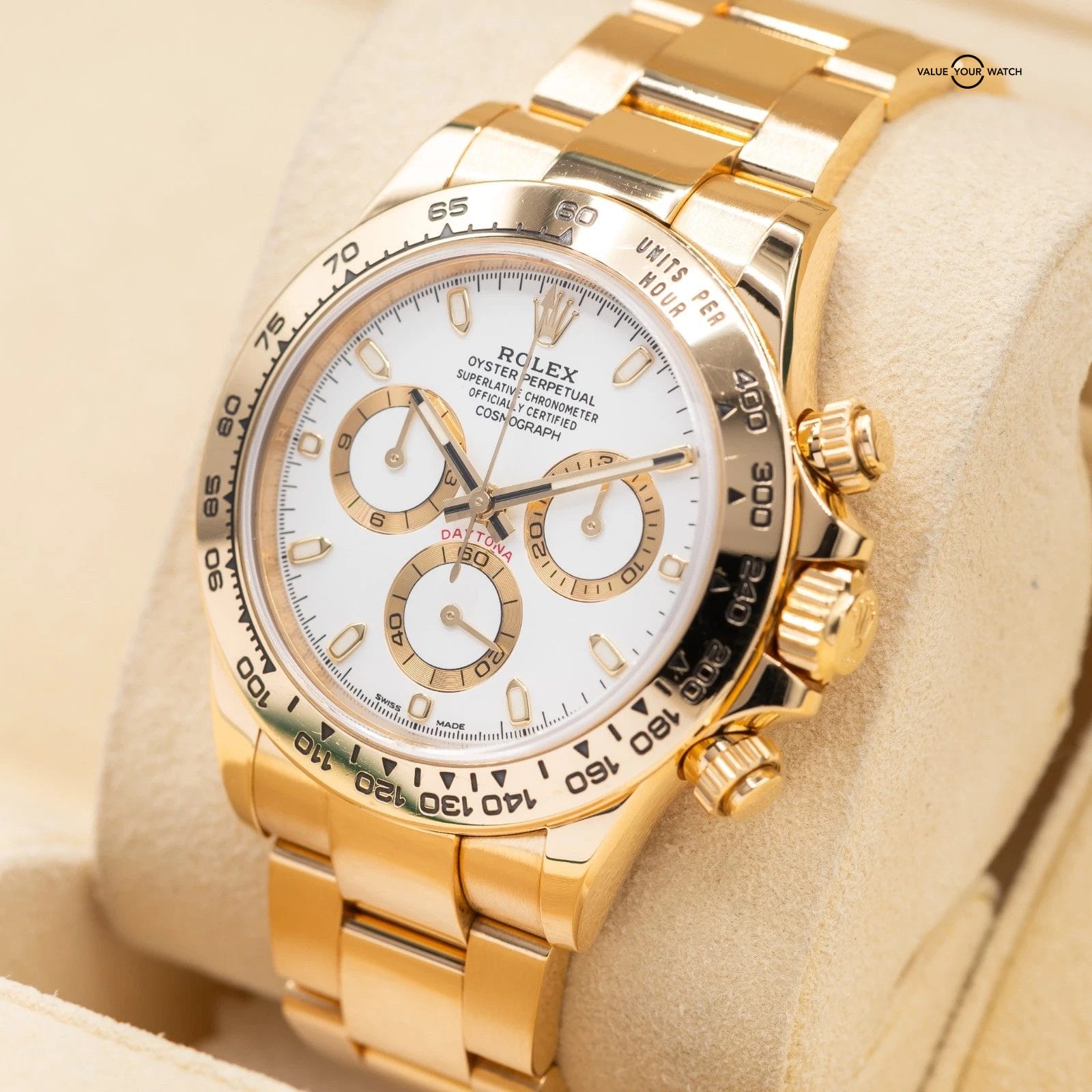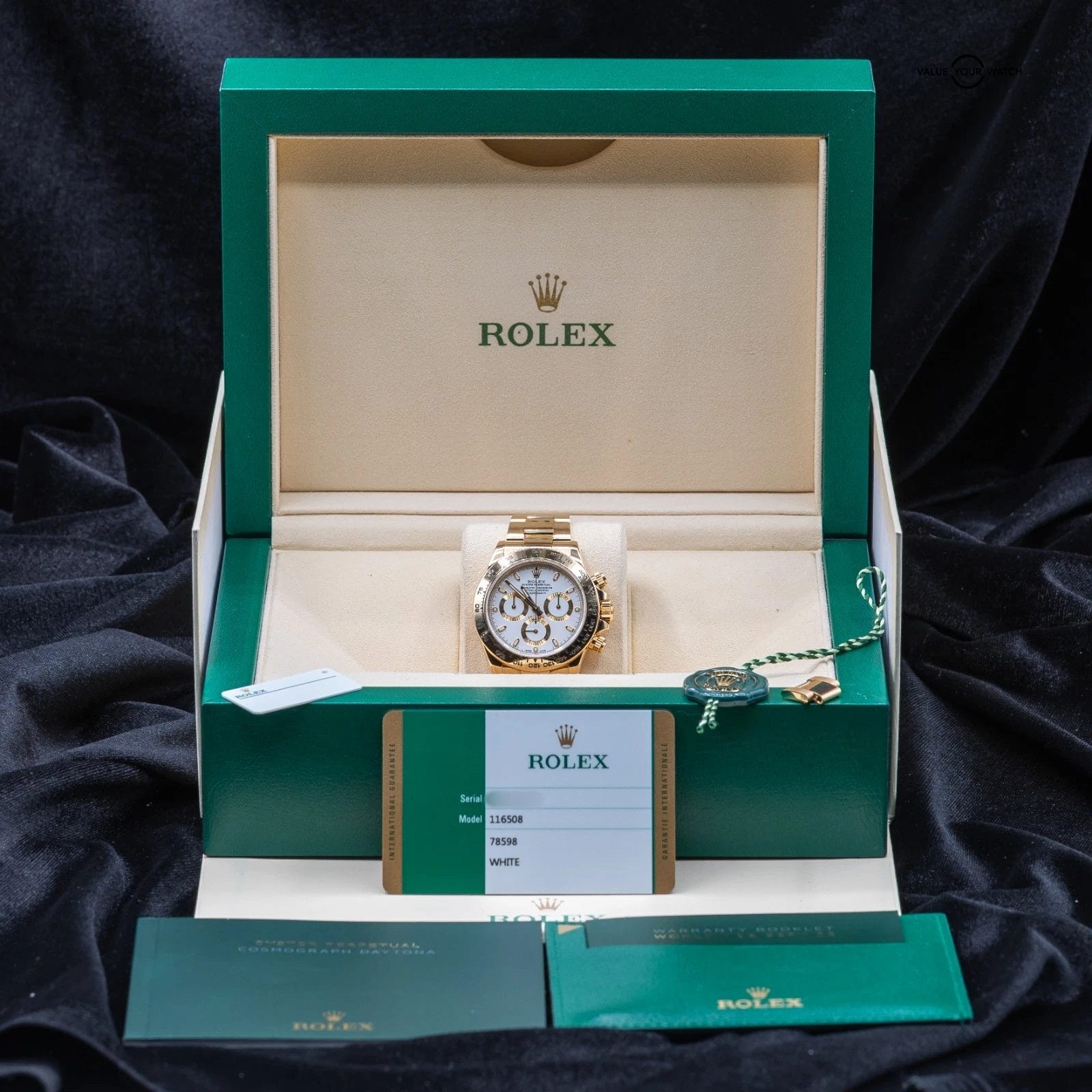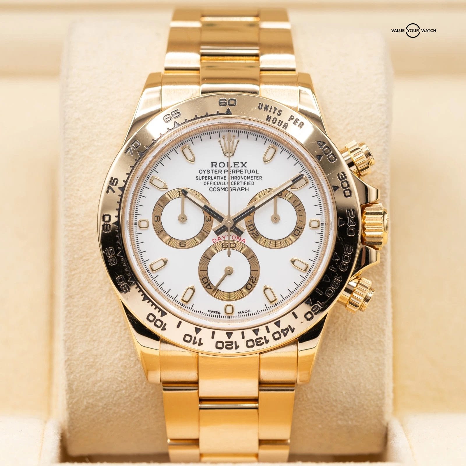 Specification: Rolex Daytona in Yellow Gold, white dial 2017 full set! Ref. 116508