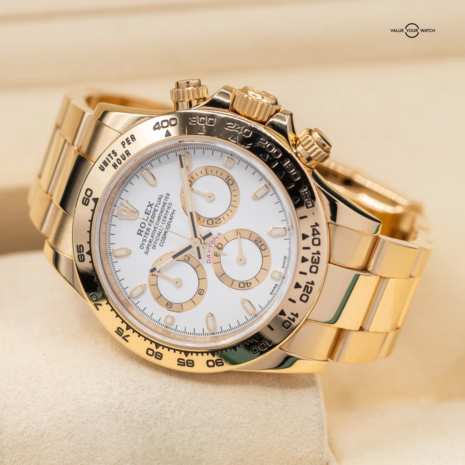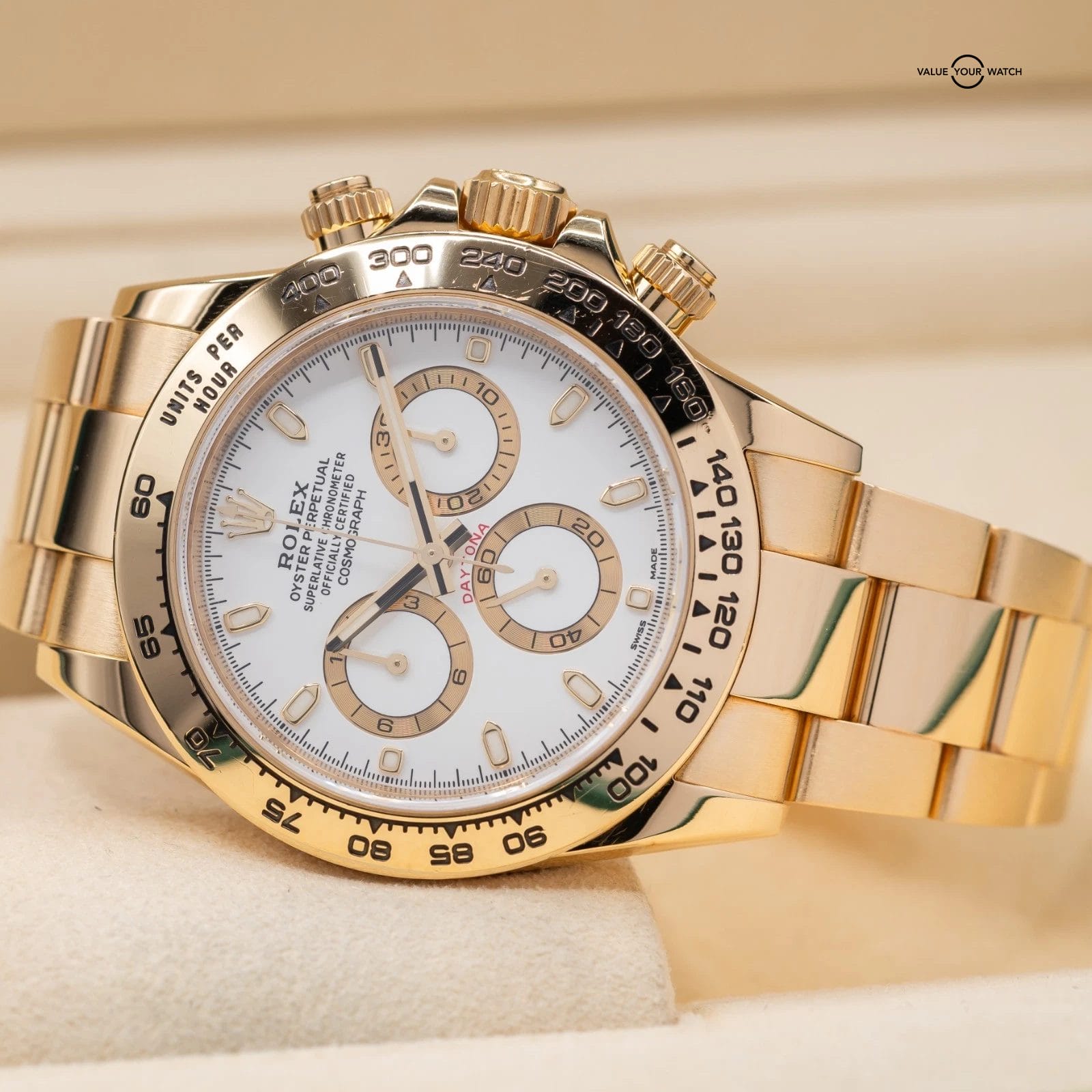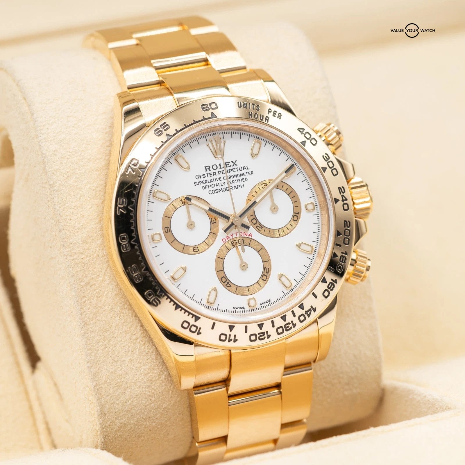 Specification: Rolex Daytona in Yellow Gold, white dial 2017 full set! Ref. 116508