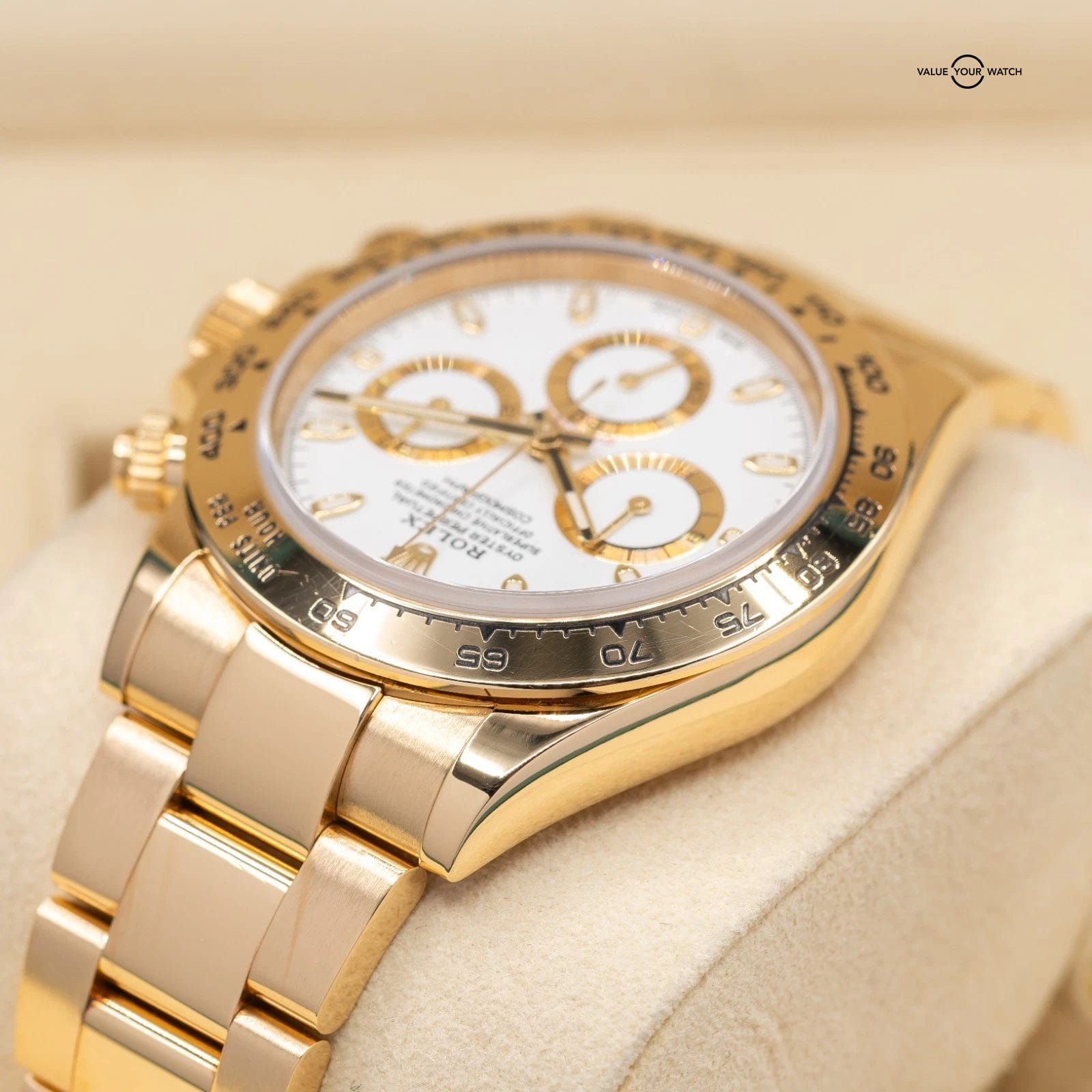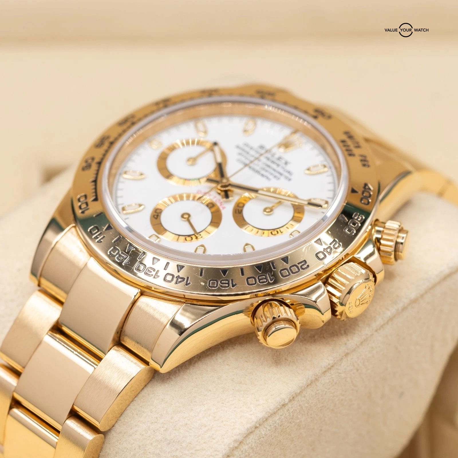 While there are a lot of combinations of the Daytona available, full yellow gold with the white dial is a nice, simple combo.
