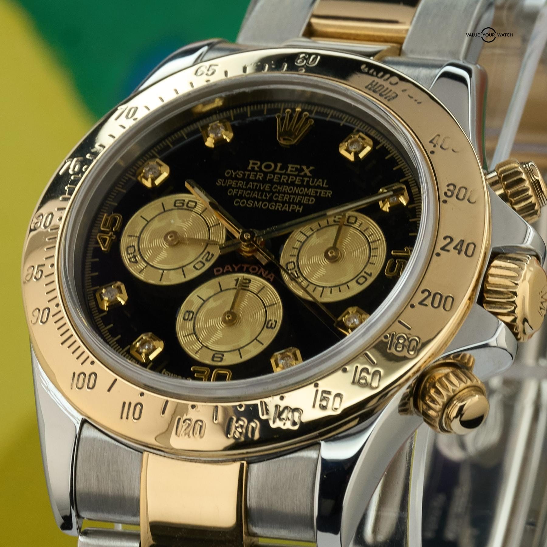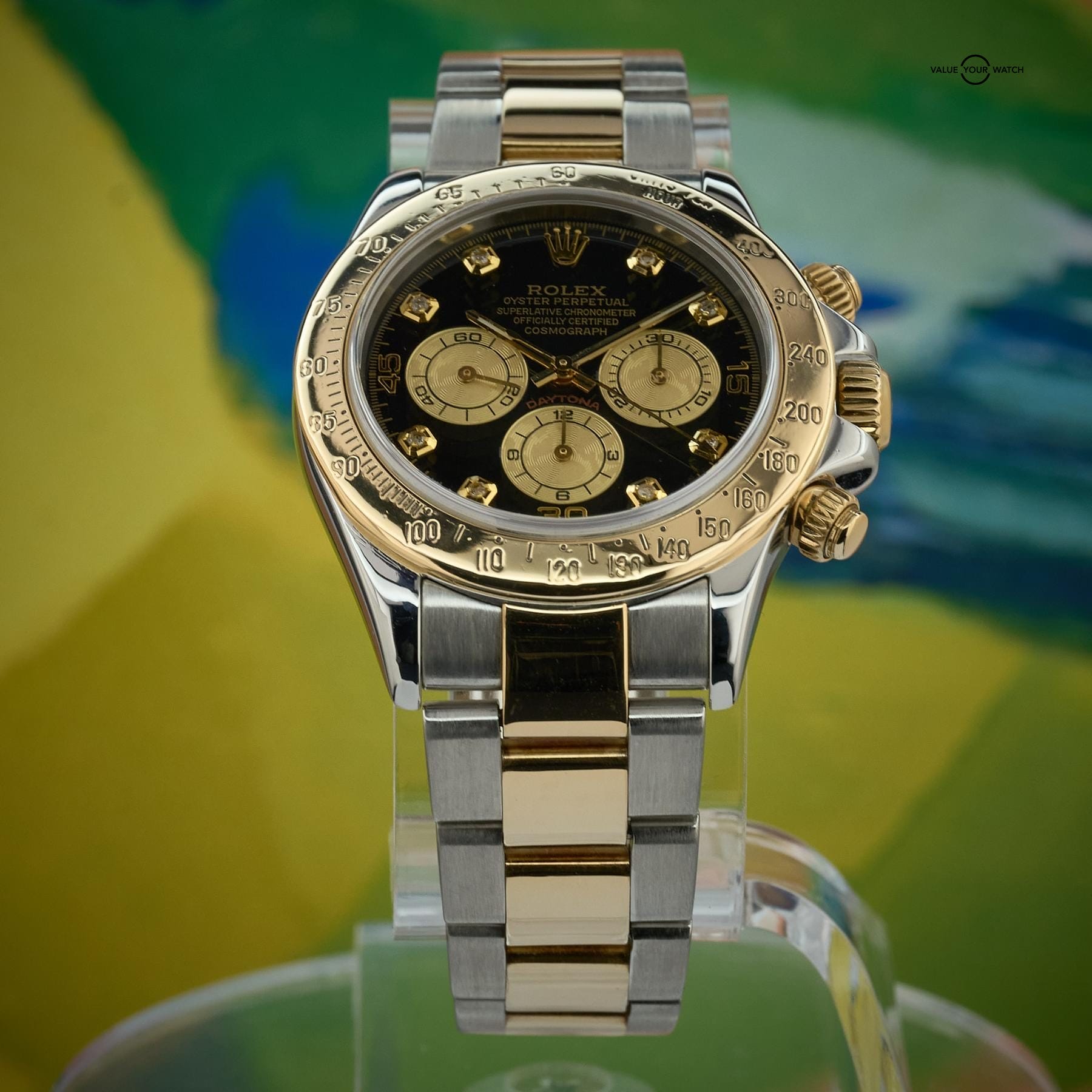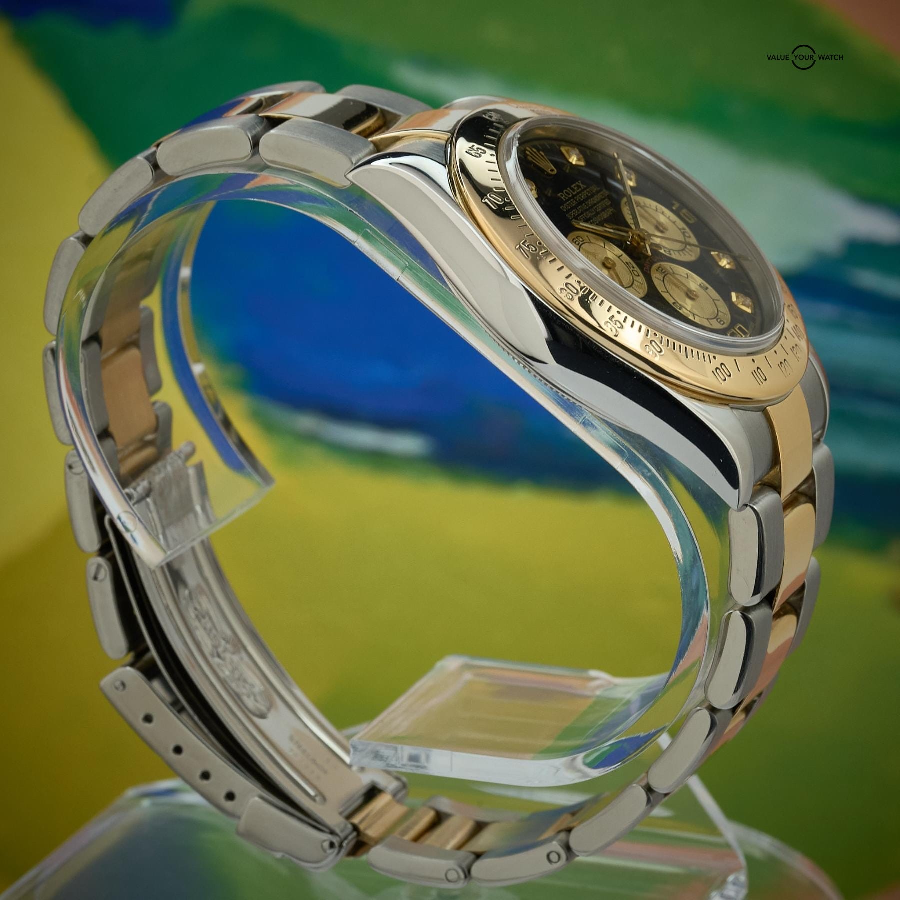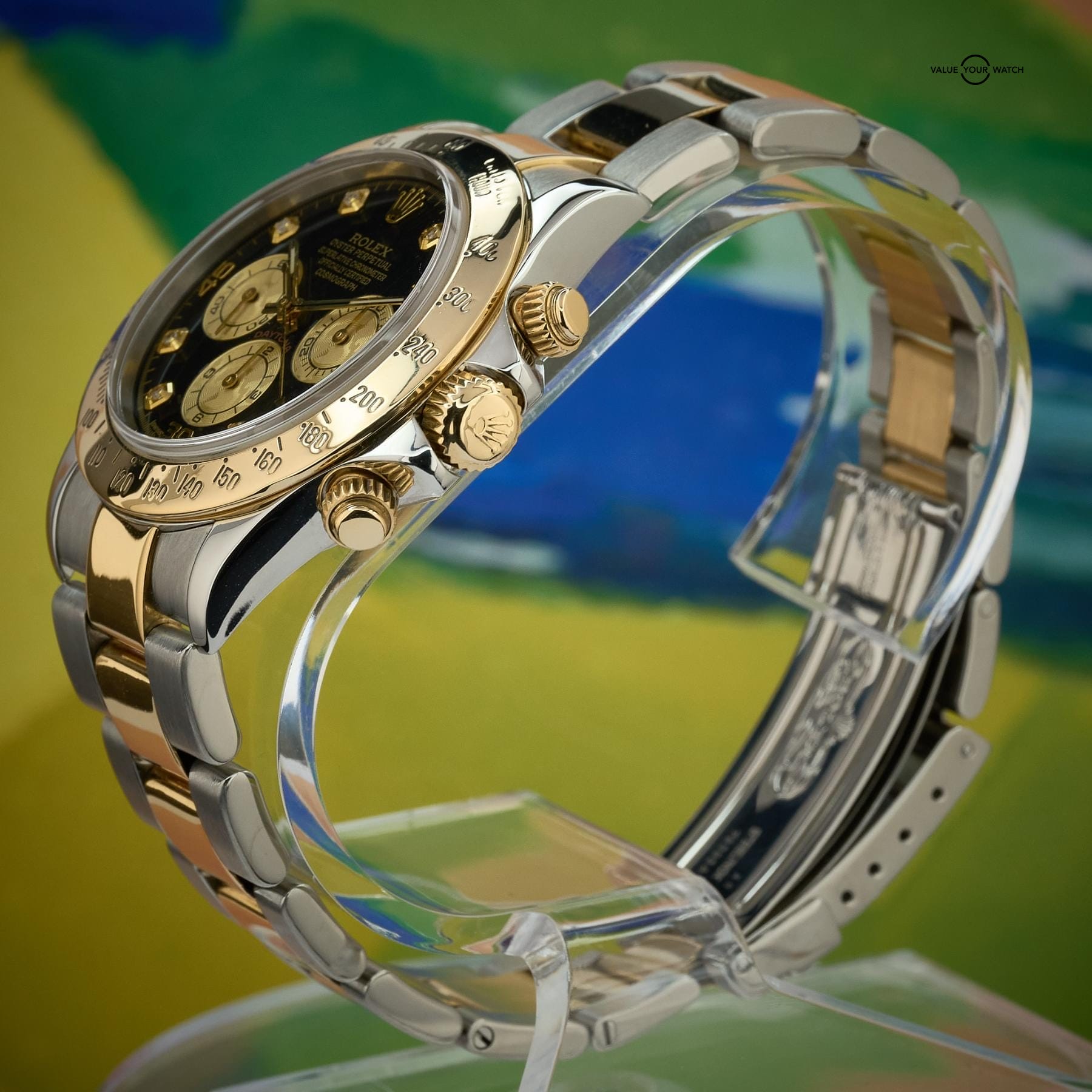 Rolex Daytona Zenith 40mm Steel & Gold Black Diamond Dial 16523