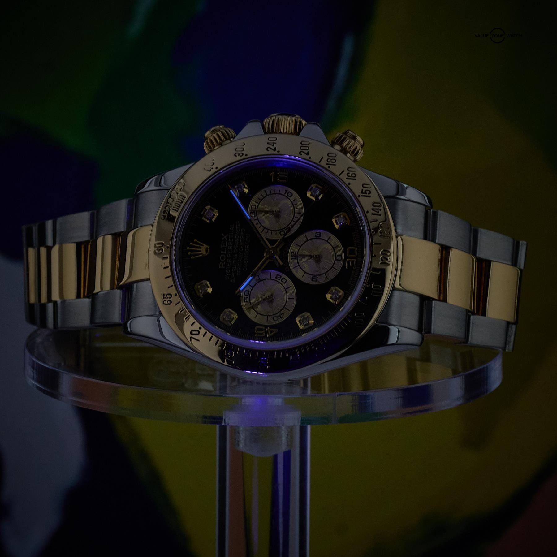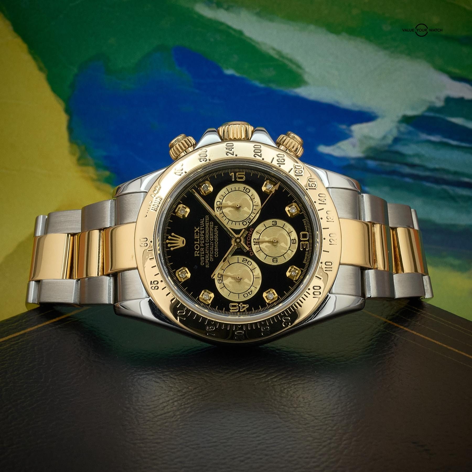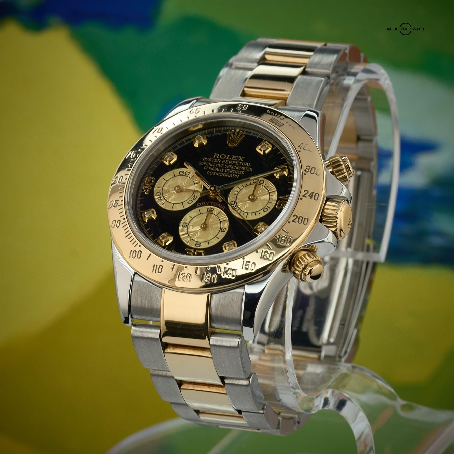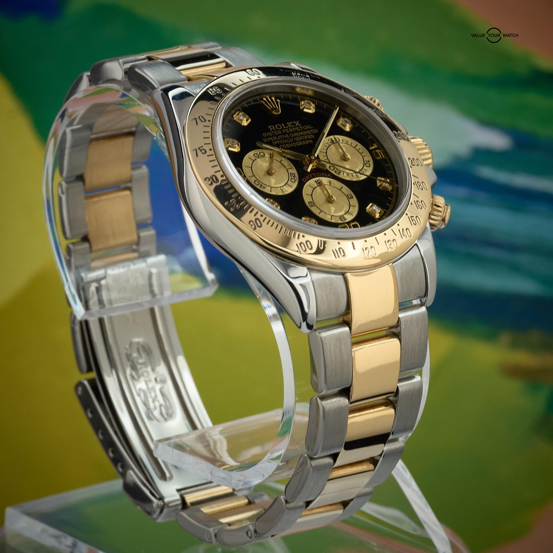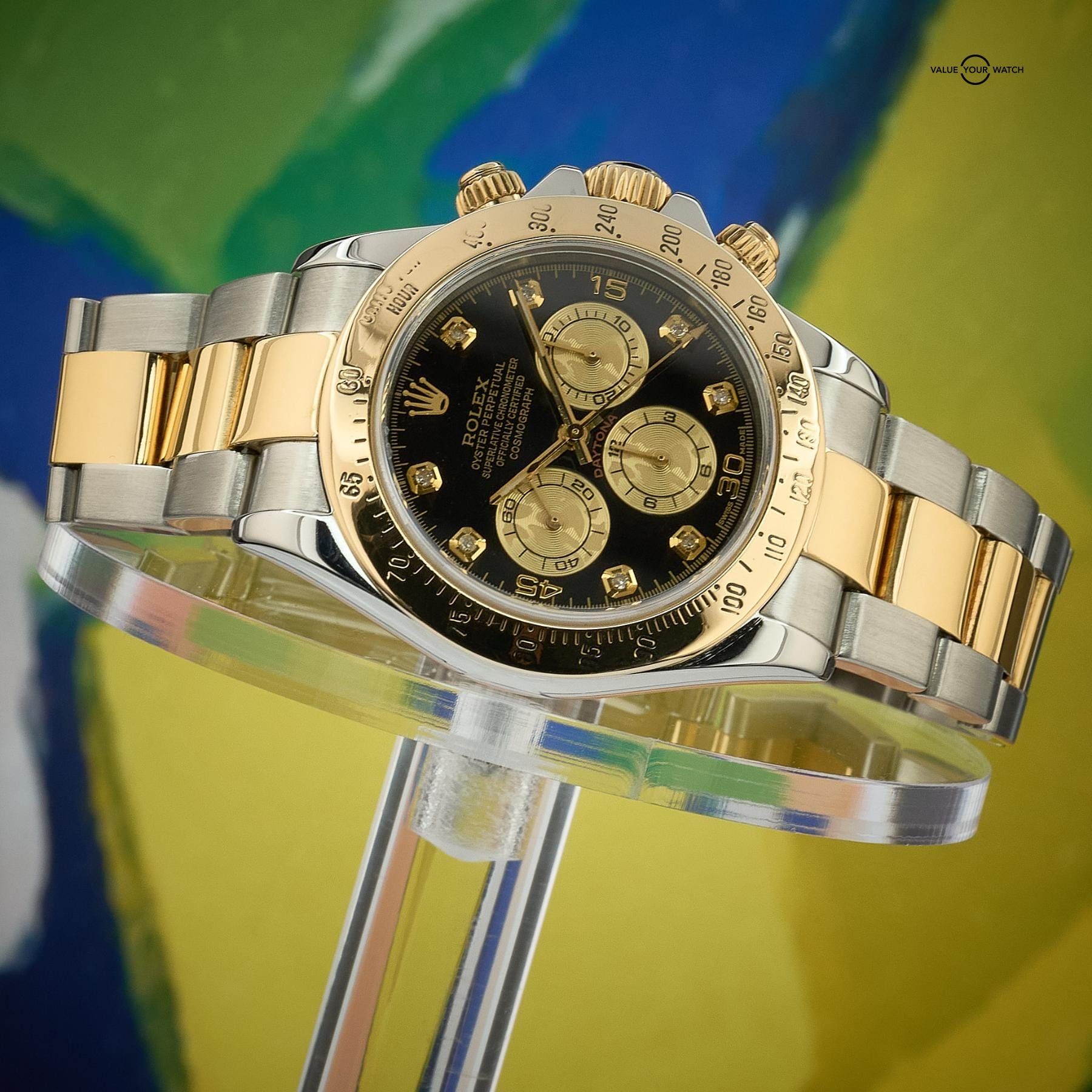 Rolex Daytona Zenith 40mm Steel & Gold Black Diamond Dial 16523