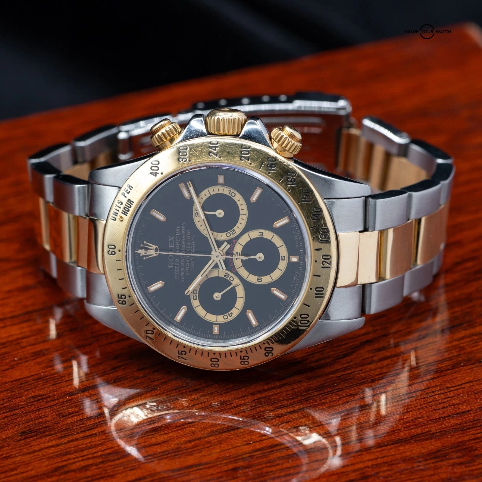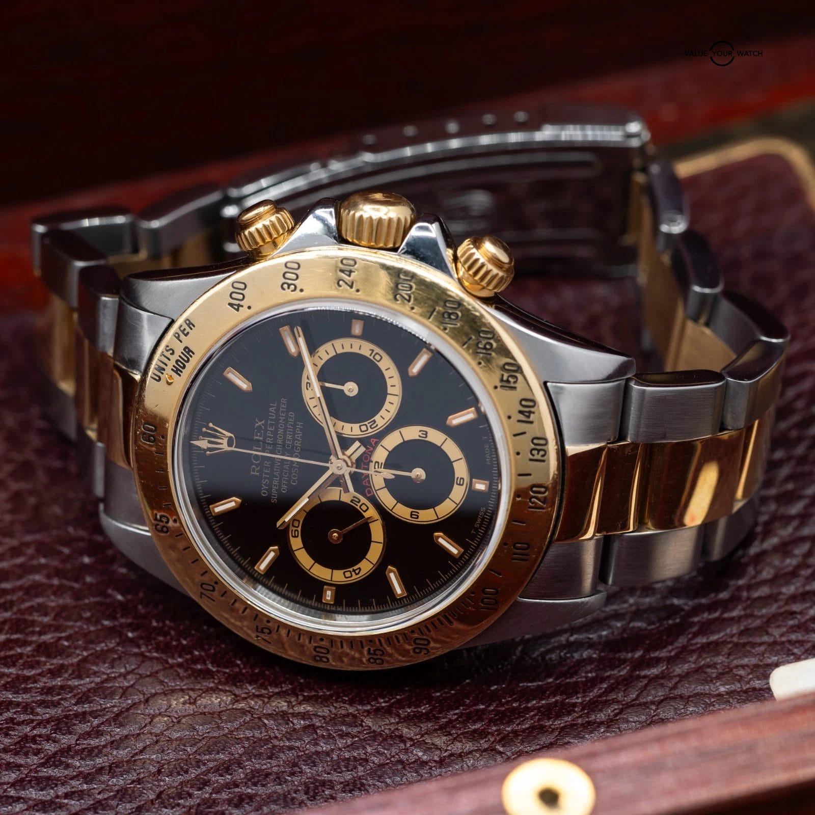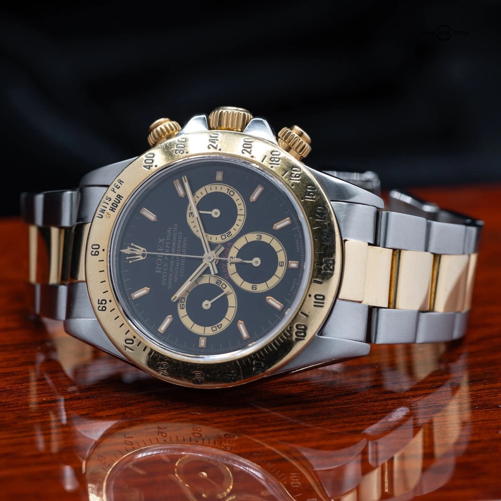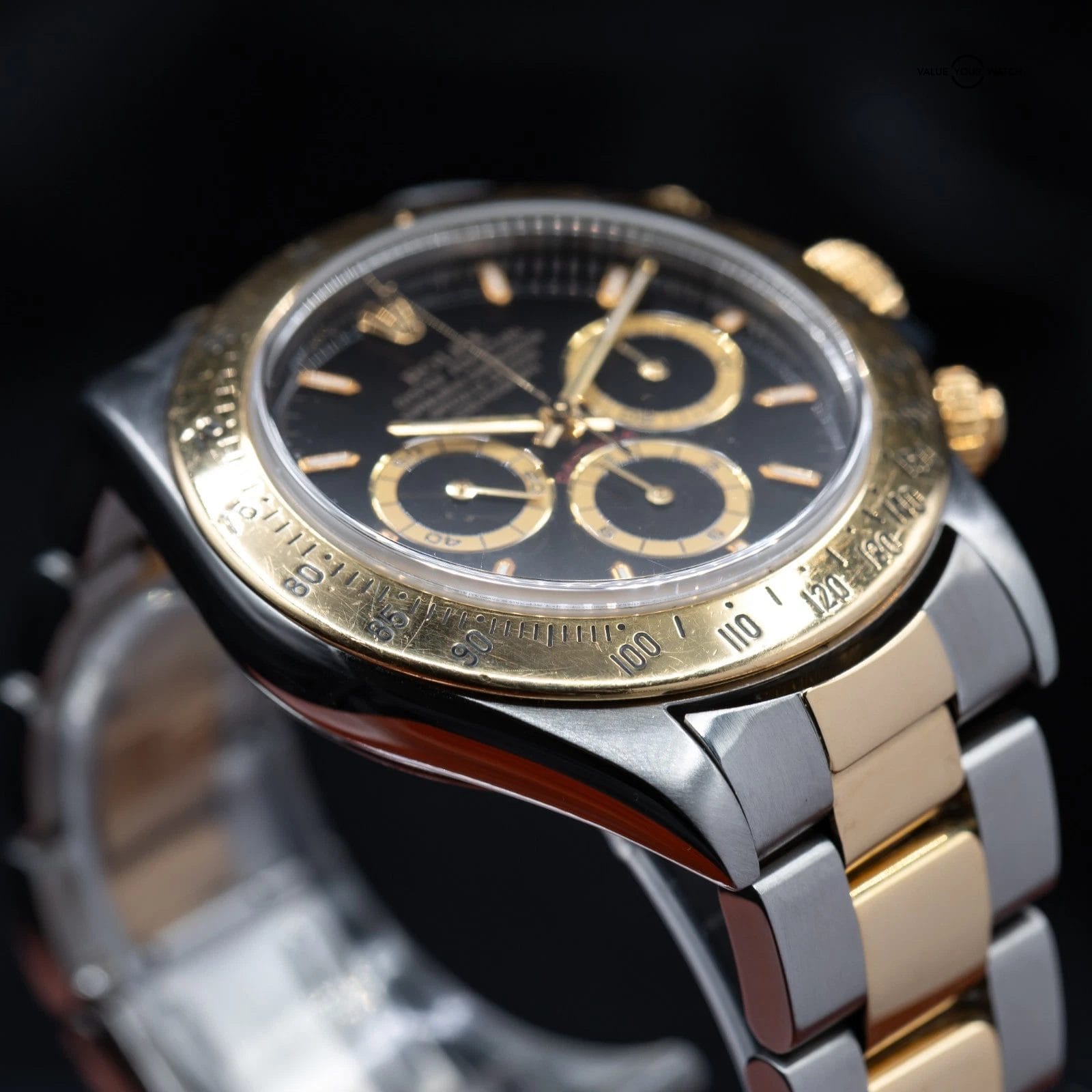 Up for sale here is the lowest entry into the Daytona market. This is the Zenith era Daytona- back when Rolex used to buy the El Primero base movements and use them in the Daytona! Ref. 16523.
