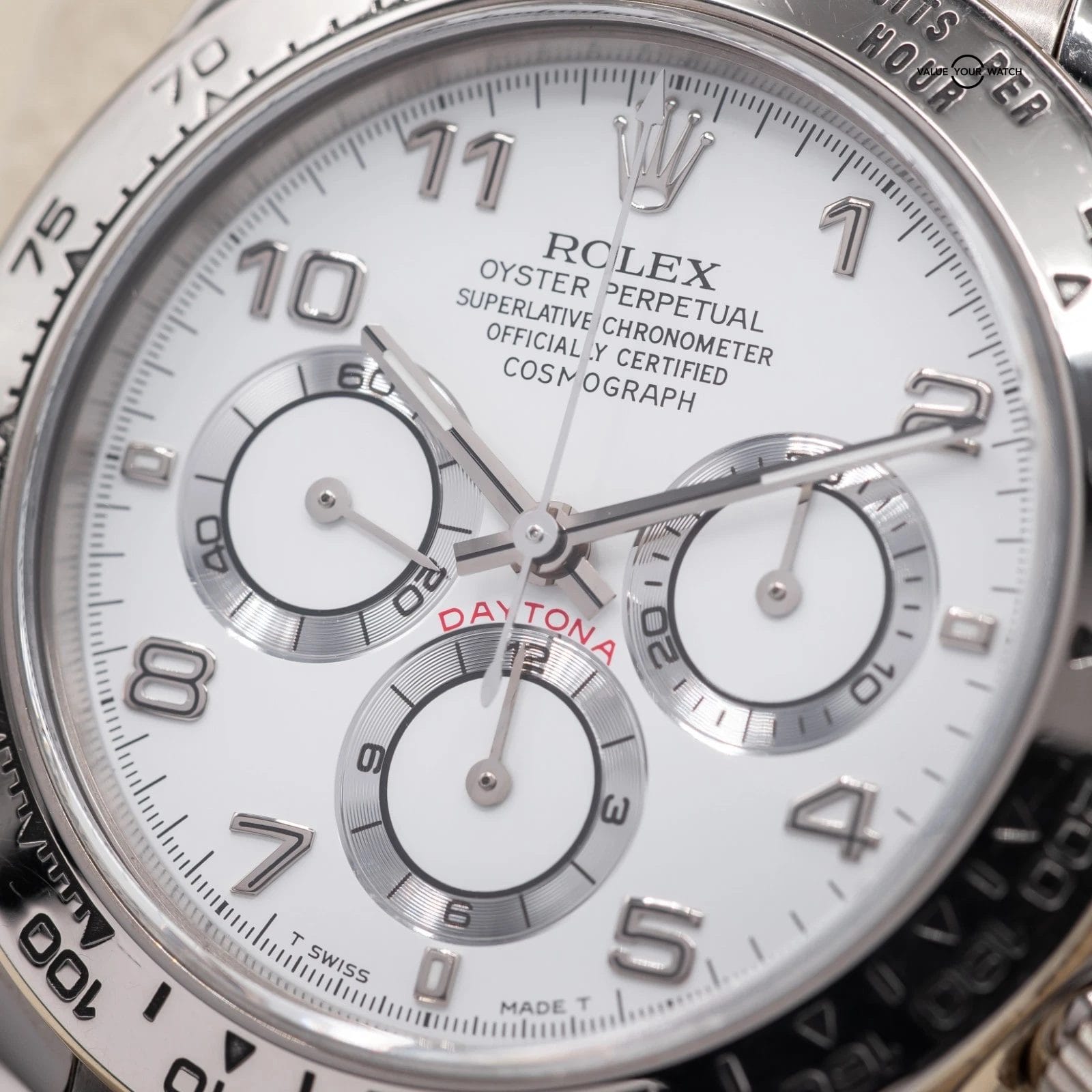 Specification: Rolex Daytona Zenith-era, white dial in solid 18k white gold! Ref. 16519