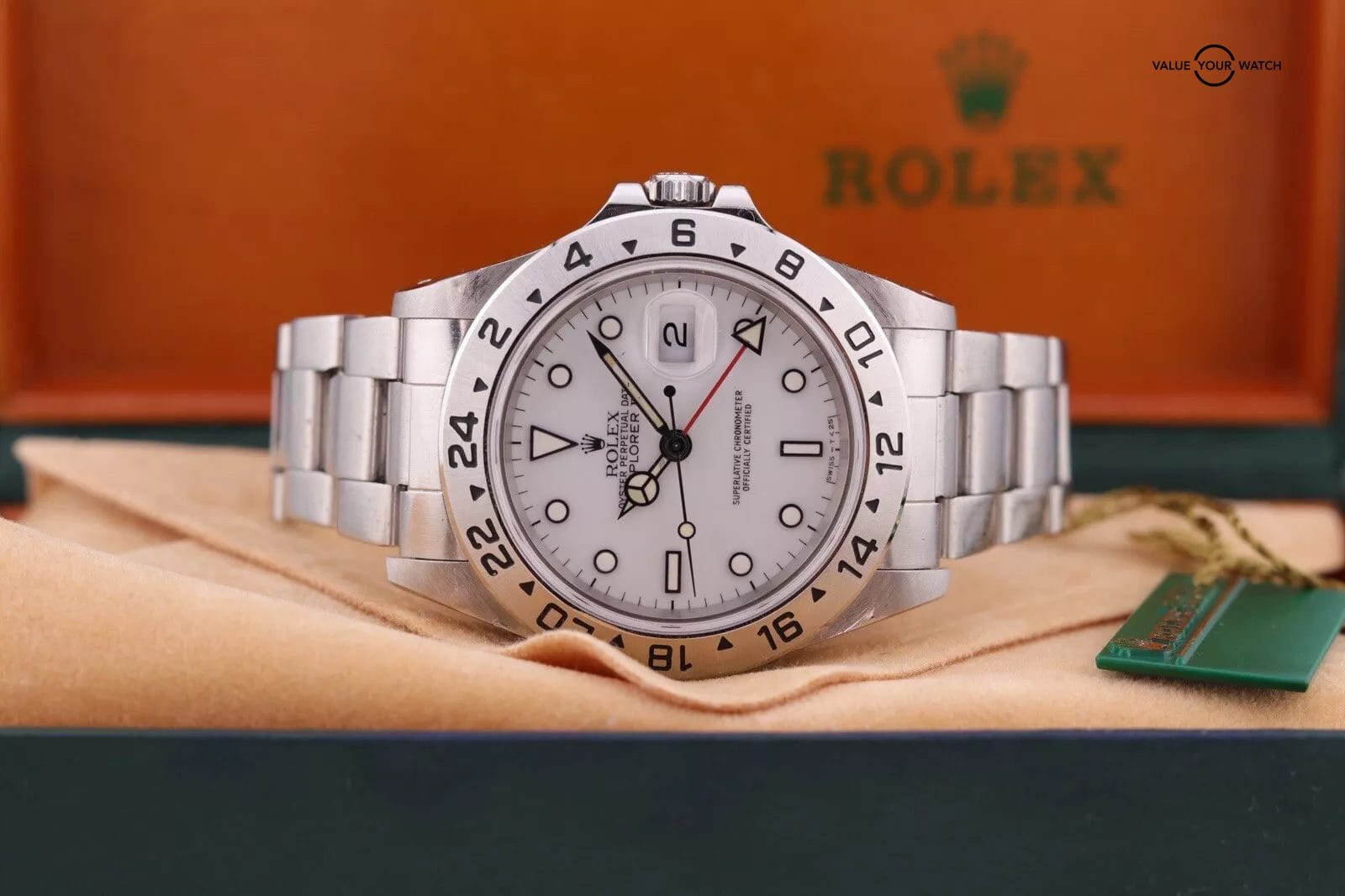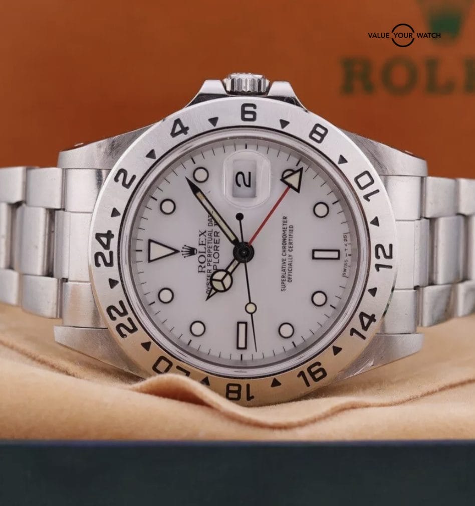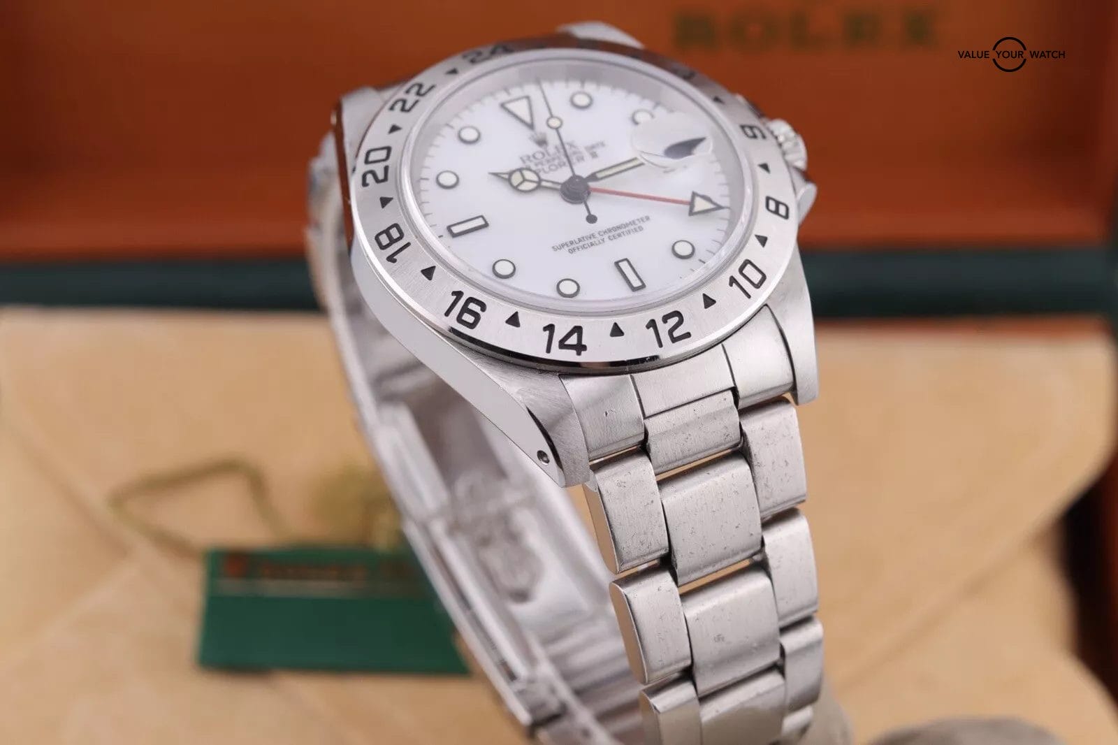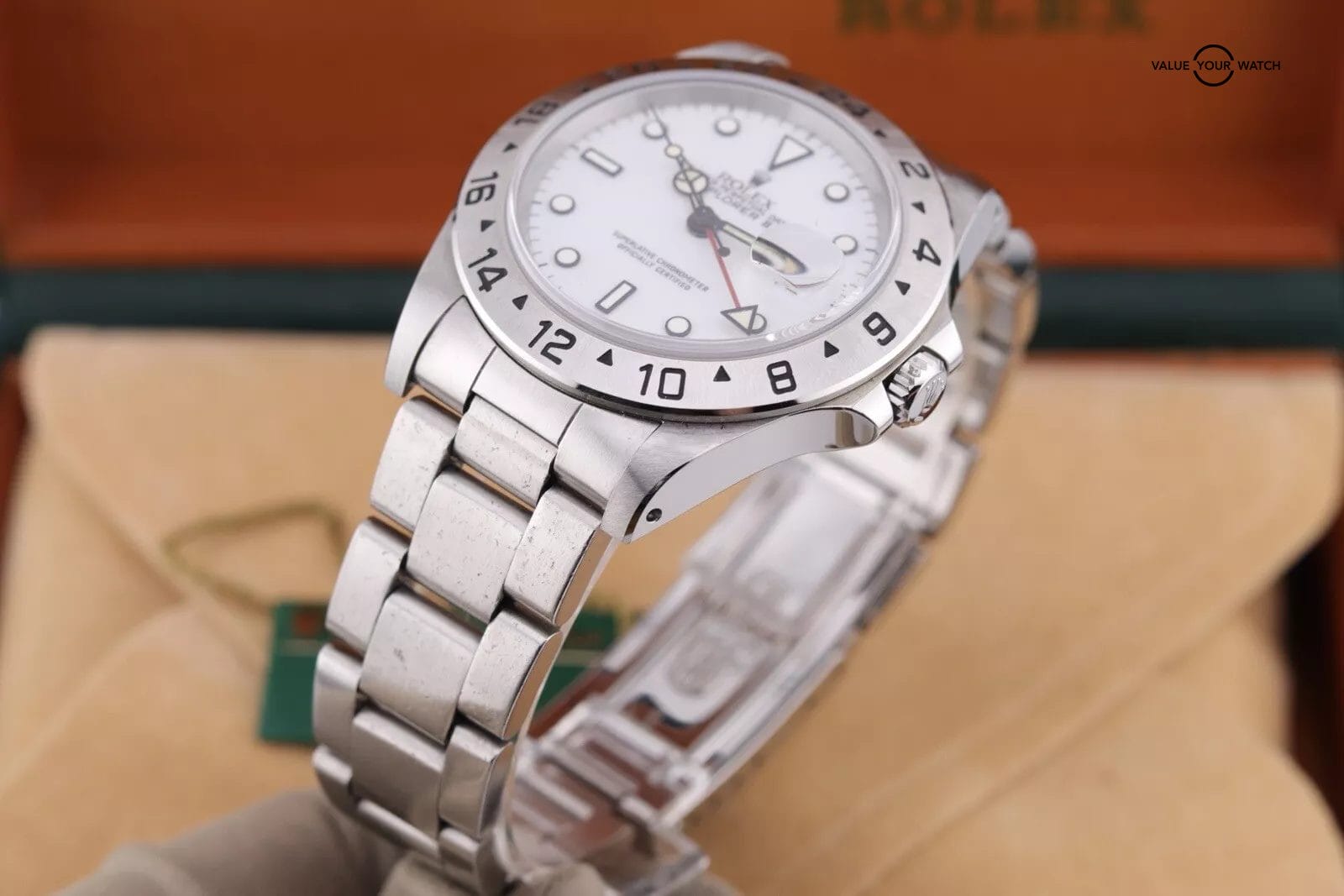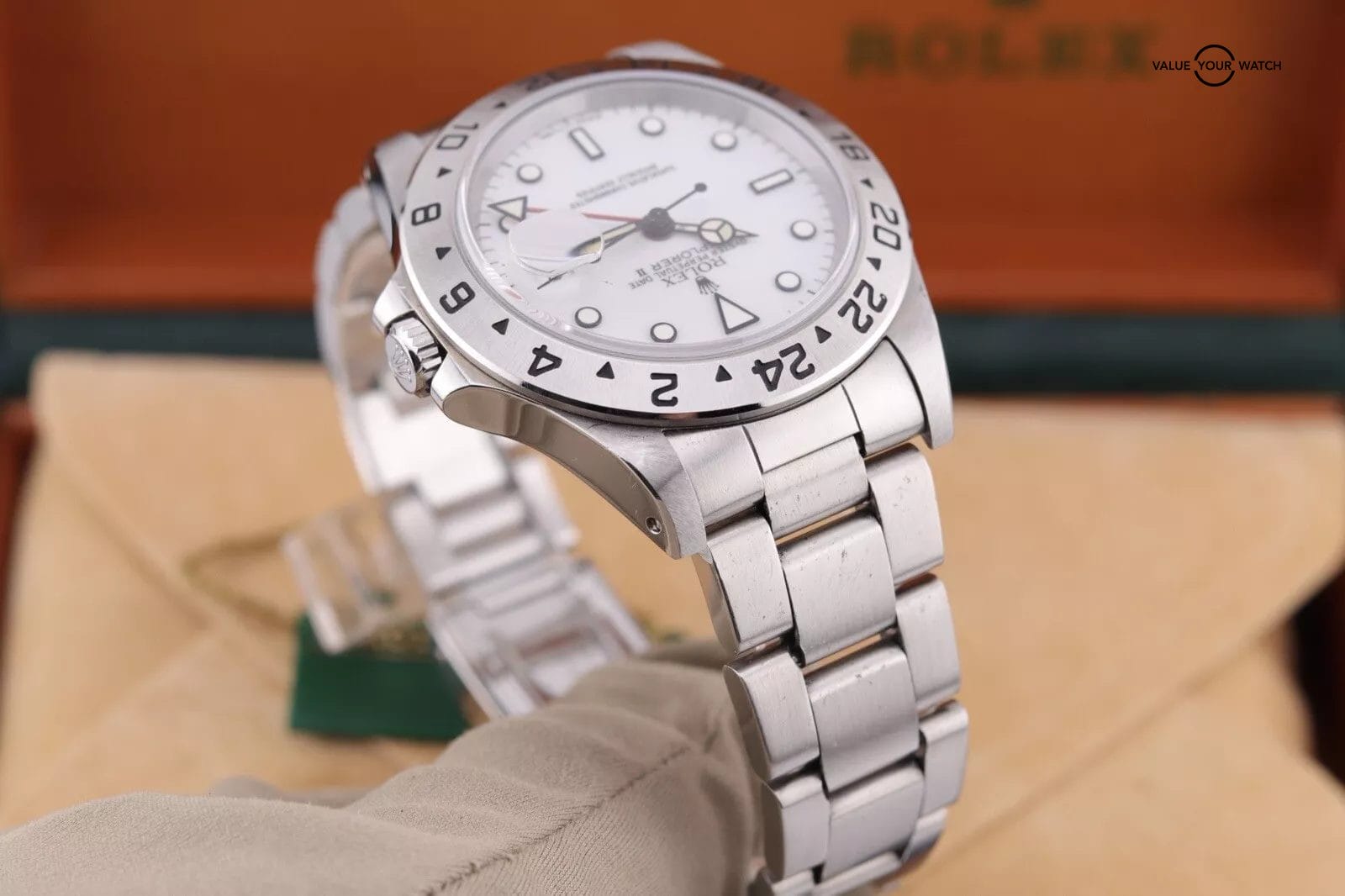 – Crystal is clean, but there is a small piece of lint underneath it above Cyclopes. The lume on the hands has fallen out. Wear in case in form of light scratches and some flea bites. The case does not appear to be overpolished/unprofessionally polished as the chamfers are still present and edges are sharp. There is wear in bracelet and some stretch. Bracelet would refinish nicely with right guy. Overall this watch could clean up nice but doesn’t NEED it. See photos as we tried to accurately capture condition.