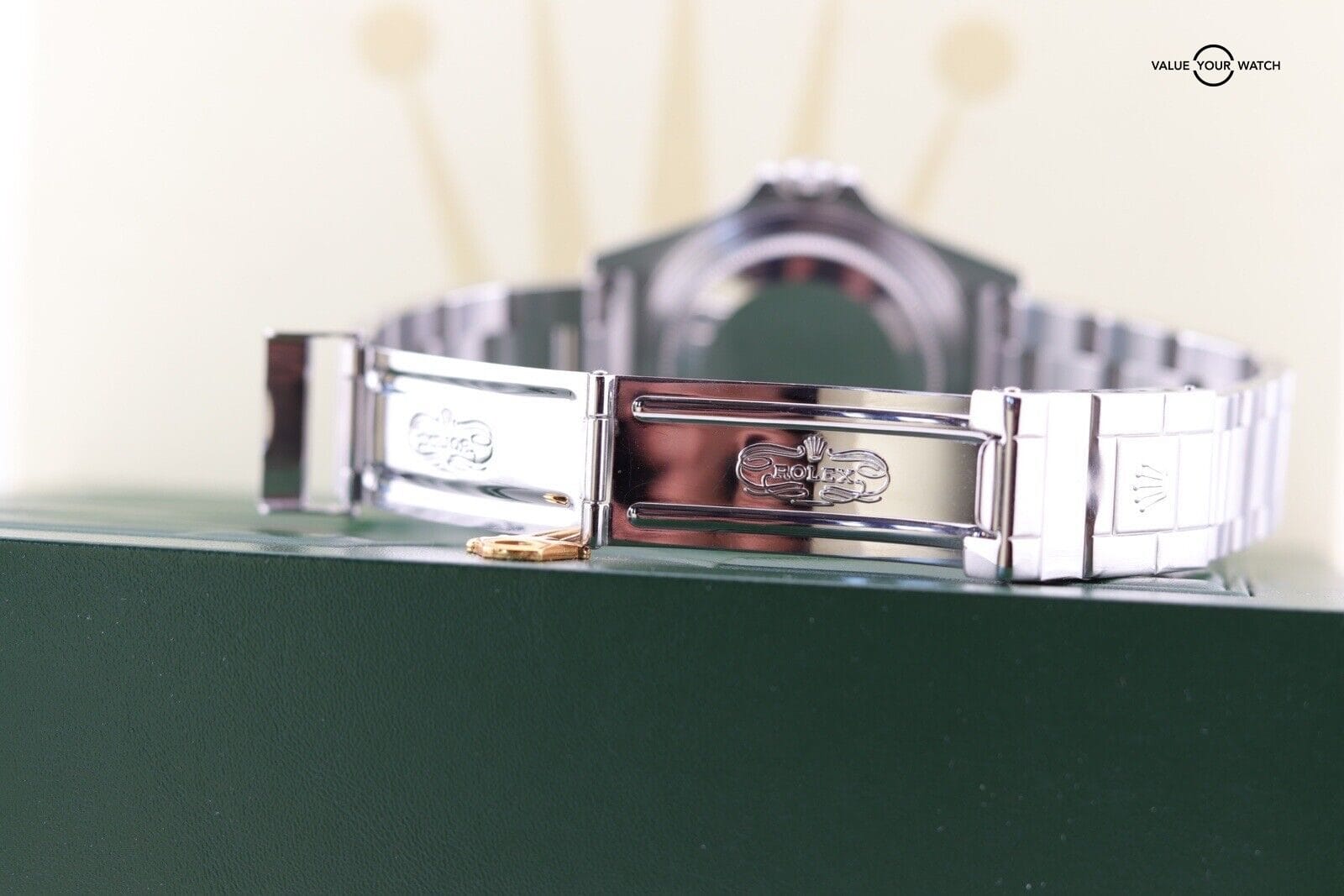 The Oyster bracelet, equipped with Rolex’s innovative Self-Expanding Link system, combines comfort and durability. This bracelet adapts to your wrist’s size changes throughout the day, ensuring a snug and comfortable fit.