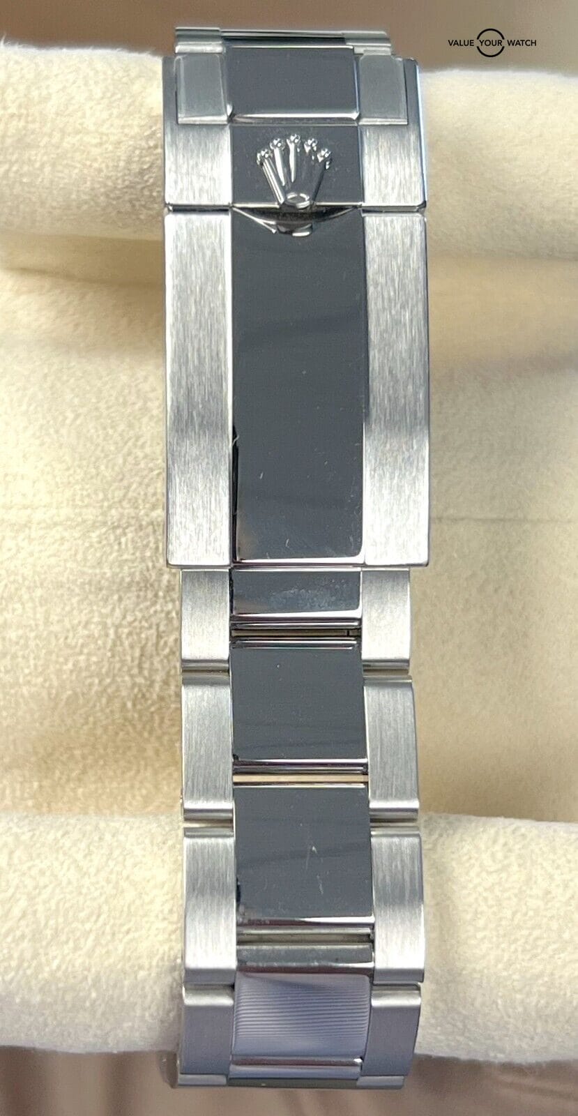 The watch comes with a stainless steel Oyster bracelet, known for its durability and comfort. The Oysterlock clasp ensures a secure fit on the wrist, and the Easylink extension system allows for quick adjustments.