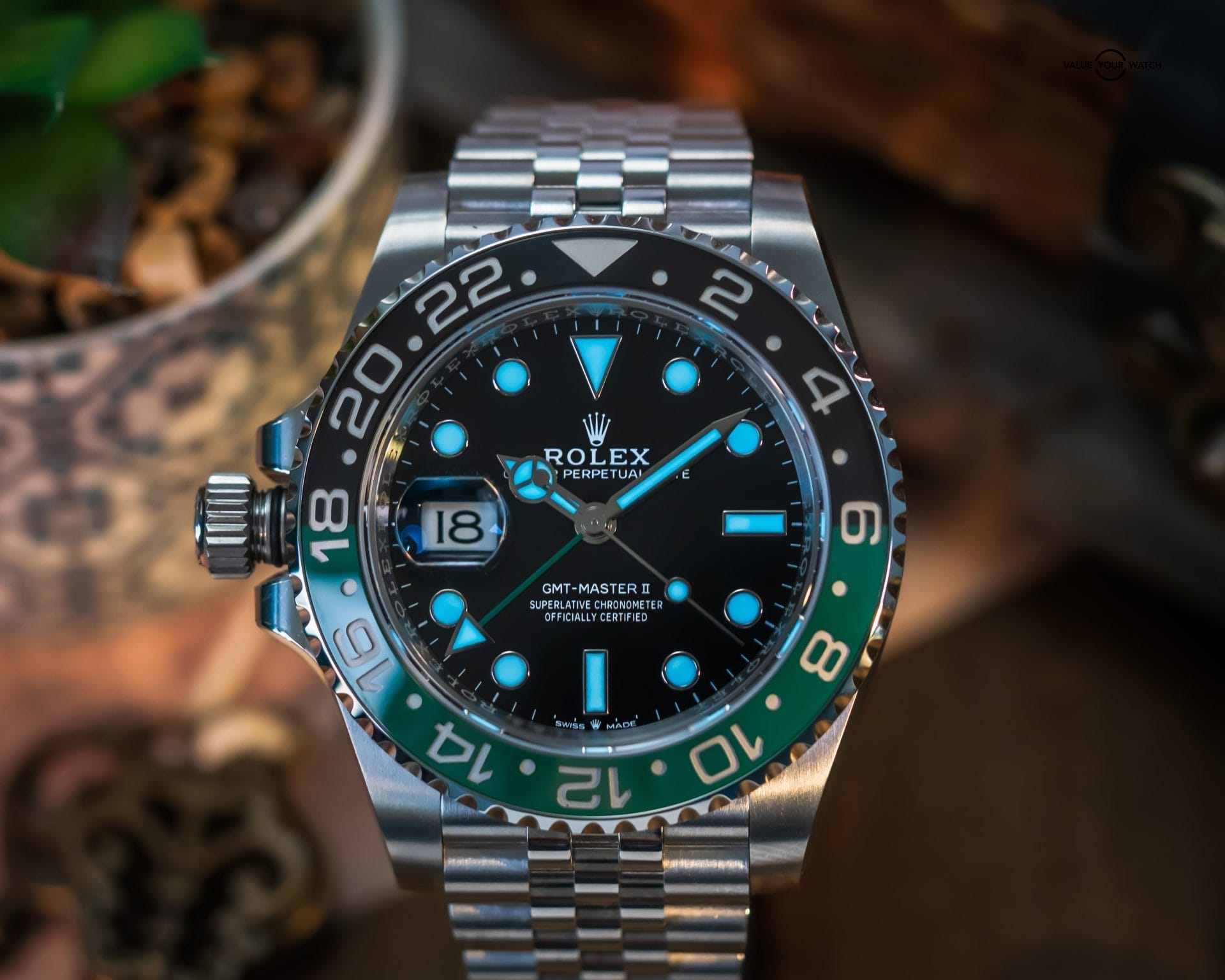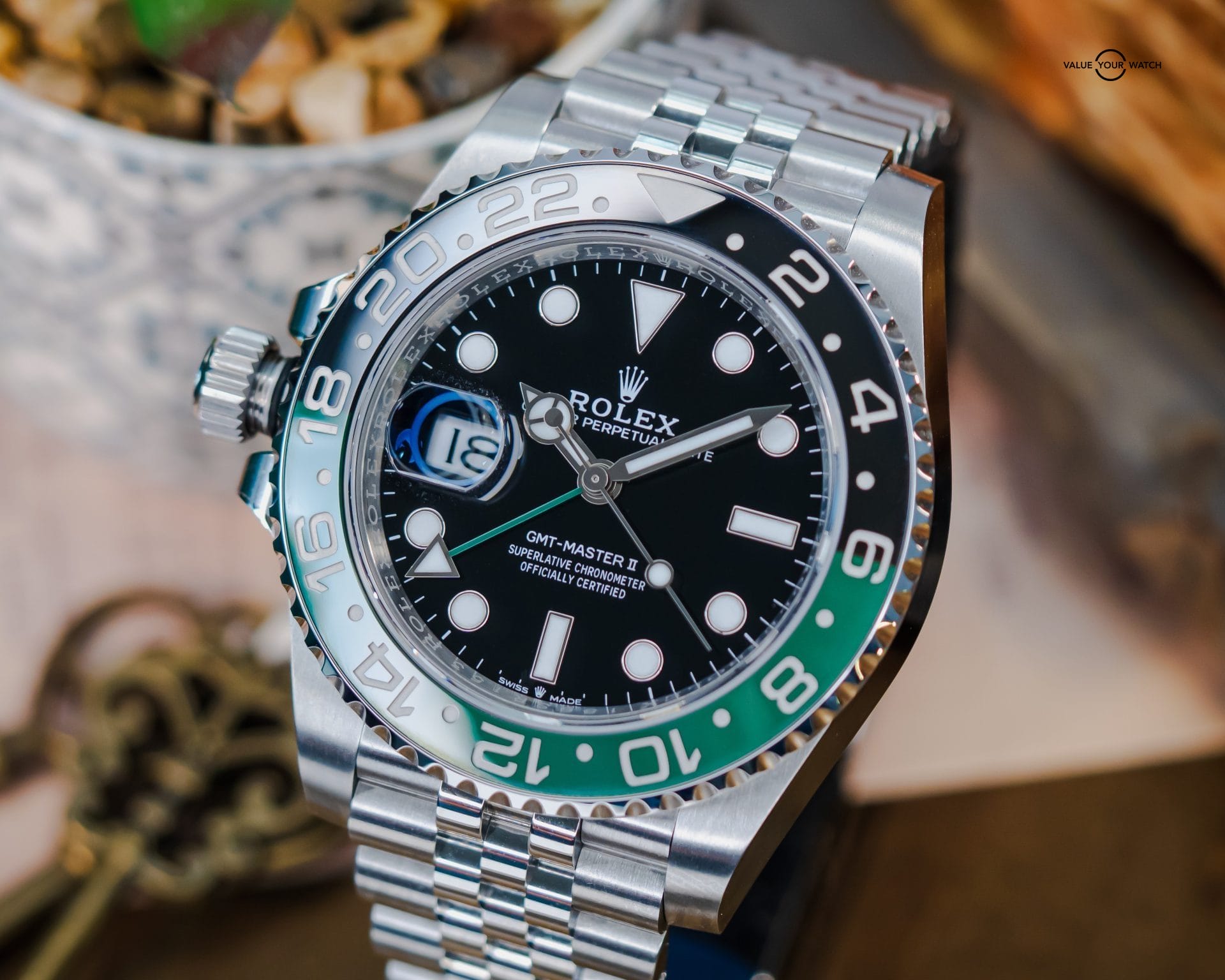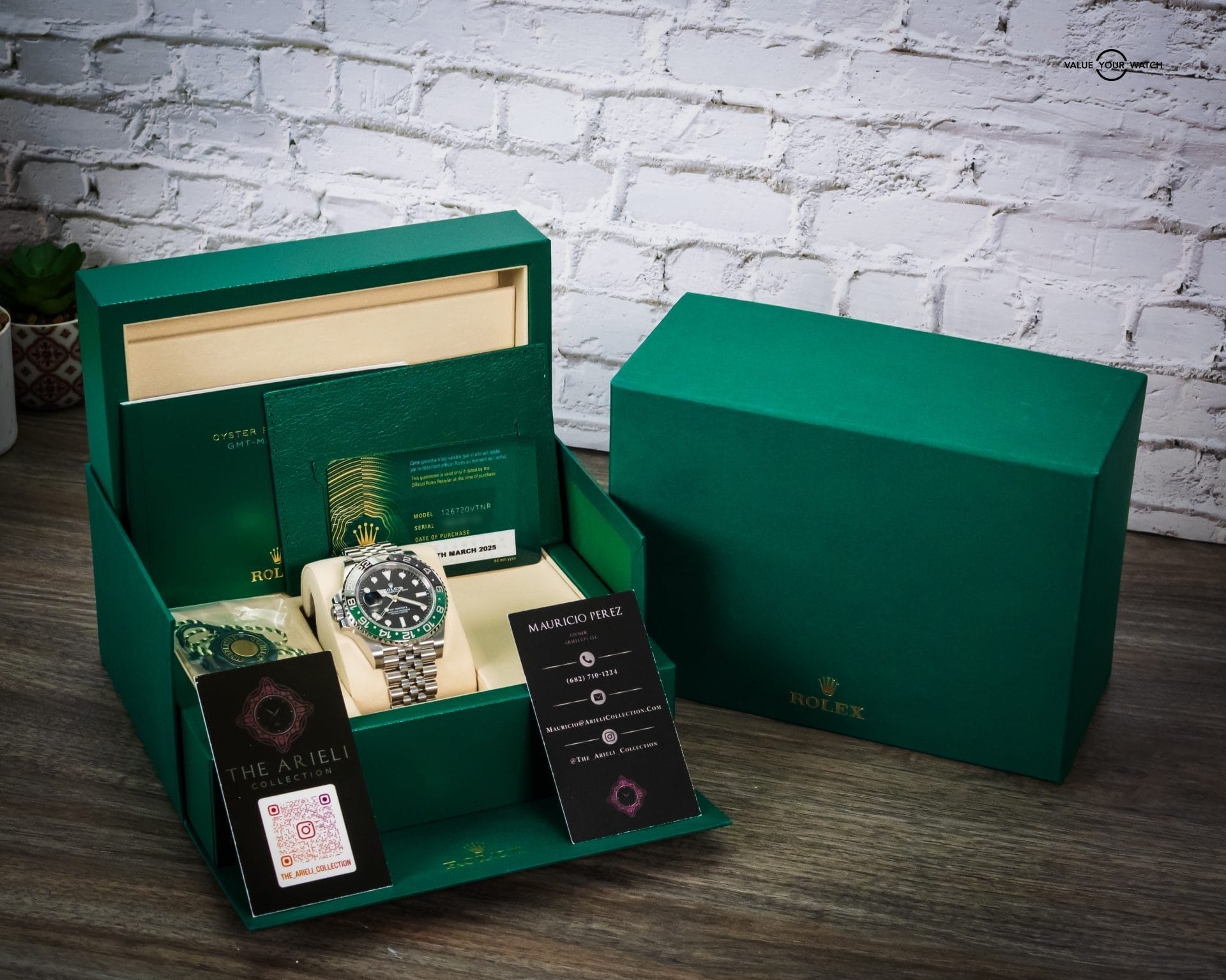 This unworn 2025 Rolex GMT-Master II “Sprite” on a Jubilee bracelet offers a unique and playful take on the iconic GMT-Master II. With its left-handed crown and striking green-and-black bezel, it’s a watch that stands out from the crowd.