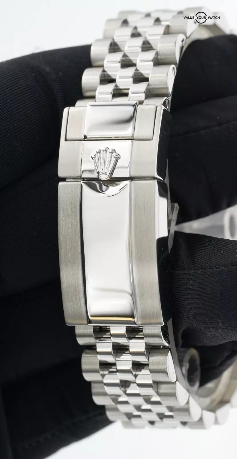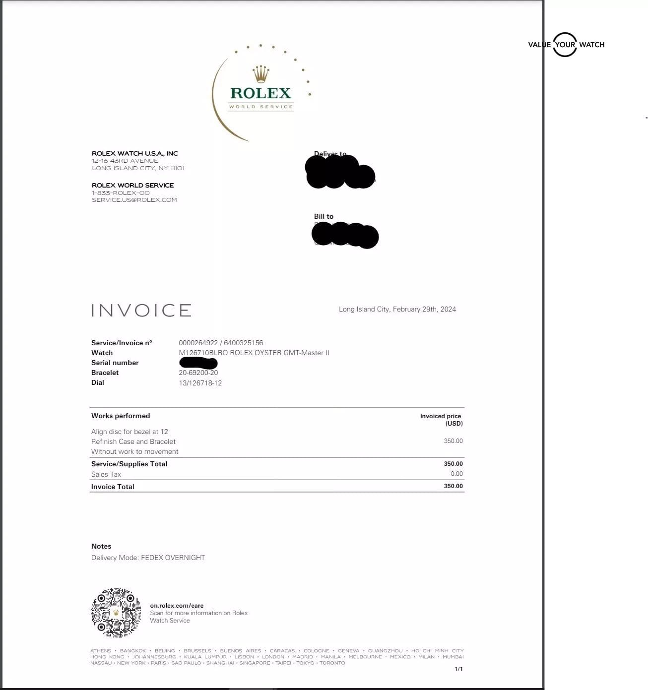 This beautiful timepiece comes complete with the outer cream box, inner green wave box, all manuals, both hangtags, and original warranty card. (Dated in July 2020). The watch is in excellent pre-owned condition with just minor cosmetic wear on the case and clasp. It just returned from Rolex Service center where they aligned the bezel disc and refinished the case and bracelet. The bezel wasn’t aligning perfectly at 12 so I sent it back for an under-warranty repair. Everything Is functioning as it should. Serial numbers and names are blurred in photos only for privacy reasons.