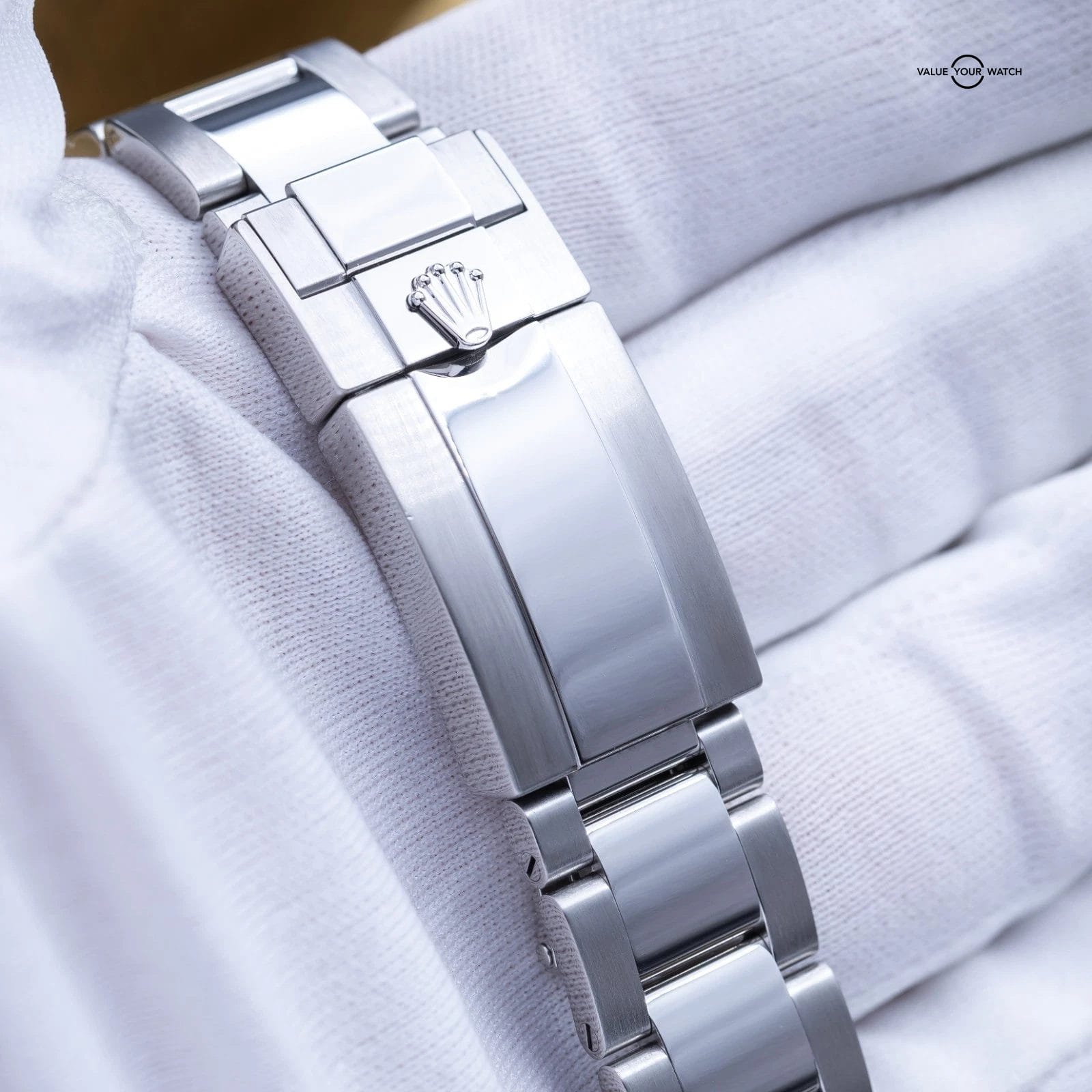 Pre-owned by a single owner and in great shape! The case, crystal and bracelet are in great condition. Comes complete with boxes and all papers, including warranty card and white retail tag. Watch is keeping great time, as you’d expect.