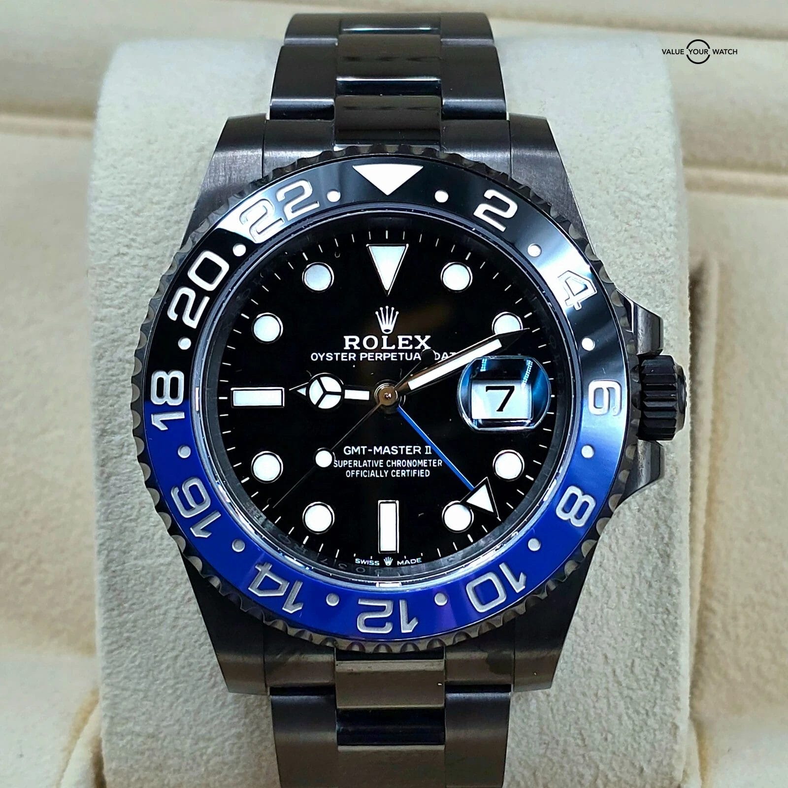 For sale here is a very cool Batman that has been PVD coated black. This is the newest reference, 126710BLNR.