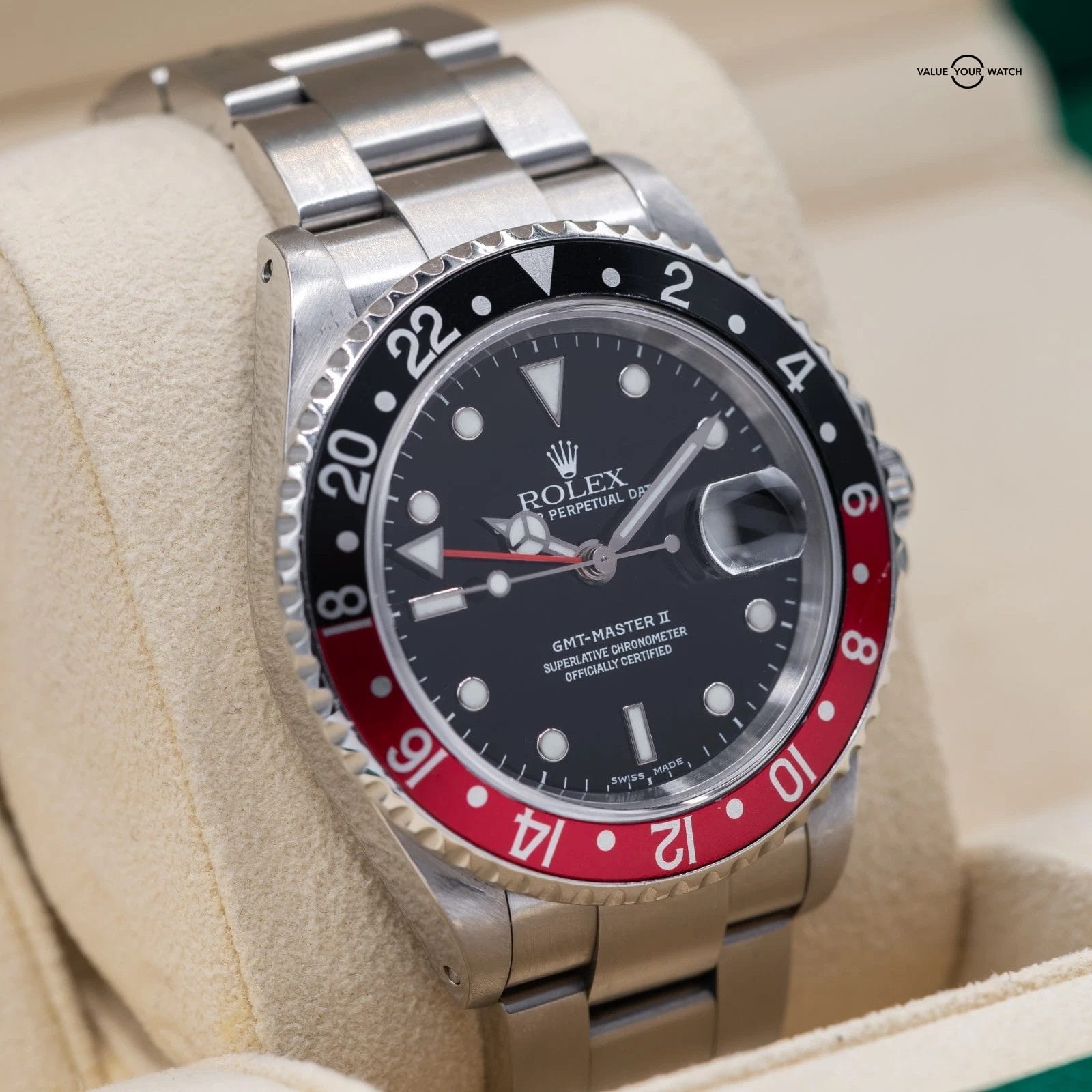 Specification: Rolex GMT Master II Coke, Red/Black bezel, P serial year 2000 ref. 16710